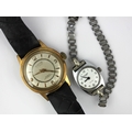 A Curtiss gilt metal fronted and steel backed gentlemans wristwatch and an Olympic quartz ladies wristwatch
