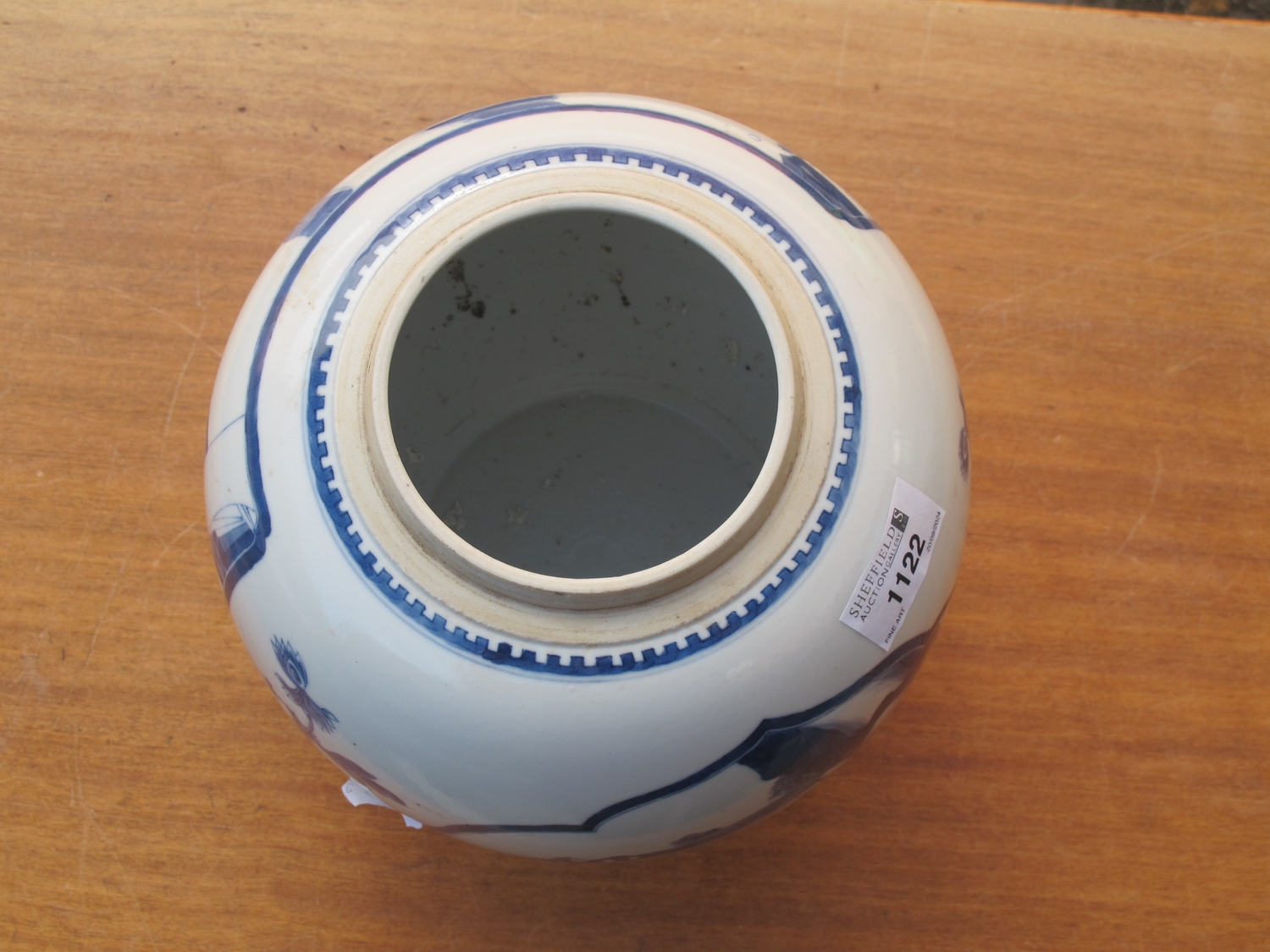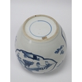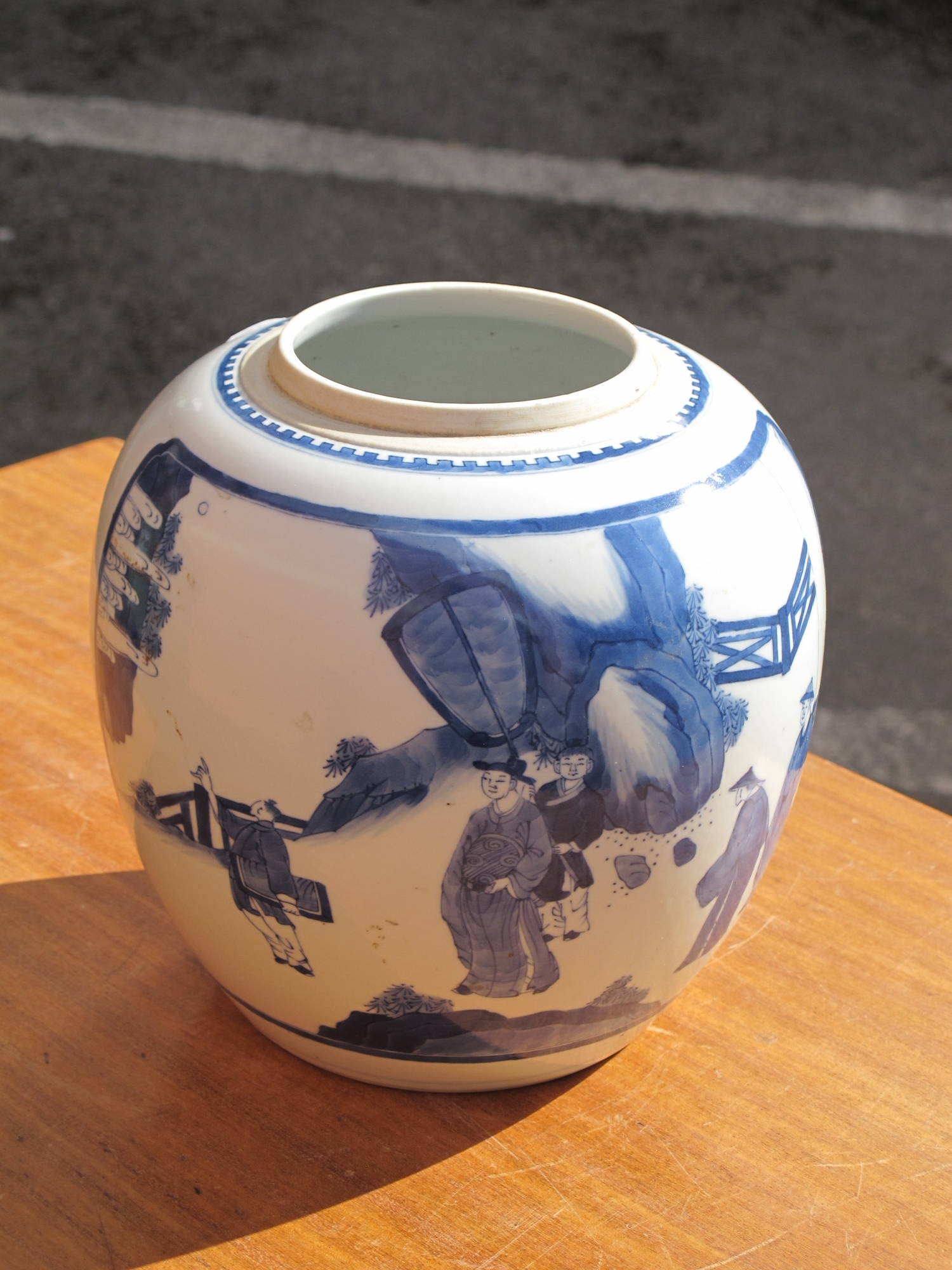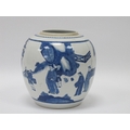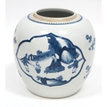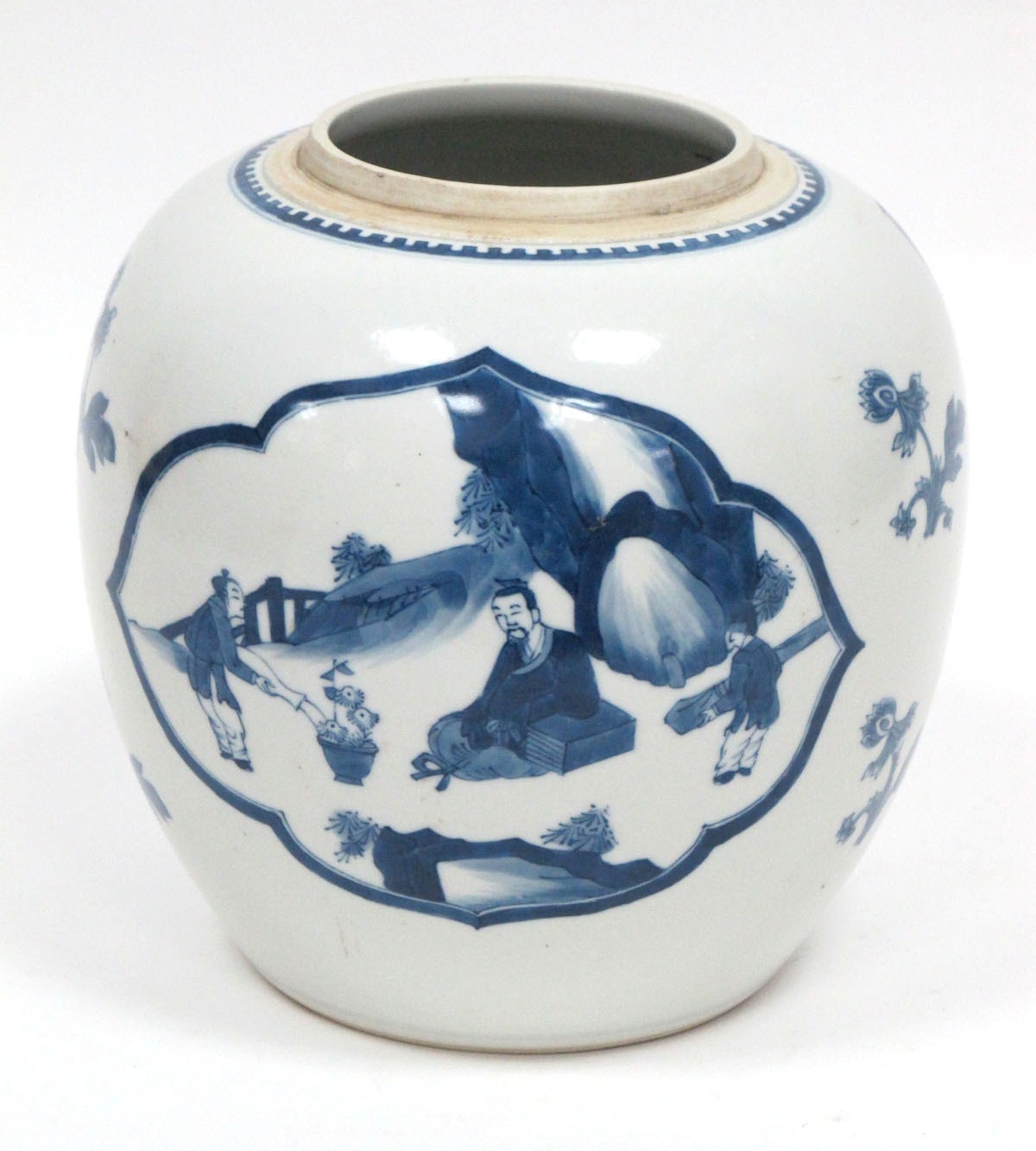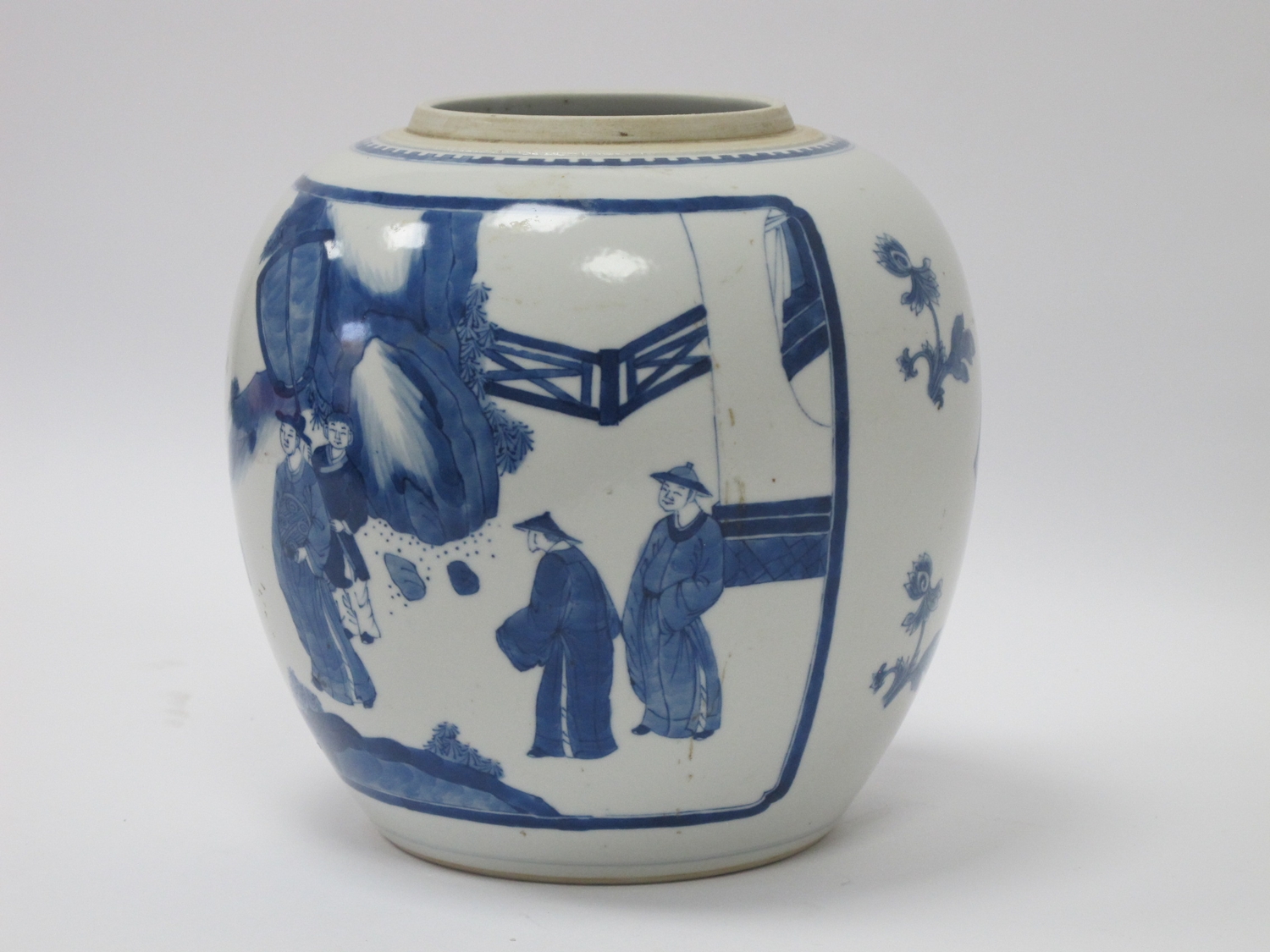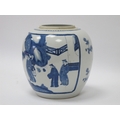 A Late XIX Century Chinese Porcelain Ginger Jar (lacking cover), painted in blue with figures in rocky landscapes, 20cm high.