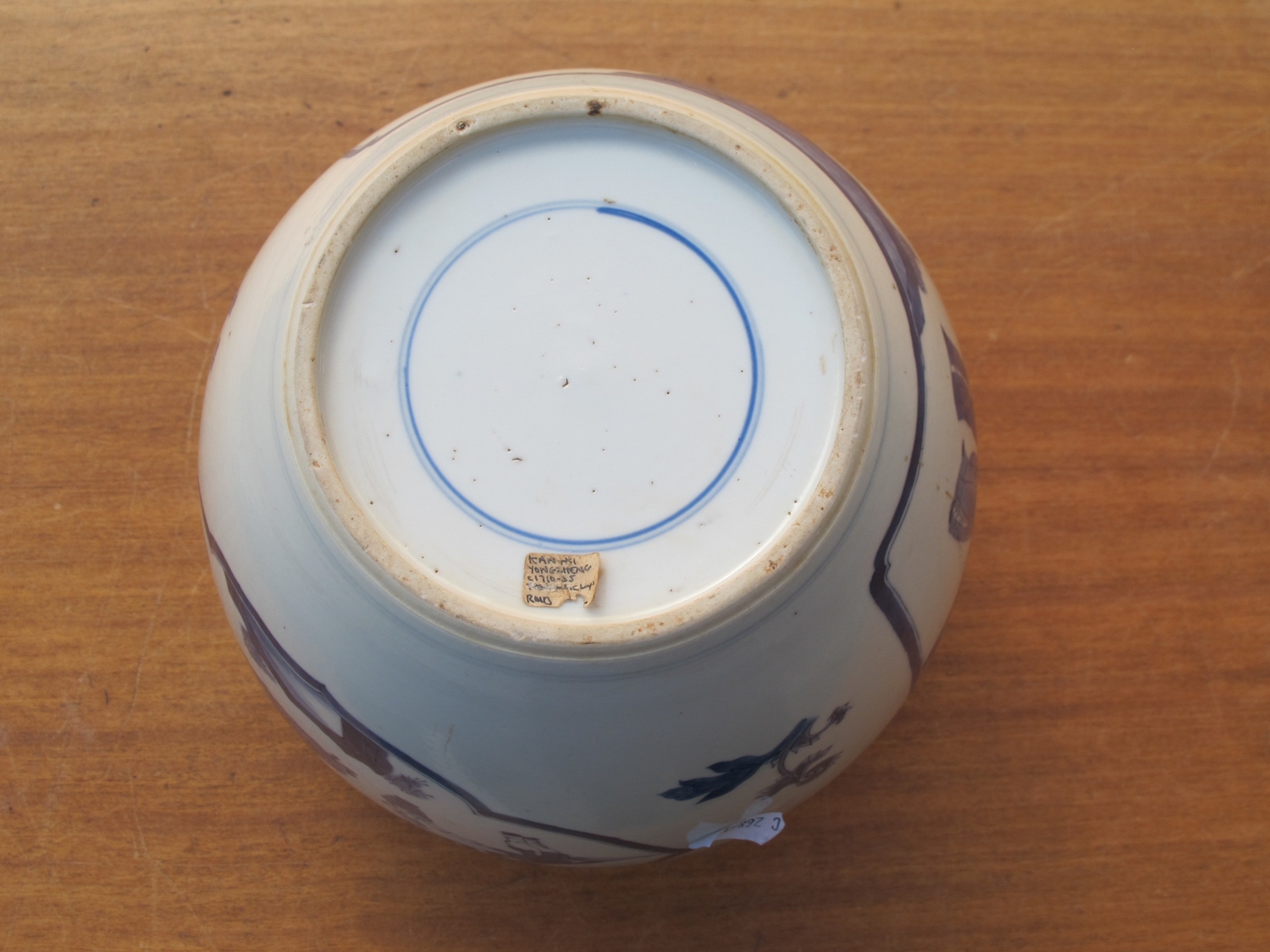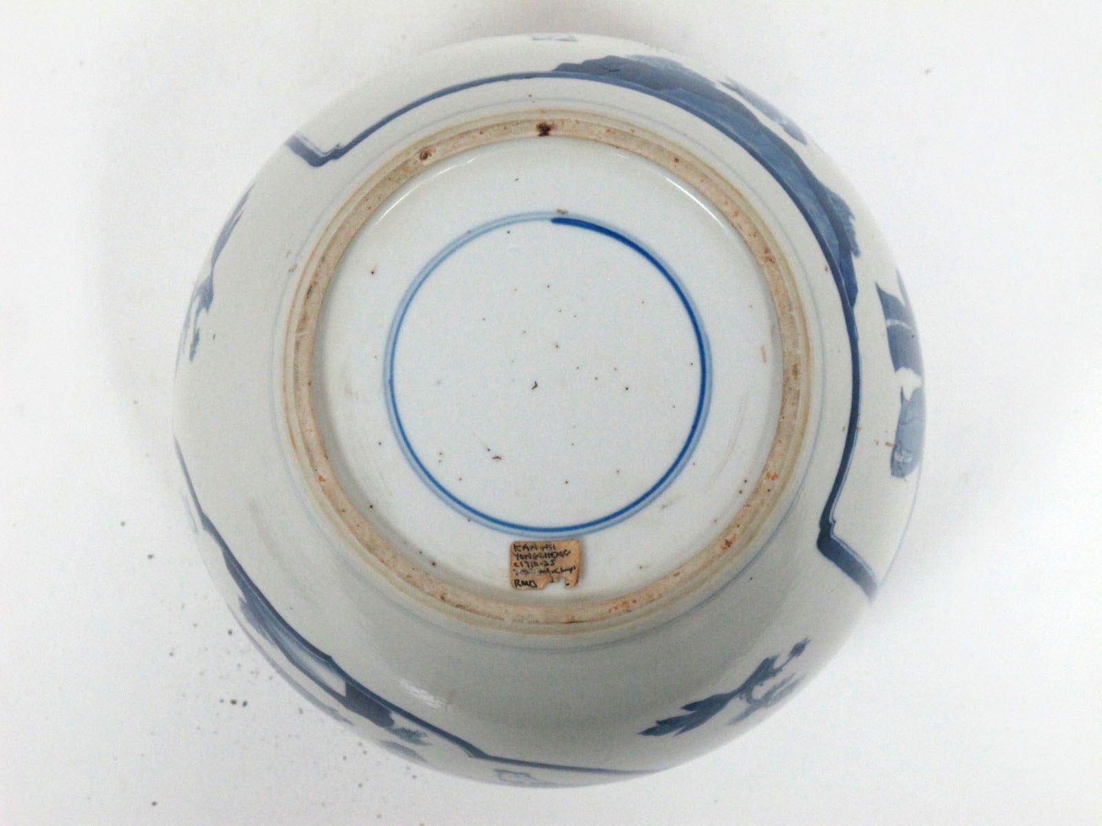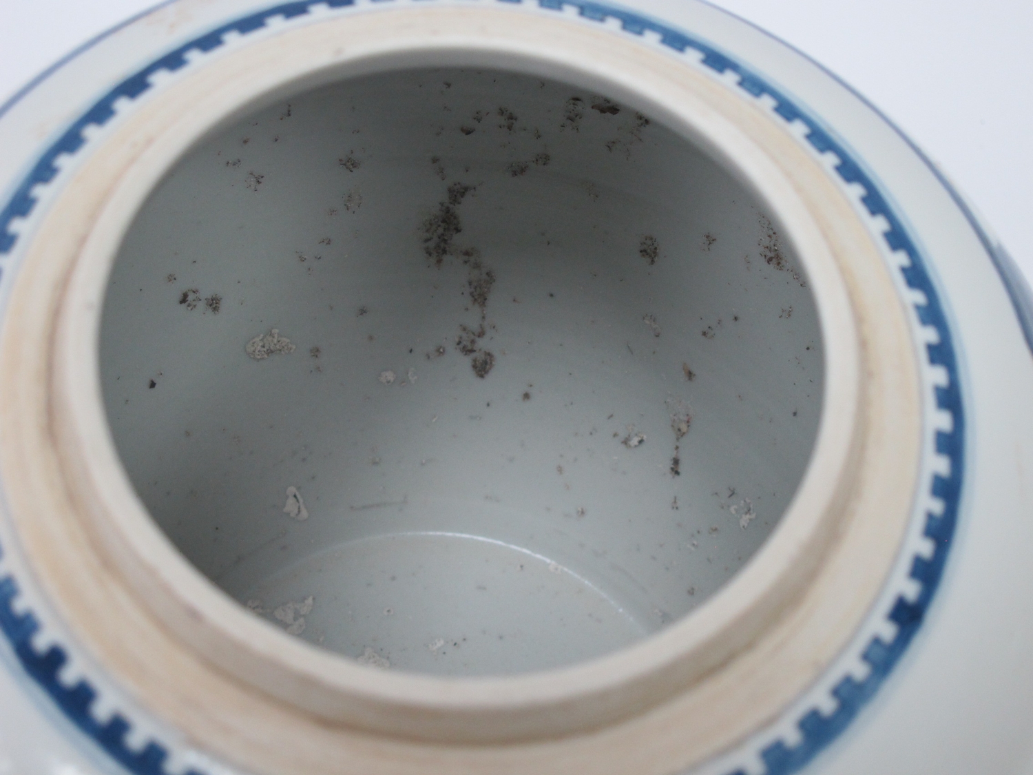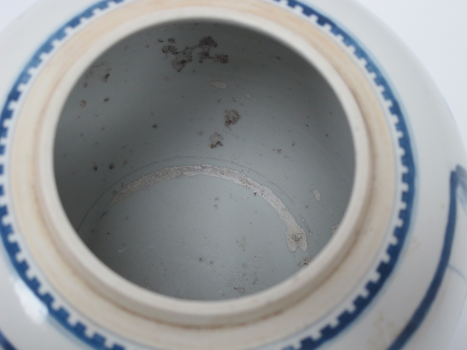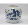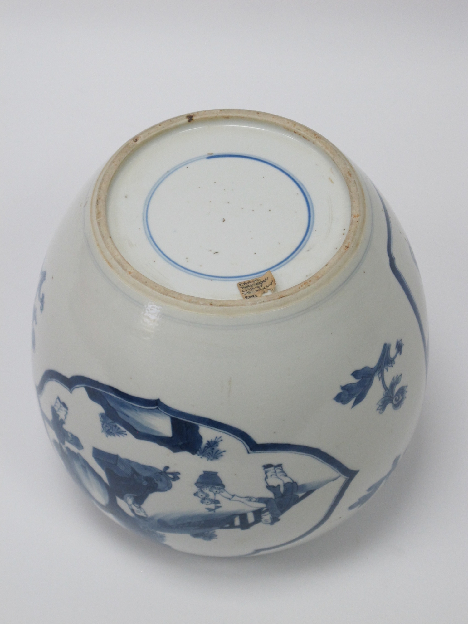 A Late XIX Century Chinese Porcelain Ginger Jar (lacking cover), painted in blue with figures in rocky landscapes, 20cm high.