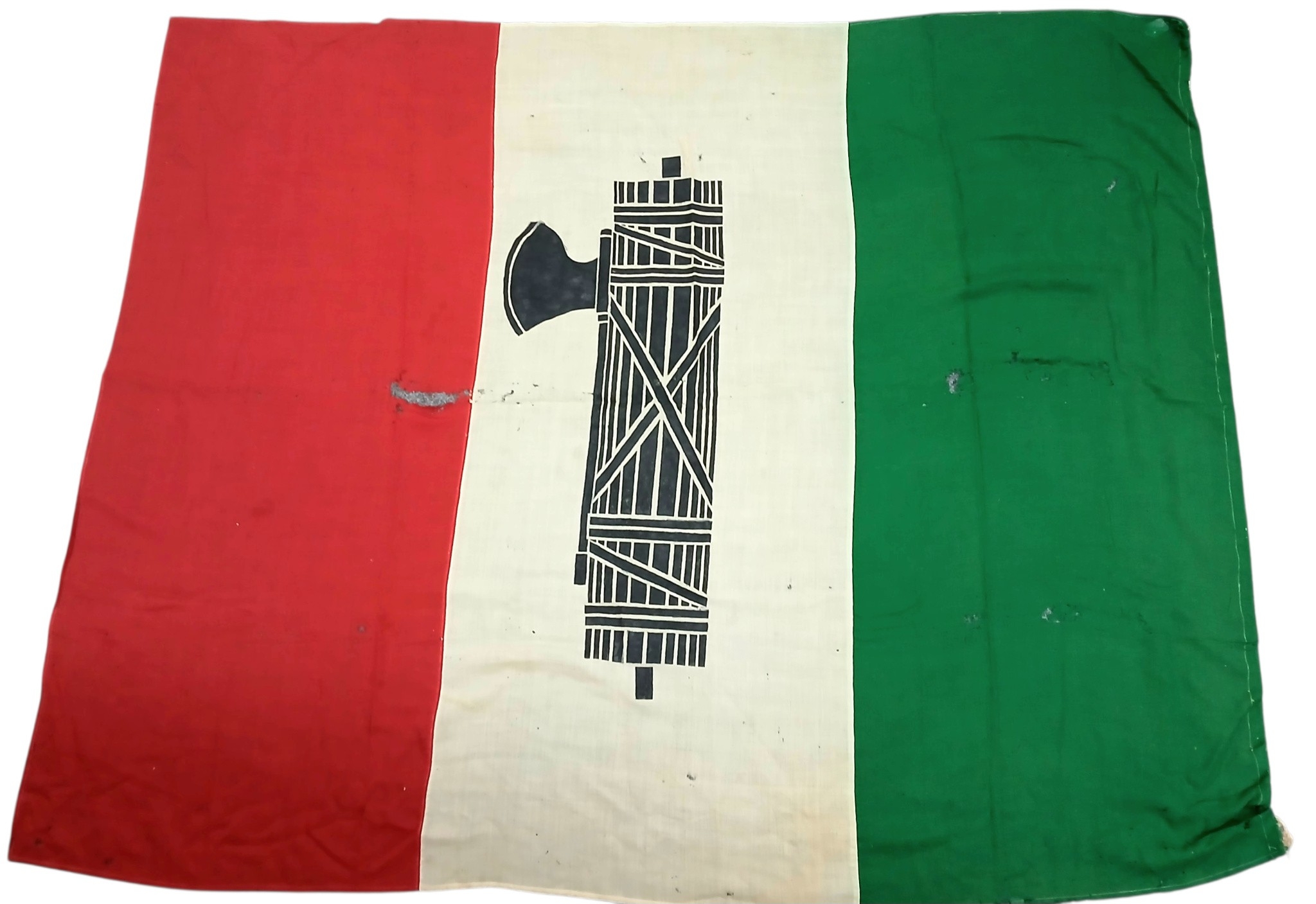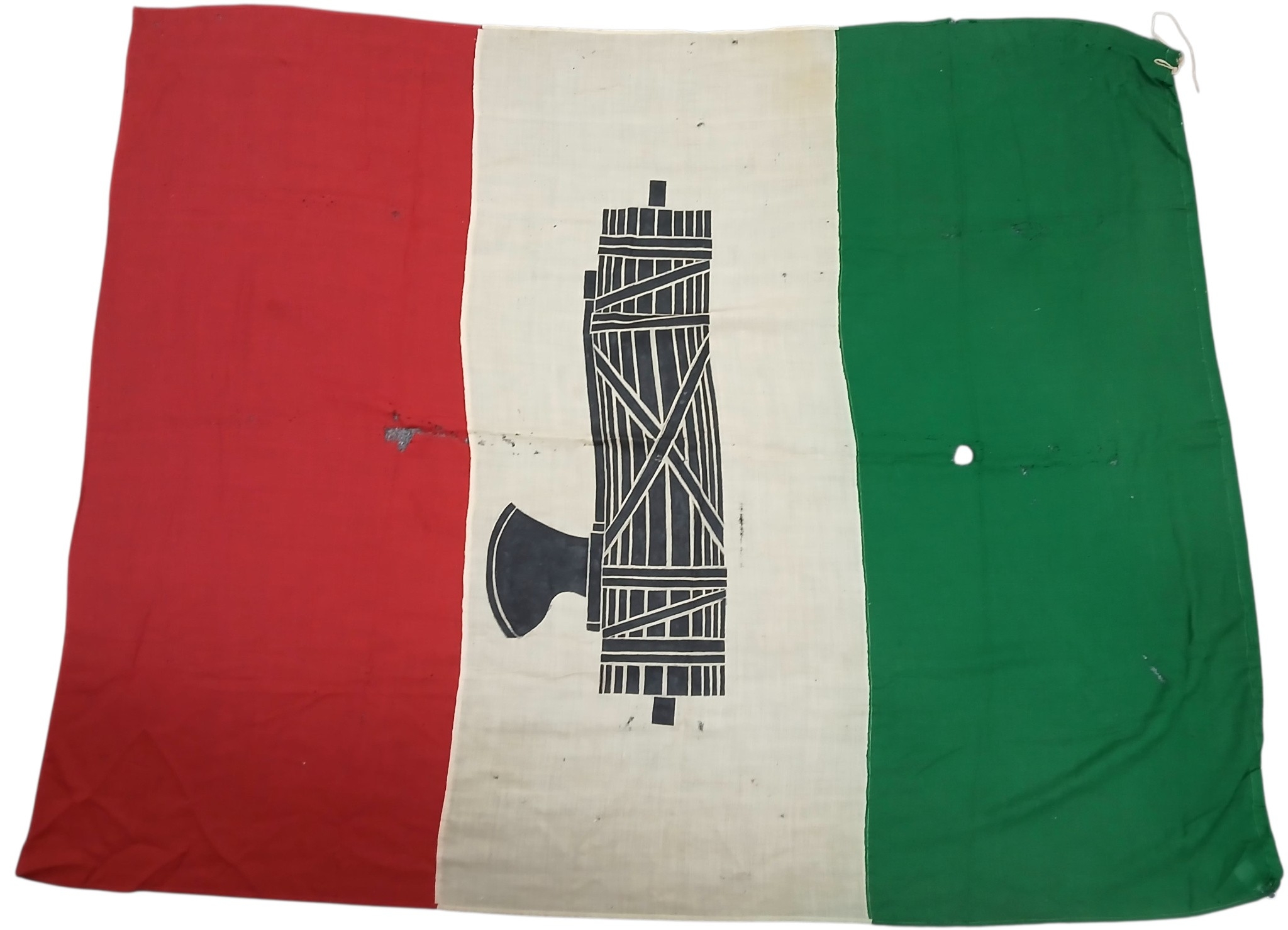 WW2 Italian Fascists Flag 215cm x 150 cm. A Genuine period Italian flag that has been hand painted pre 1945 in support of Italian Fascism.