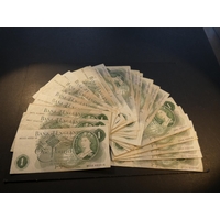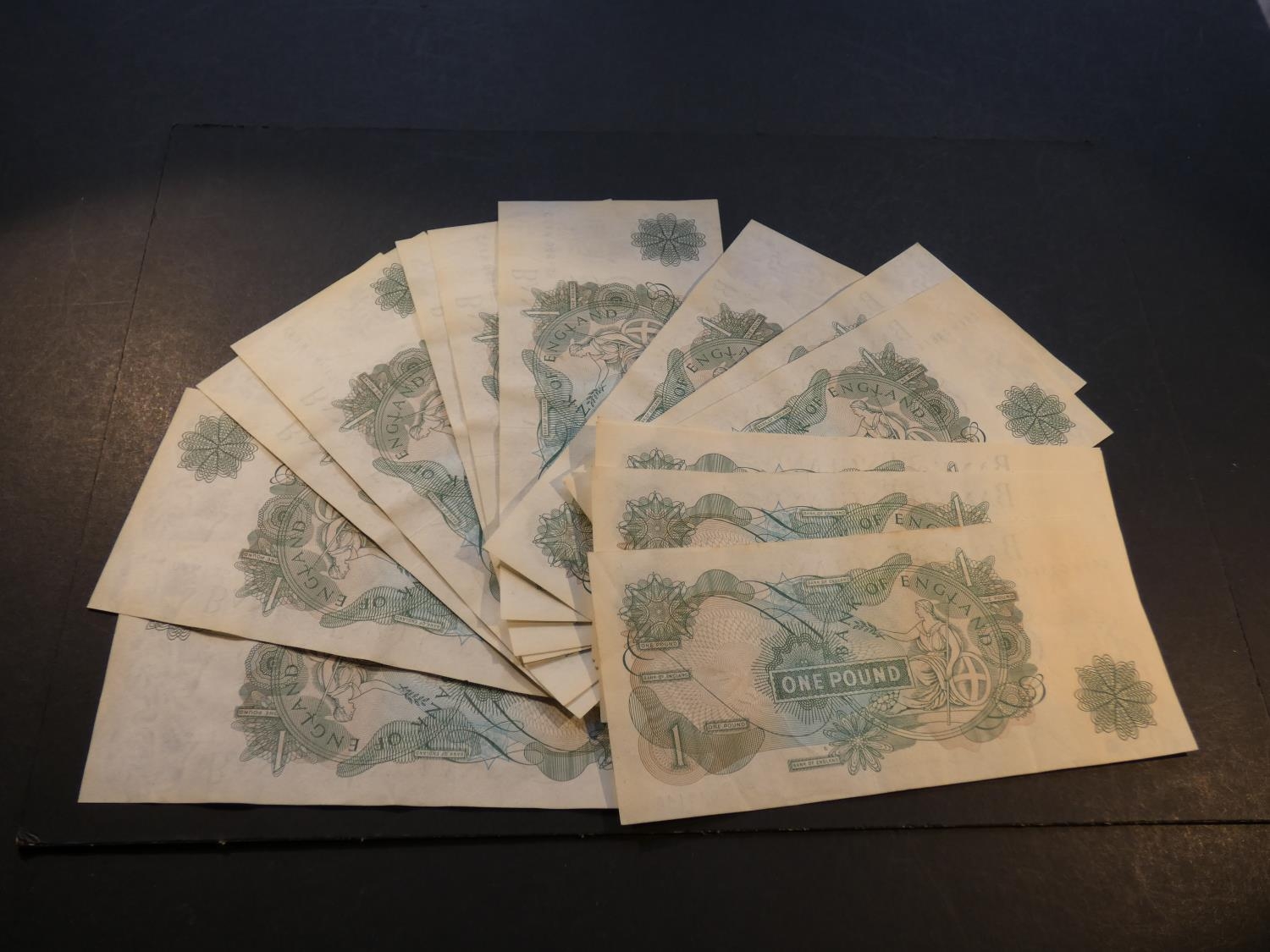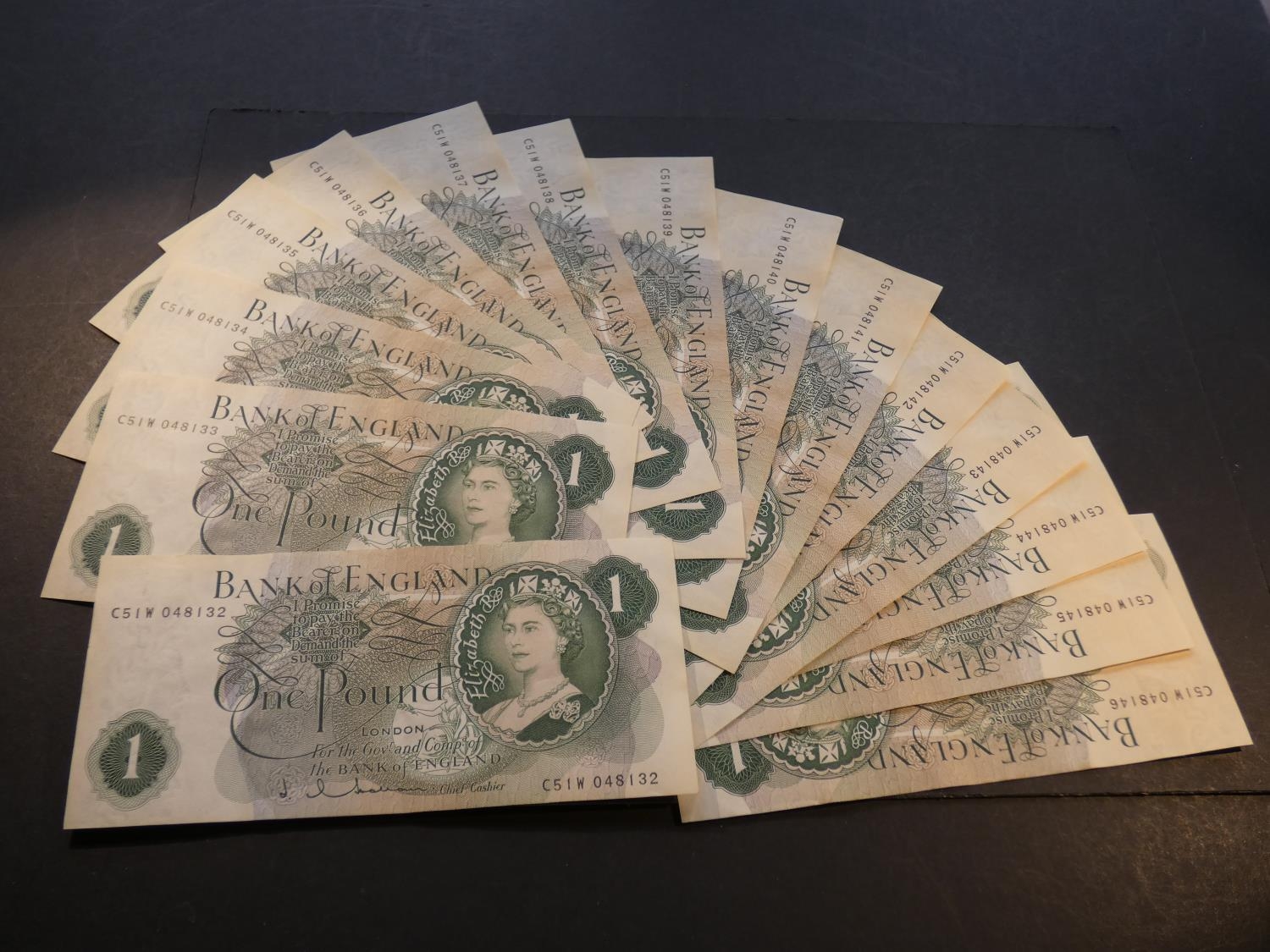 BANK OF ENGLAND. 1 Pound, sign. HOLLOM, Dug.B292 (BE68b), Goebel printing, run of 15 consecutively numbered notes, C51W 048132 to C51W 048146, VF+, slight wrinkling. (15)