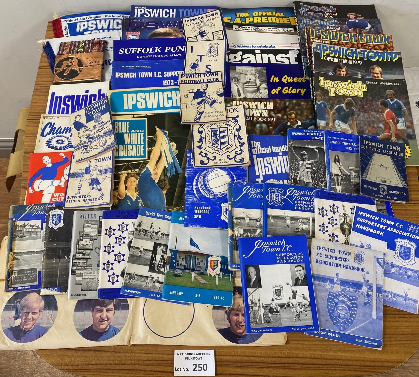 Football : Ipswich Town - great collection of handbooks/annuals 1948 onwards, plus a couple of pennants etc (box).