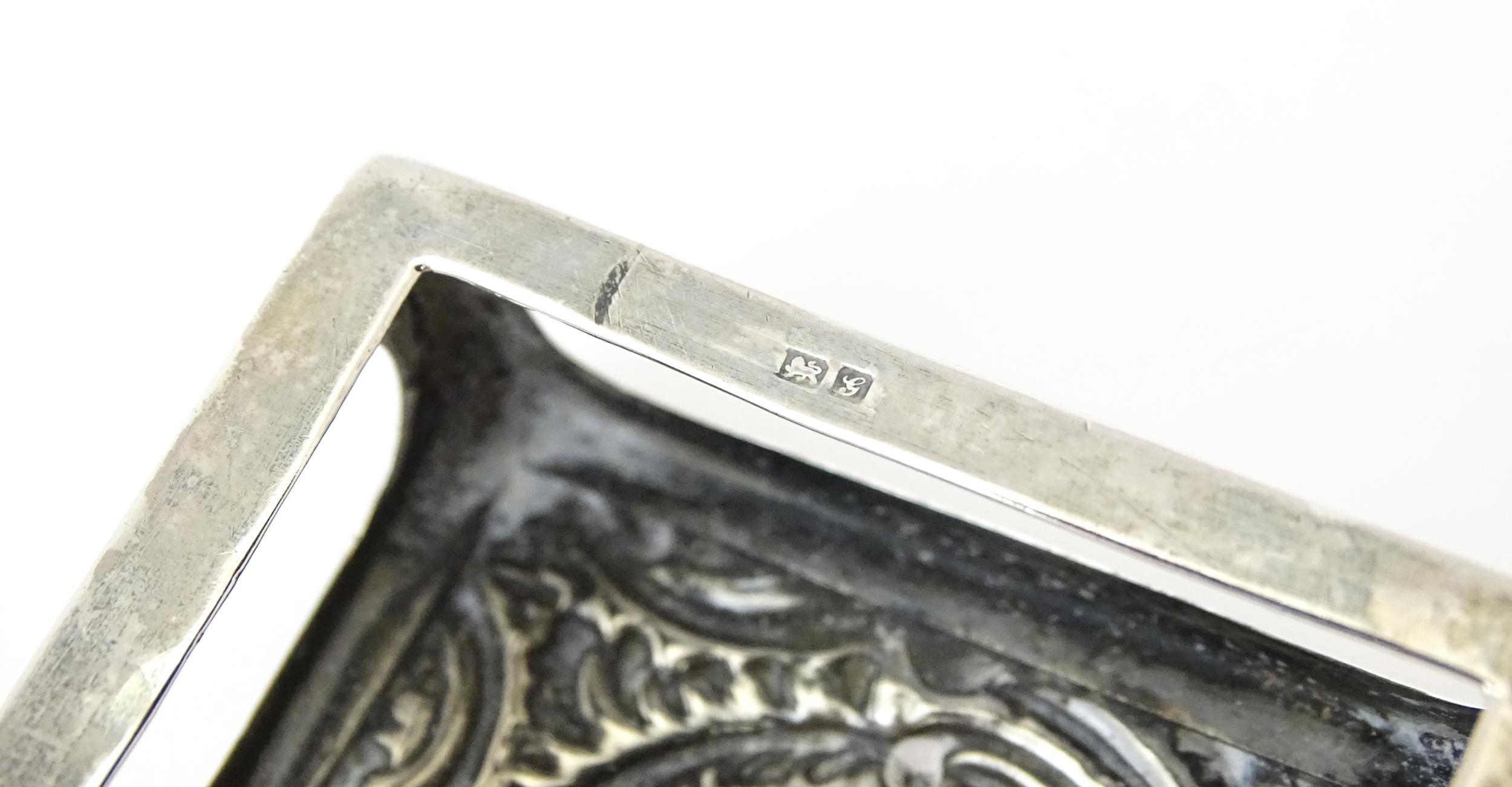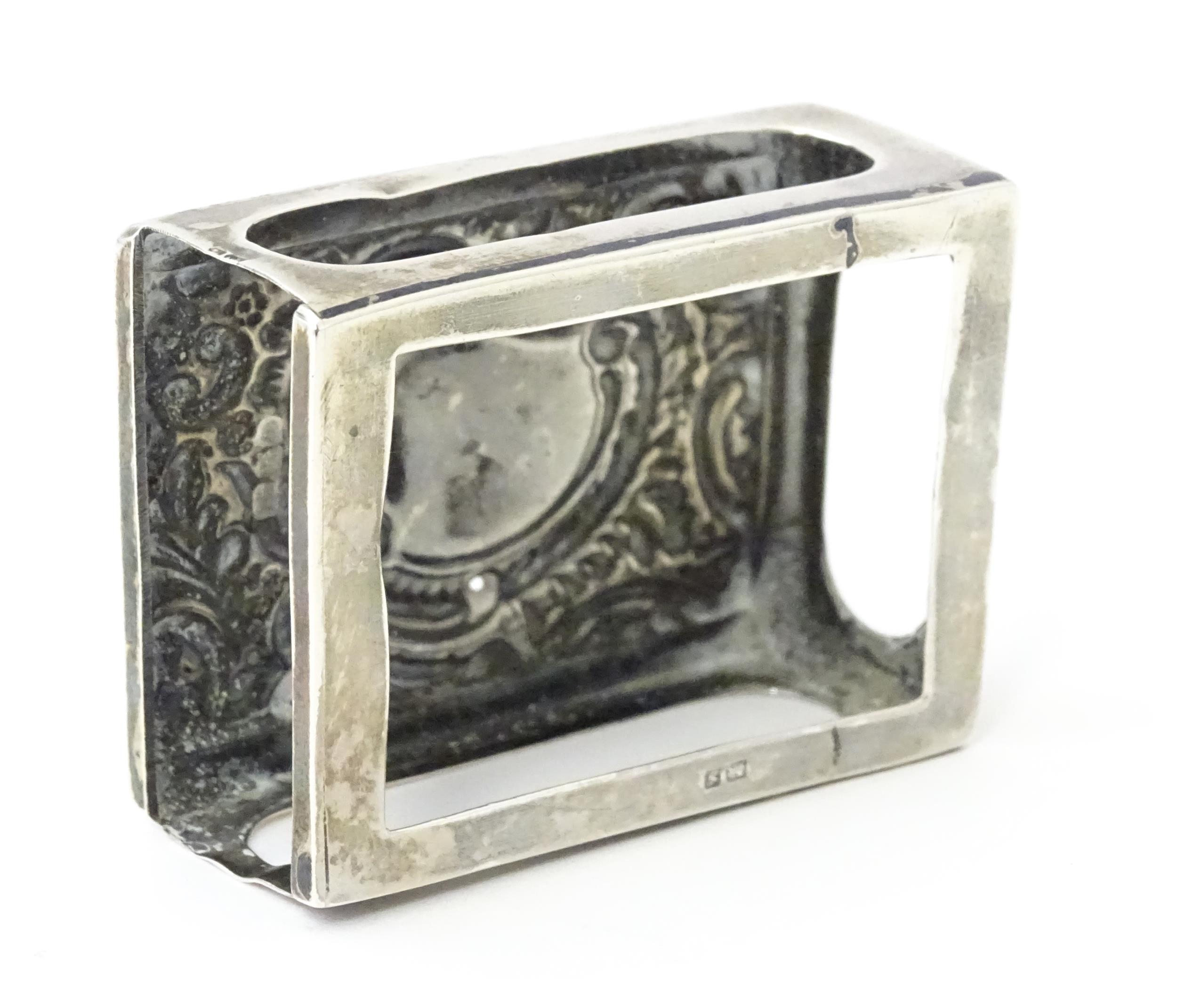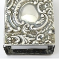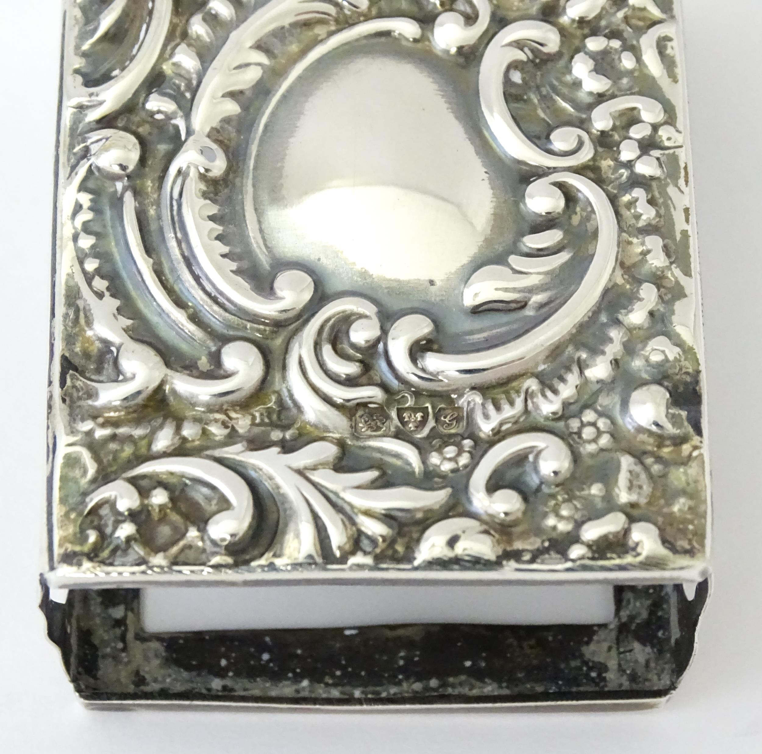 A silver match box cover with embossed decoration, hallmarked Chester 1907. Approx 2 1/4" wide.