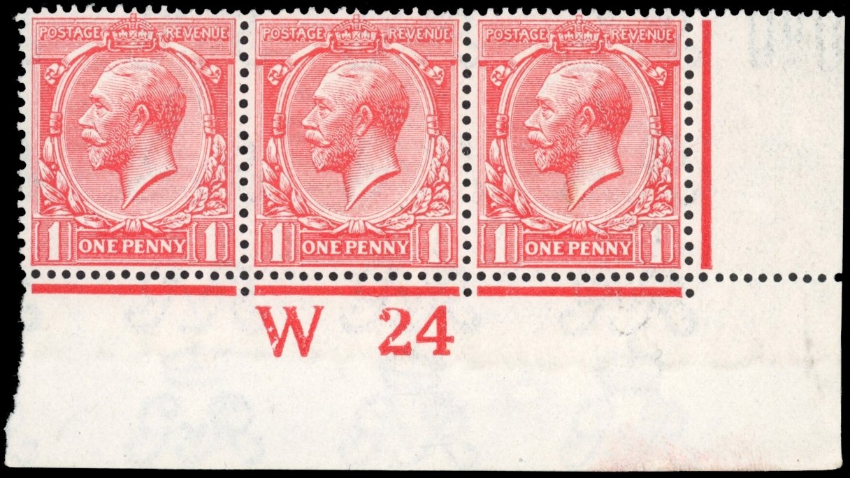 GB 1912â"24 Royal Cypher 1d very pale bright carmine, mint control W24 str