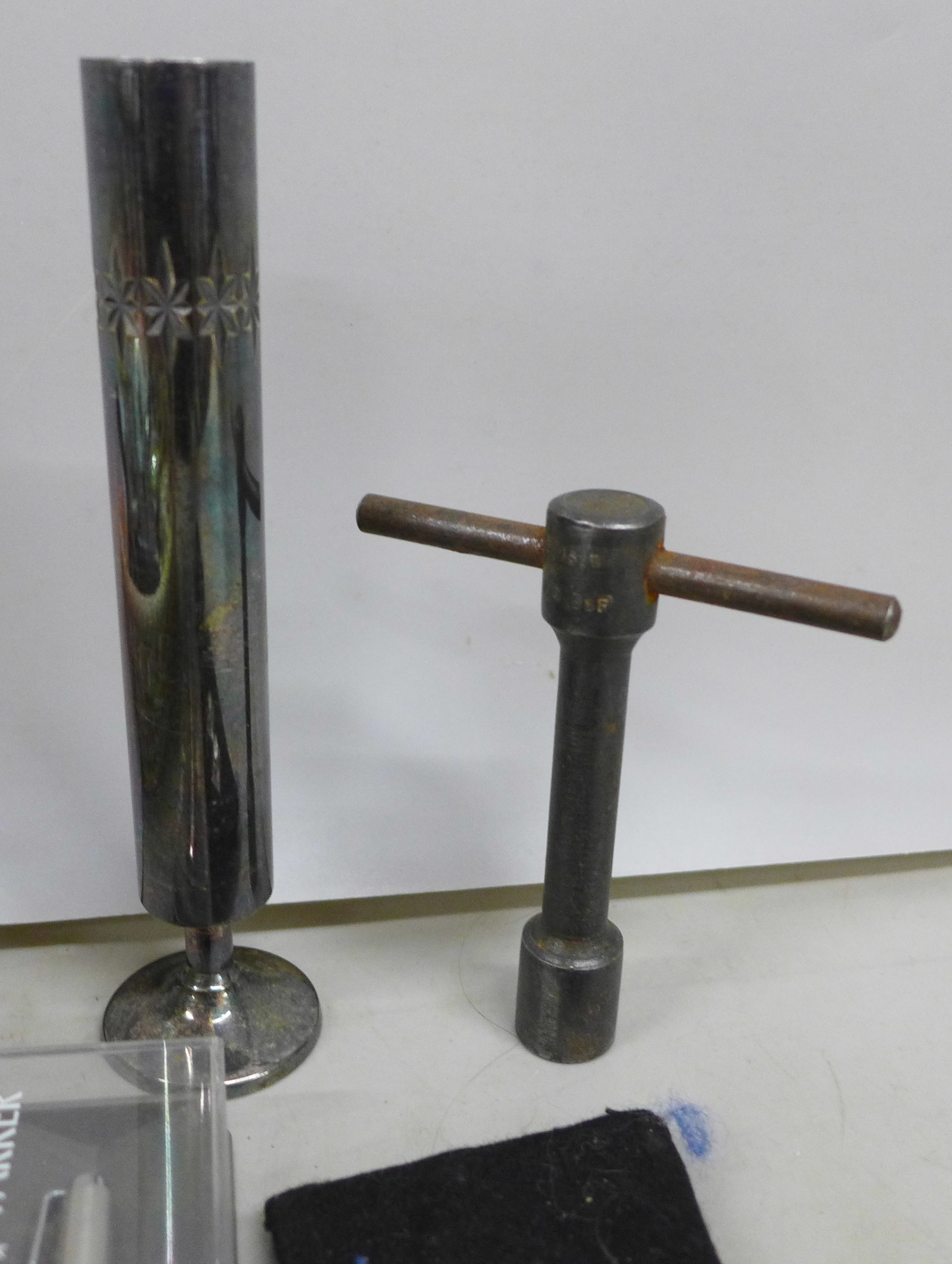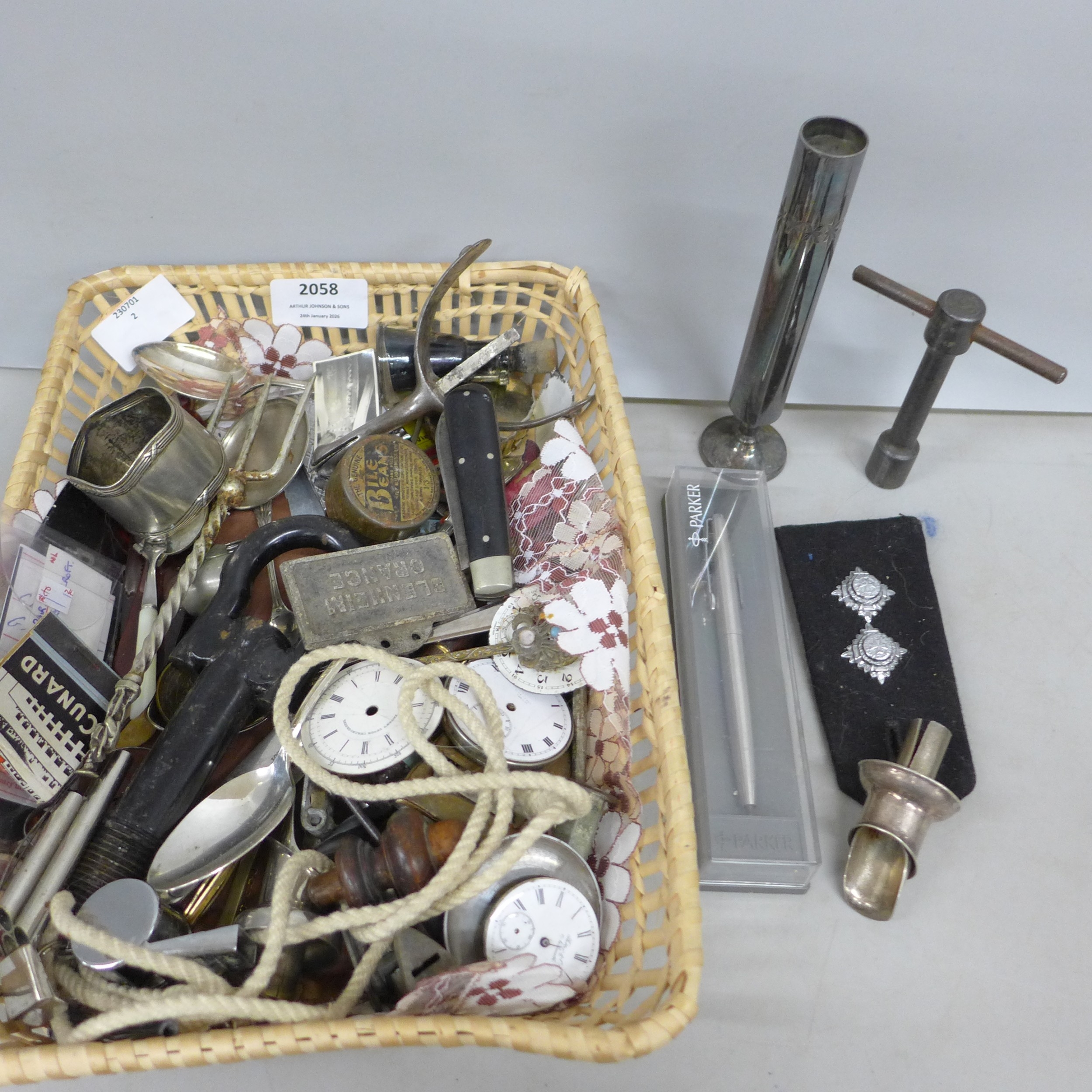 Assorted items, Parker pen, silver plate, lighters, knife, watch movements, etc., *This lot is not available for packing and posting*