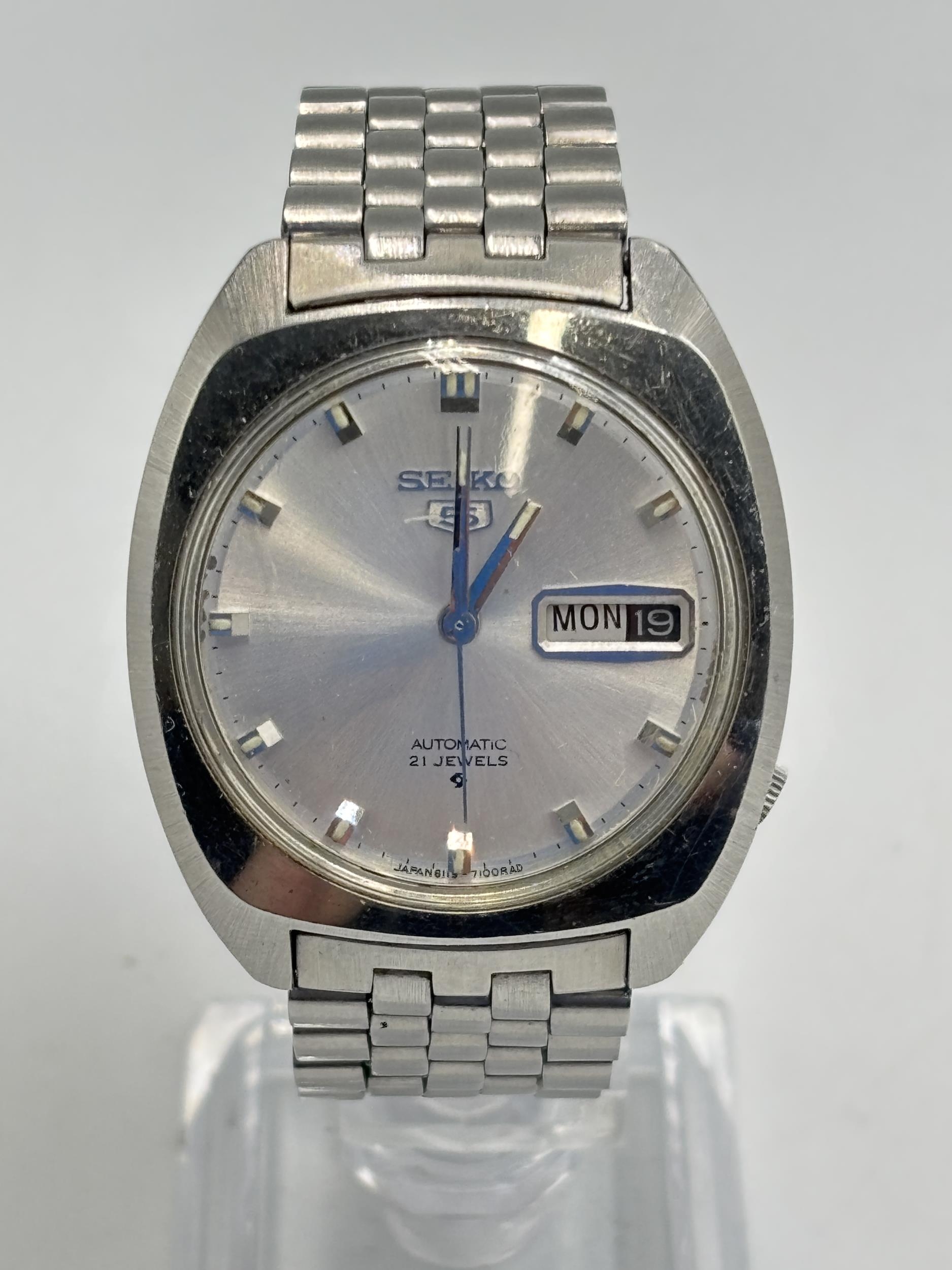 A Seiko 5 21 jewels automatic stainless steel men's wristwatch - No. 6119-7100