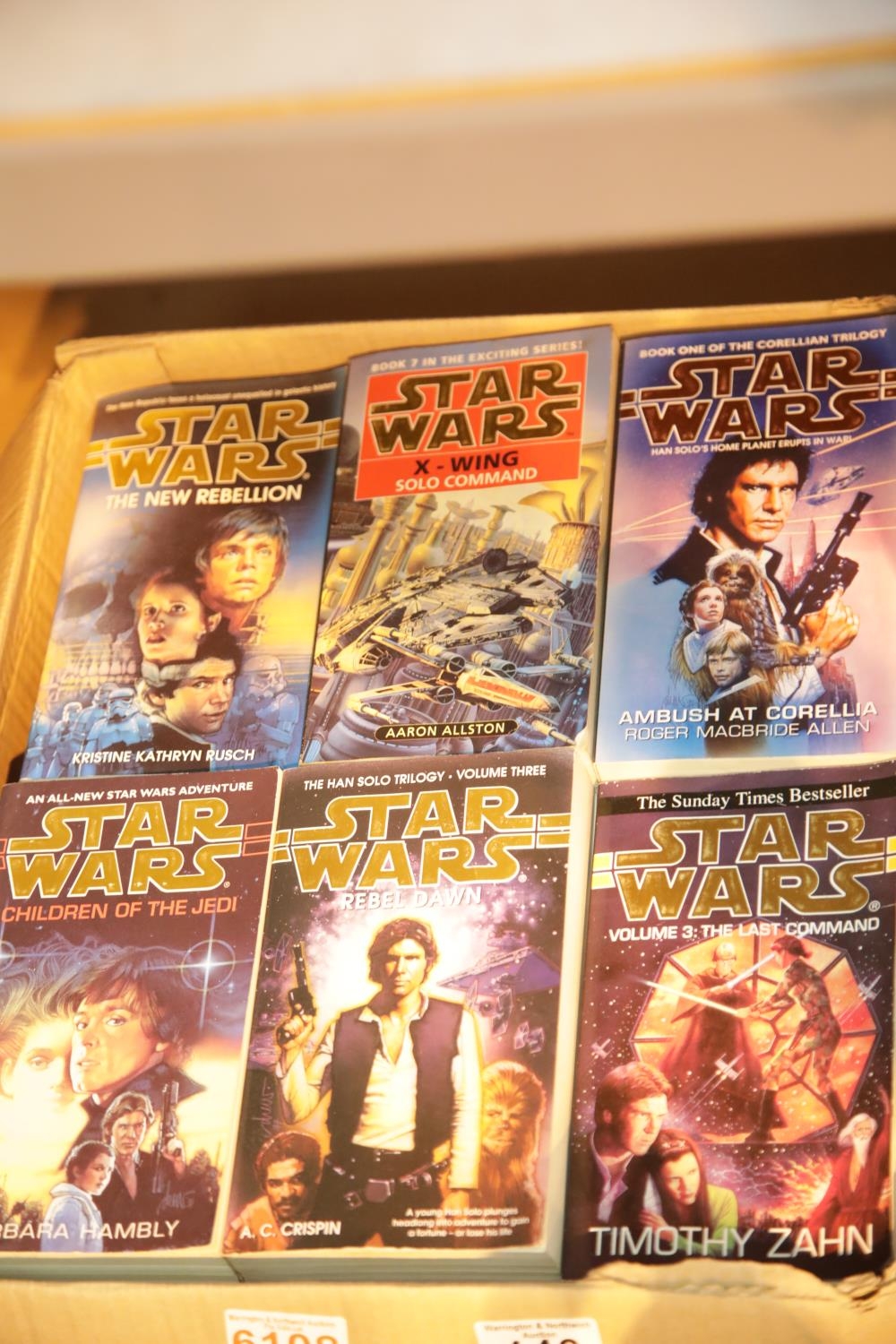 Box of approximately 60 Star Wars related paperback books. This lot is not available for in-house P&P