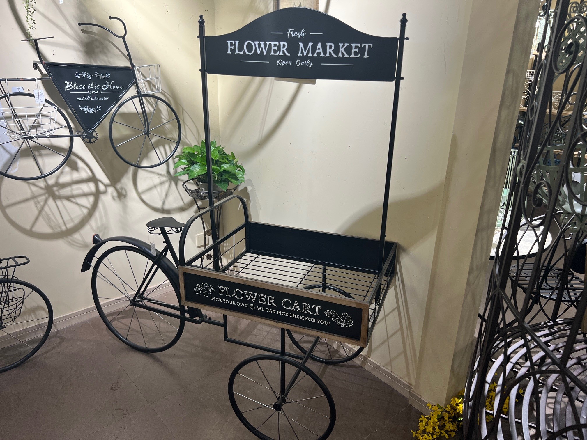 NEW LARGE WELCOME TO THE FLOWER MARKET BICYCLE CART