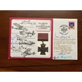 Victoria Cross rare Multiple signed DM medal cover with silk copy medal. Autographed by John Weir Foote VC, Ian Fraser VC, Rod Learoyd VC, Bill Reid VC. Flown by VC10 and also signed by the pilot Wg Cdr G Bunn MBE. Single Vendor autograph collection. Good condition. All autographs come with a Certificate of Authenticity. We combine postage on multiple winning lots and can ship worldwide. UK postage from £5.99, EU from £7.99, Rest of World from £9.99