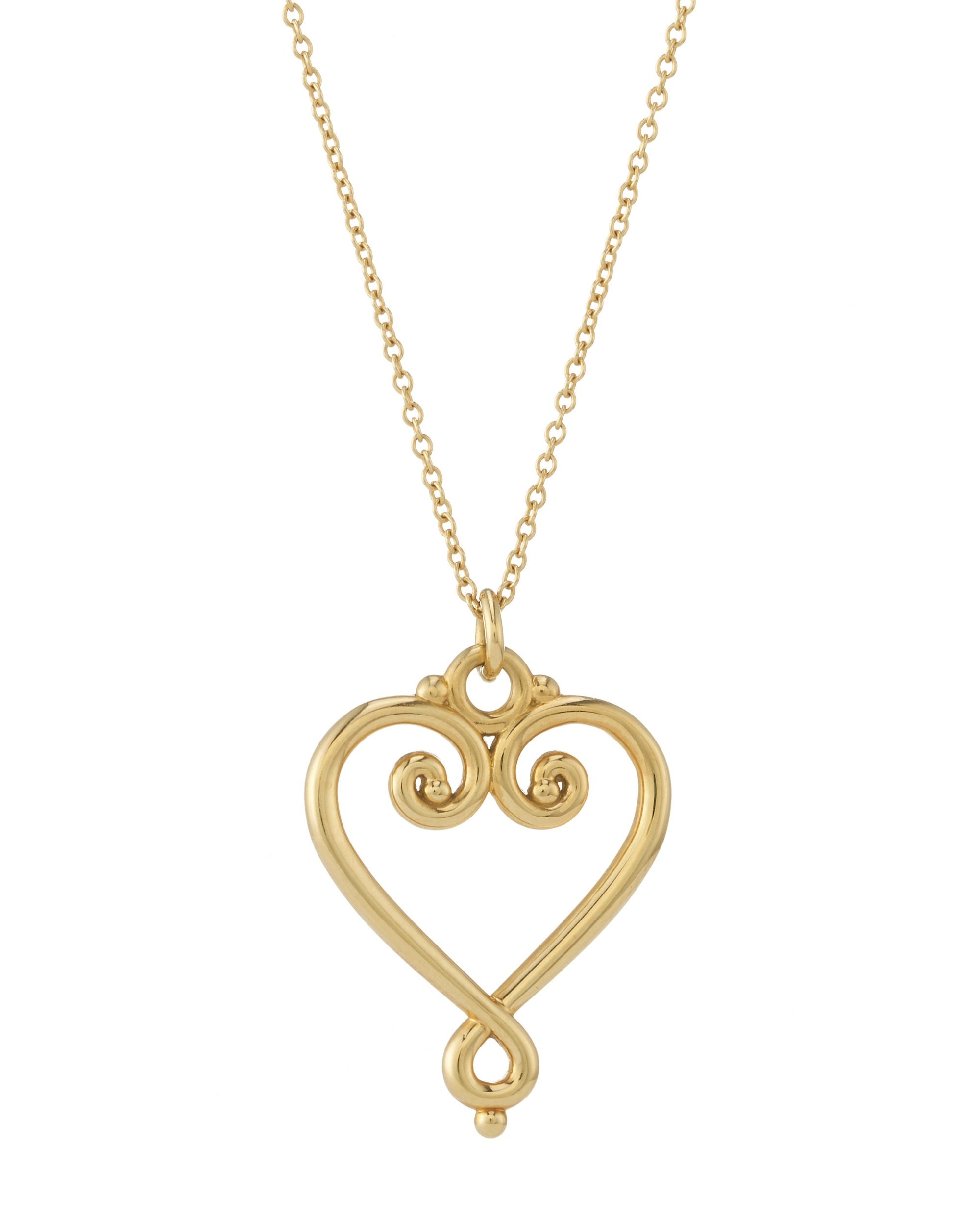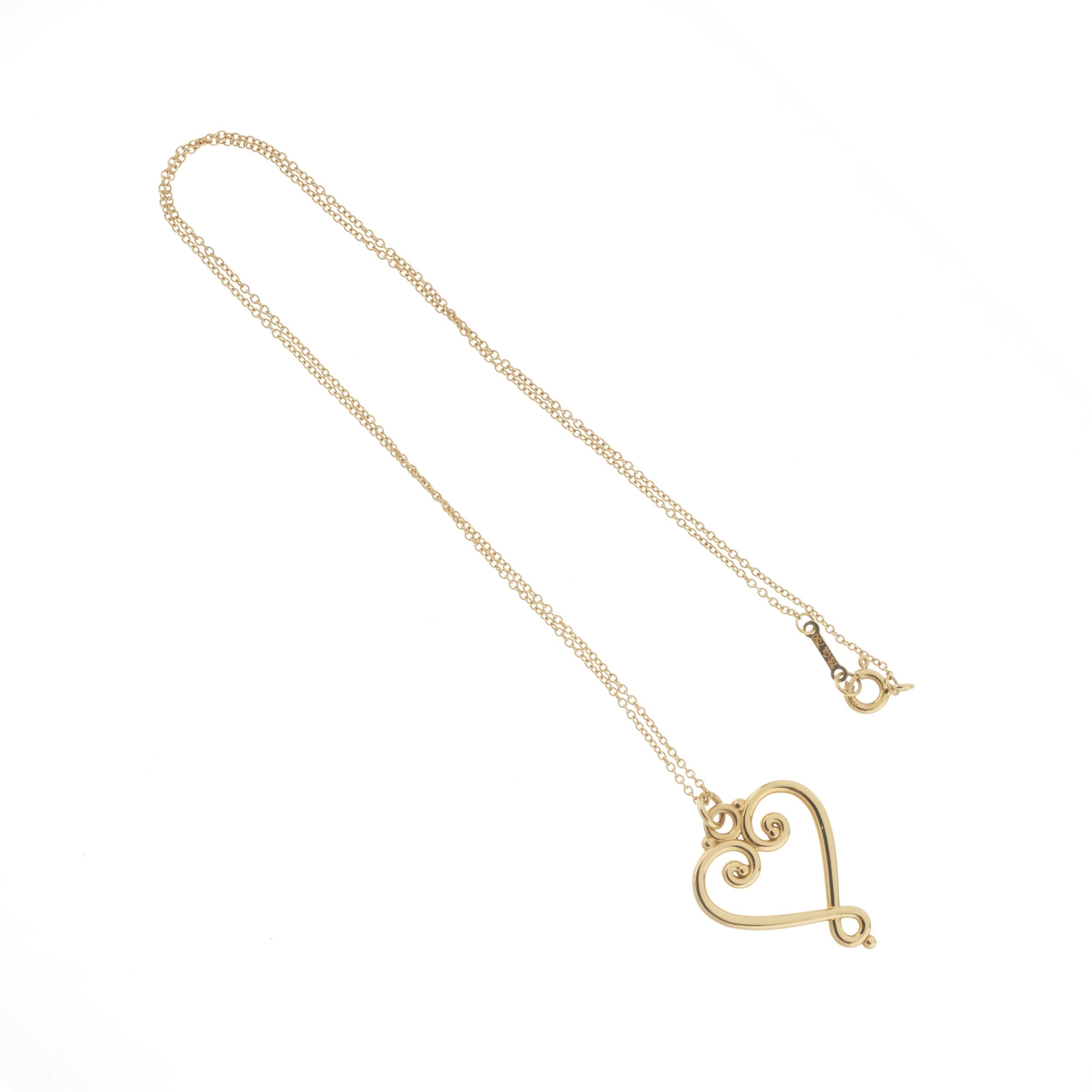 Paloma Picasso for Tiffany & Co., a 18ct gold Venice Goldoni Heart pendant, with trace-link chain, signed T&Co., facsimile signature for Paloma Picasso, mount stamped 750, length of pendant 2.6cm, length of chain 40cm, 4.8g