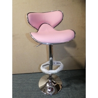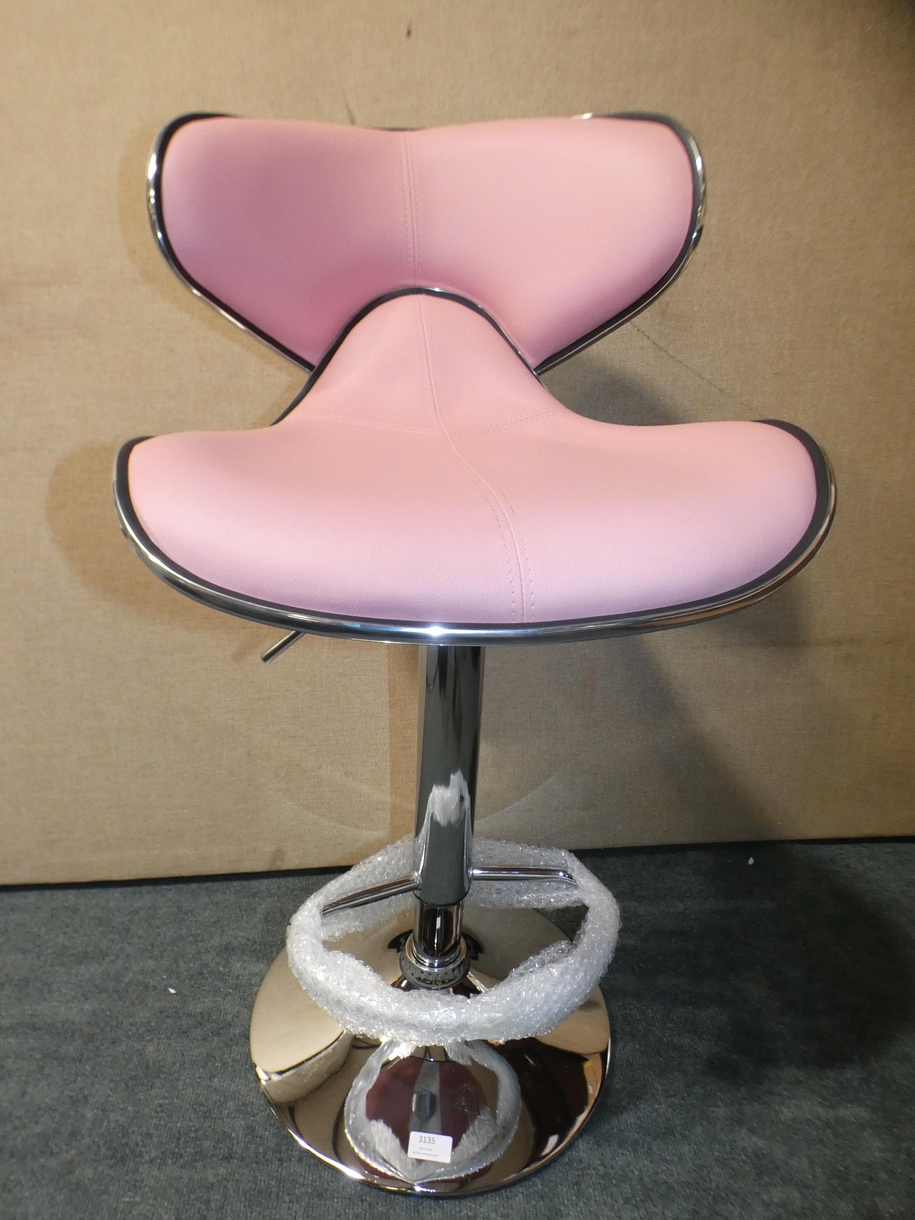 A pink leather effect gas lift bar stool on chrome base * this lot is subject to VAT
