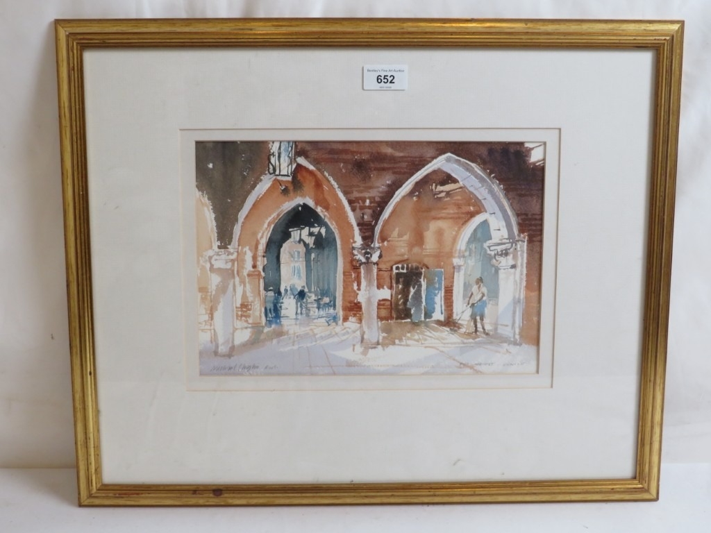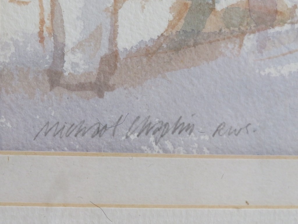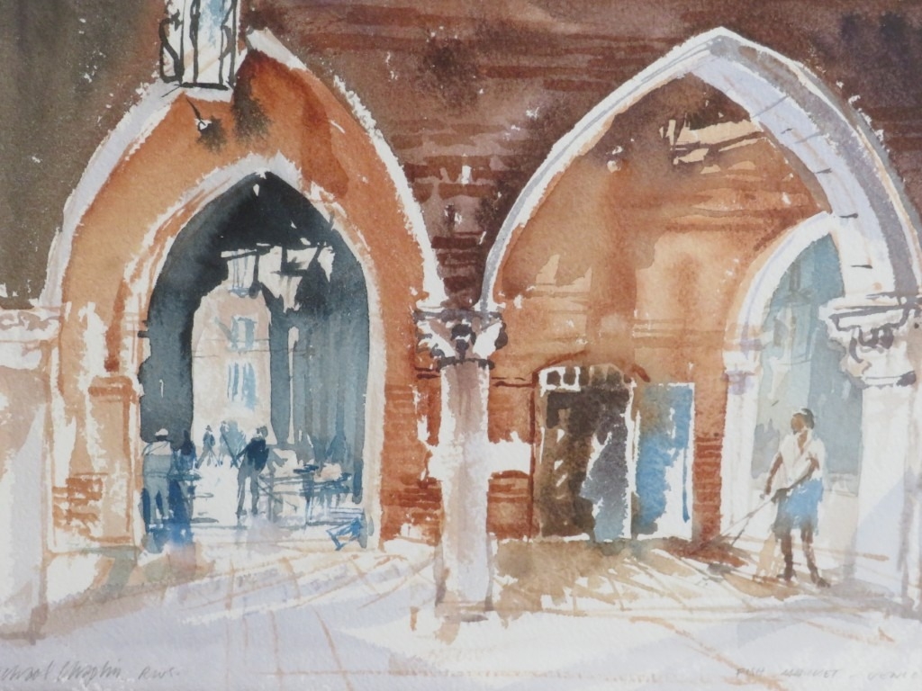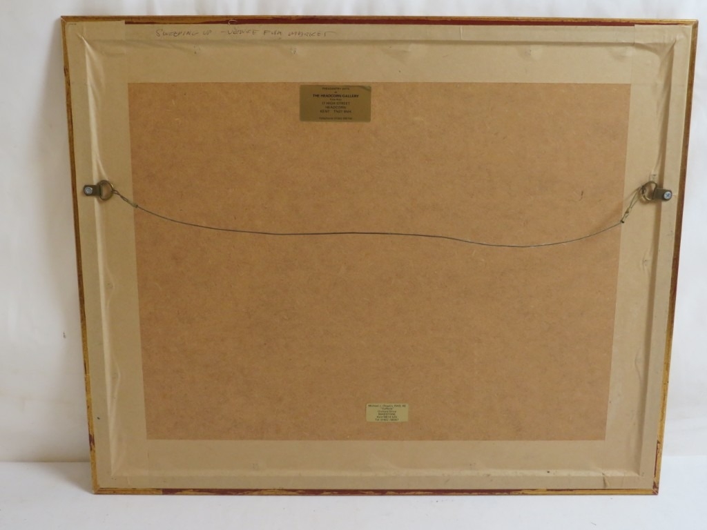 Michael J Chaplin (1943) RWS RE framed and glazed watercolour 'Sweeping up Venice Fish Market', signed lower left. 21cm x 31cm approx.