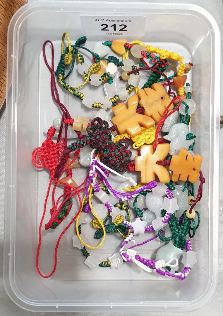 Fifteen jade bead pendants and bracelets.UK shipping £14.