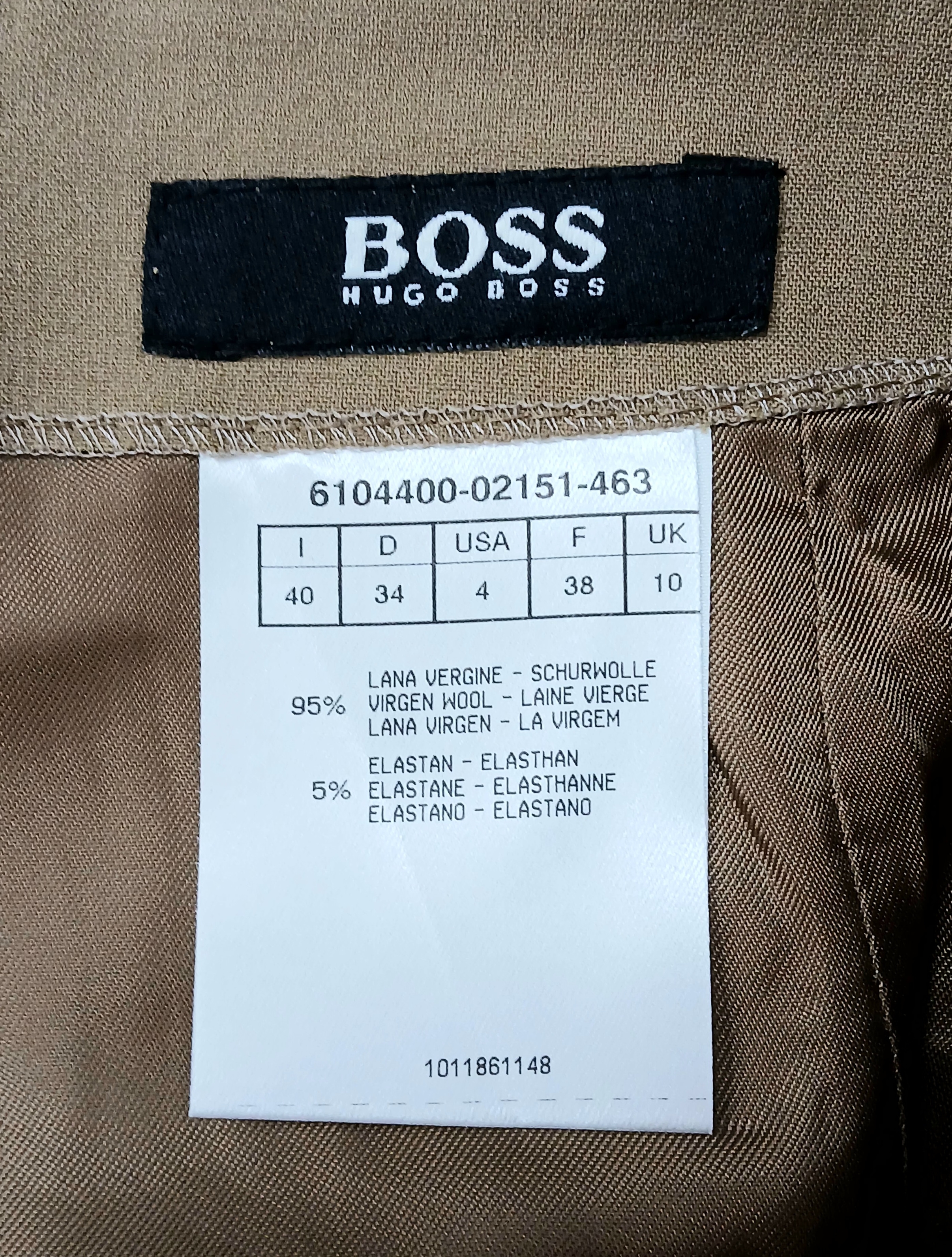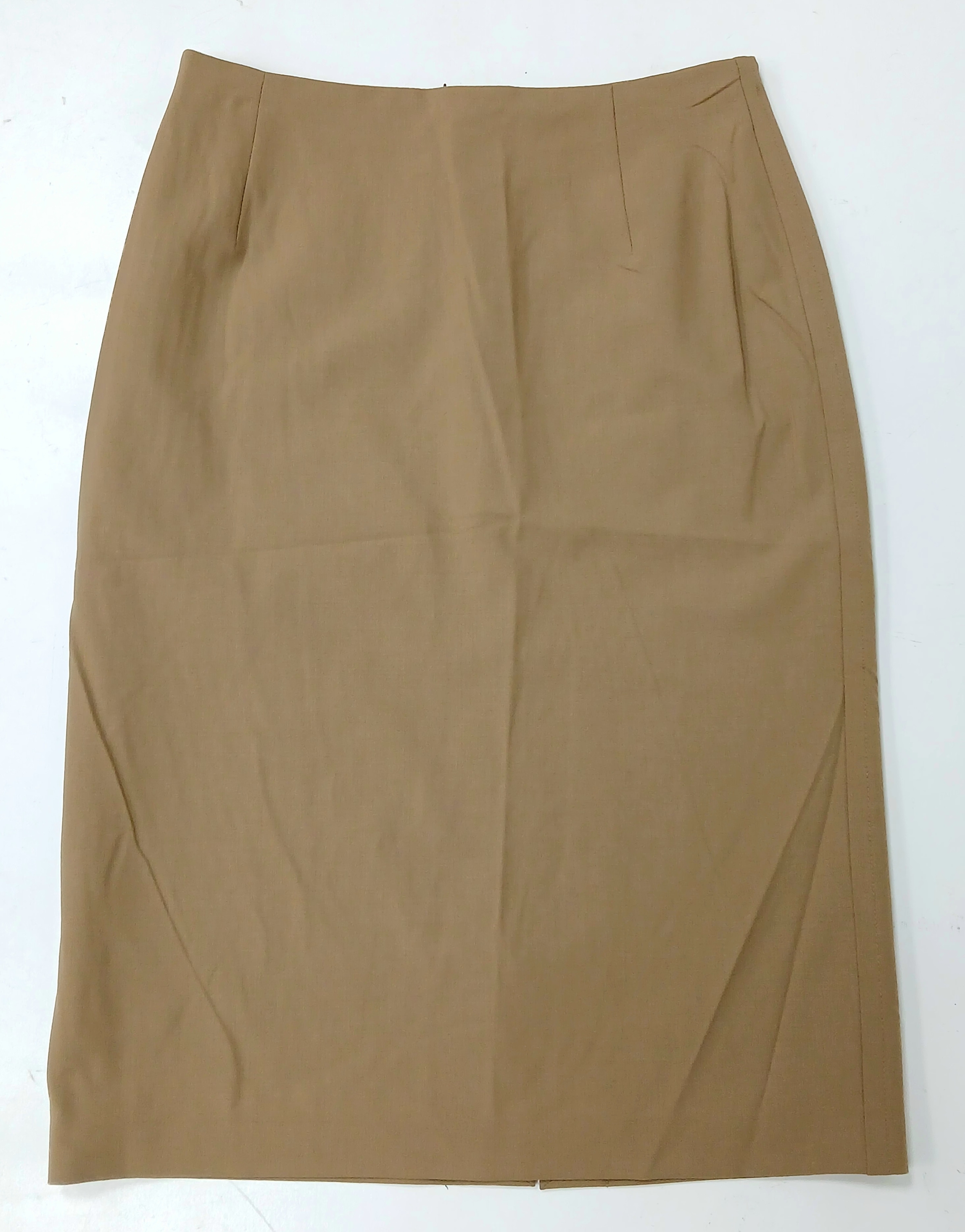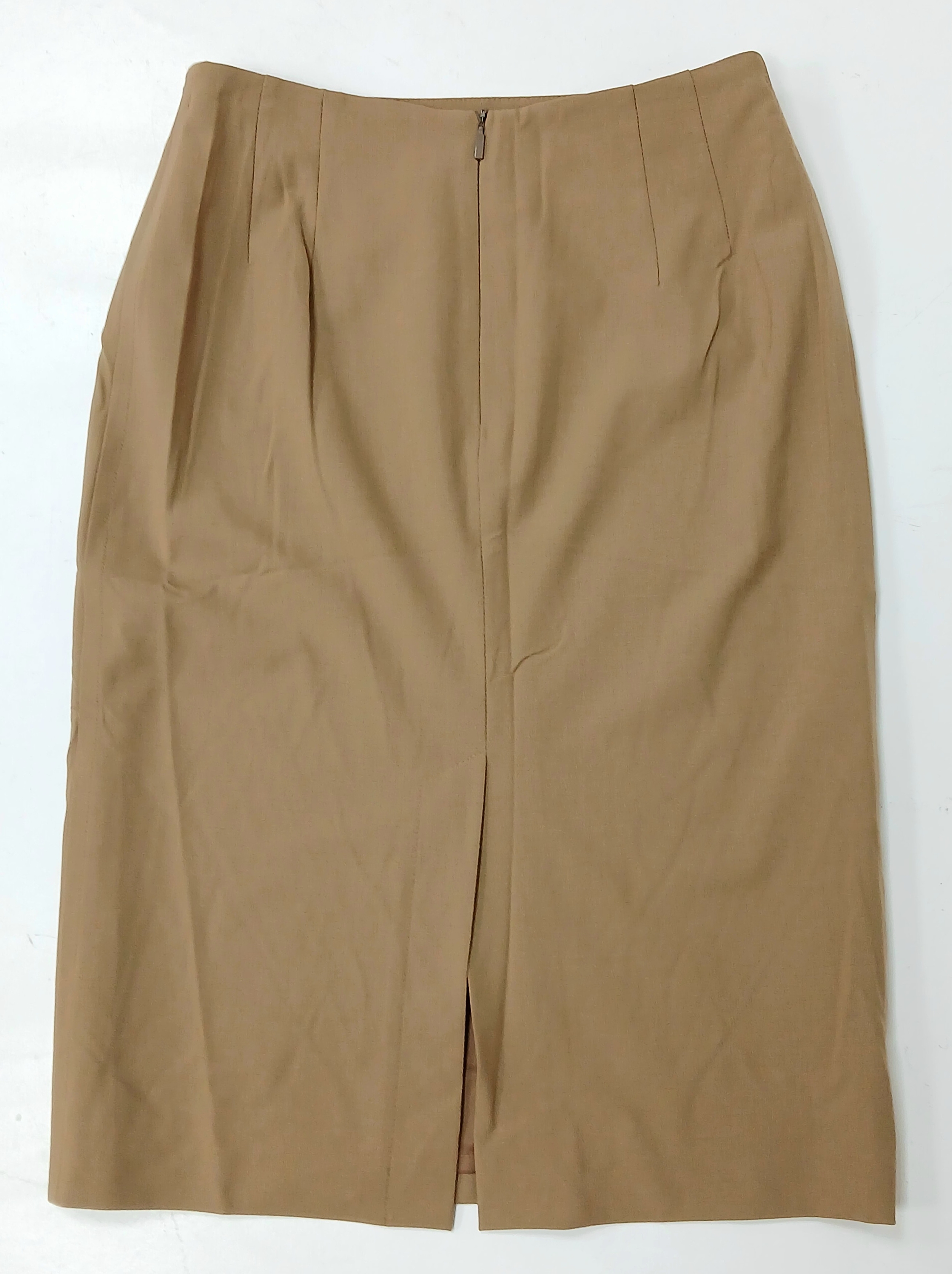 A Hugo Boss Camel Pencil Skirt. UK size 10. Zip to the back. Approximately 61cm length. In good condition but please see photos or request a condition report.