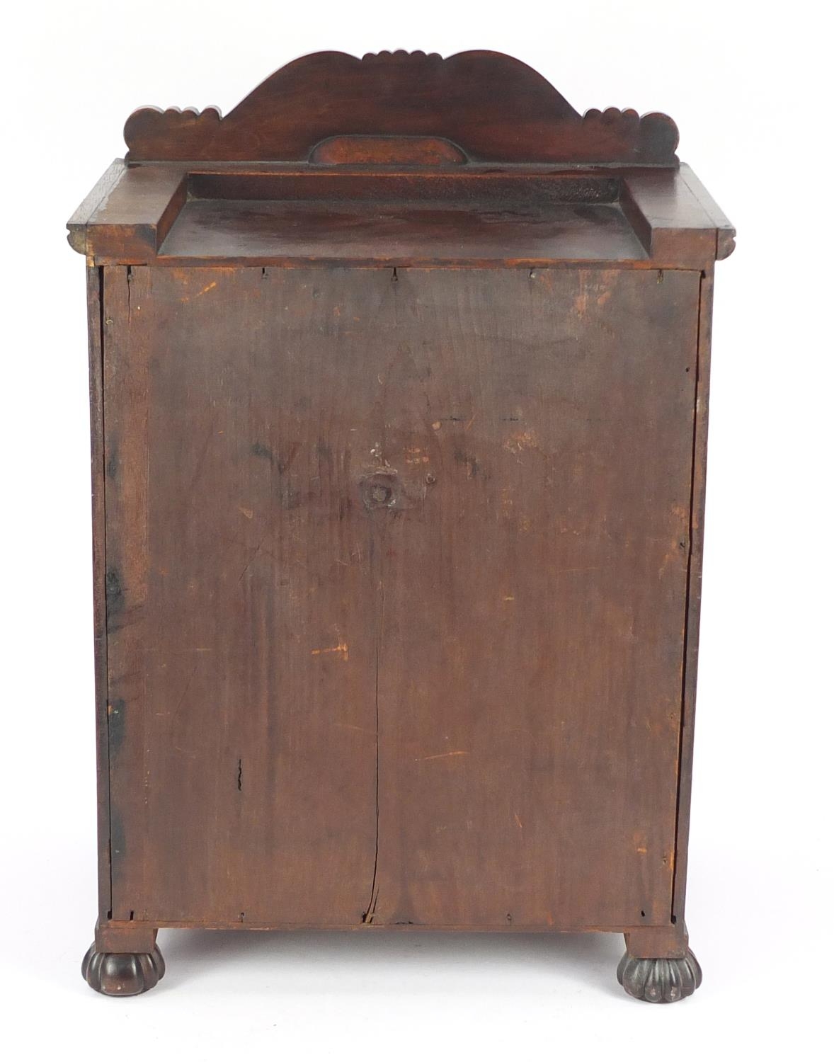Victorian walnut and mahogany table top stationary cabinet, enclosing a sectional letter rack above a shelf and drawer, 47cm H x 32.5cm W x 23.5cm D