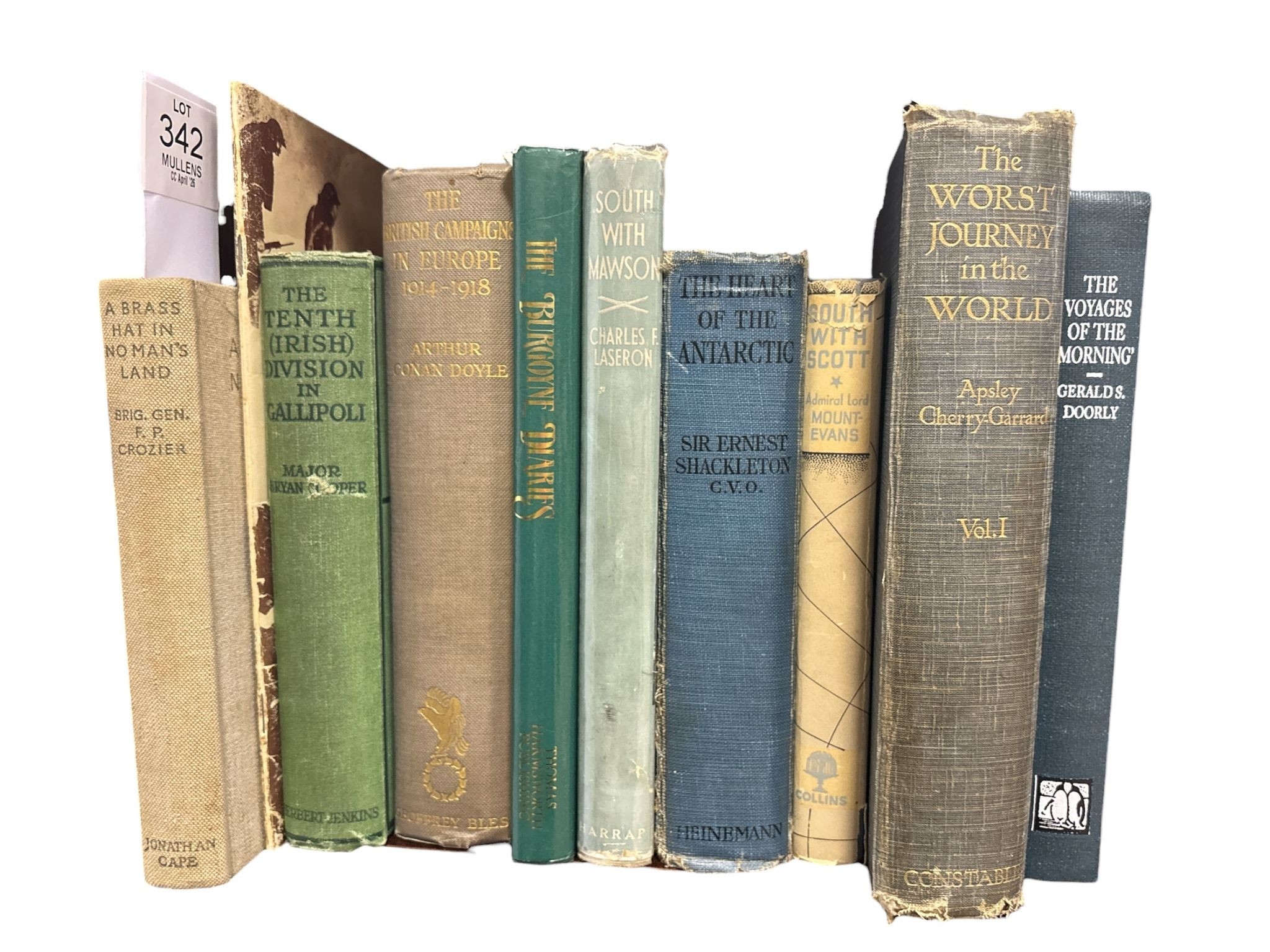 THE TENTH (IRISH) DIVISION IN GALLIPOLI by Bryan Cooper. London 1918 together with nine other volumes of military and exploration interest including The Heart of the Antarctic by Sir Ernest Shackleton
