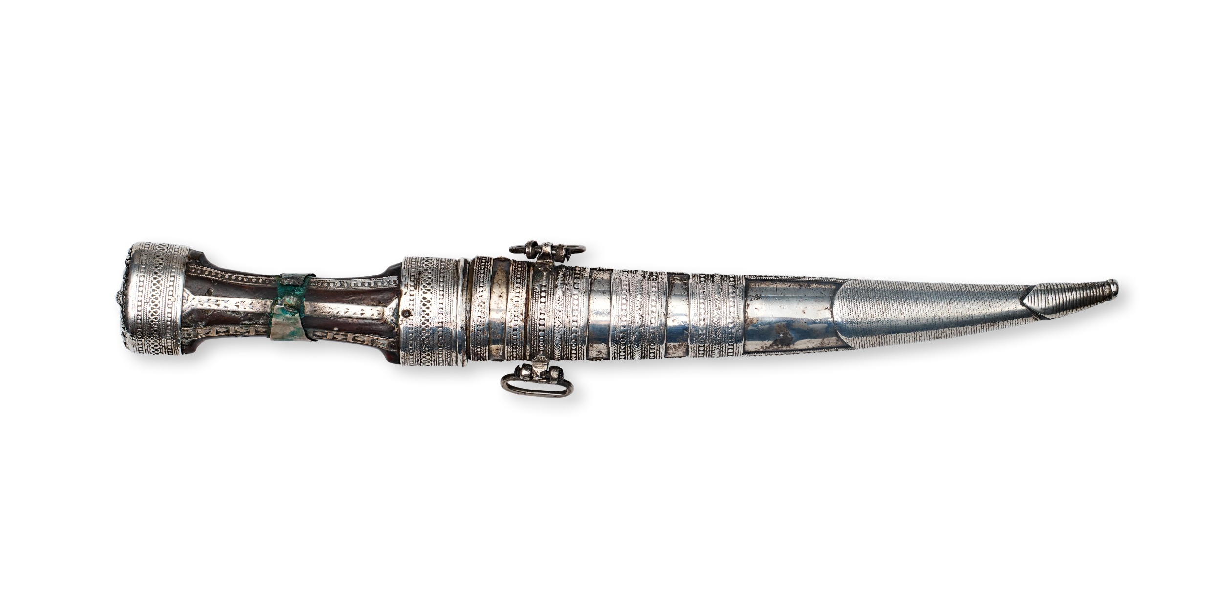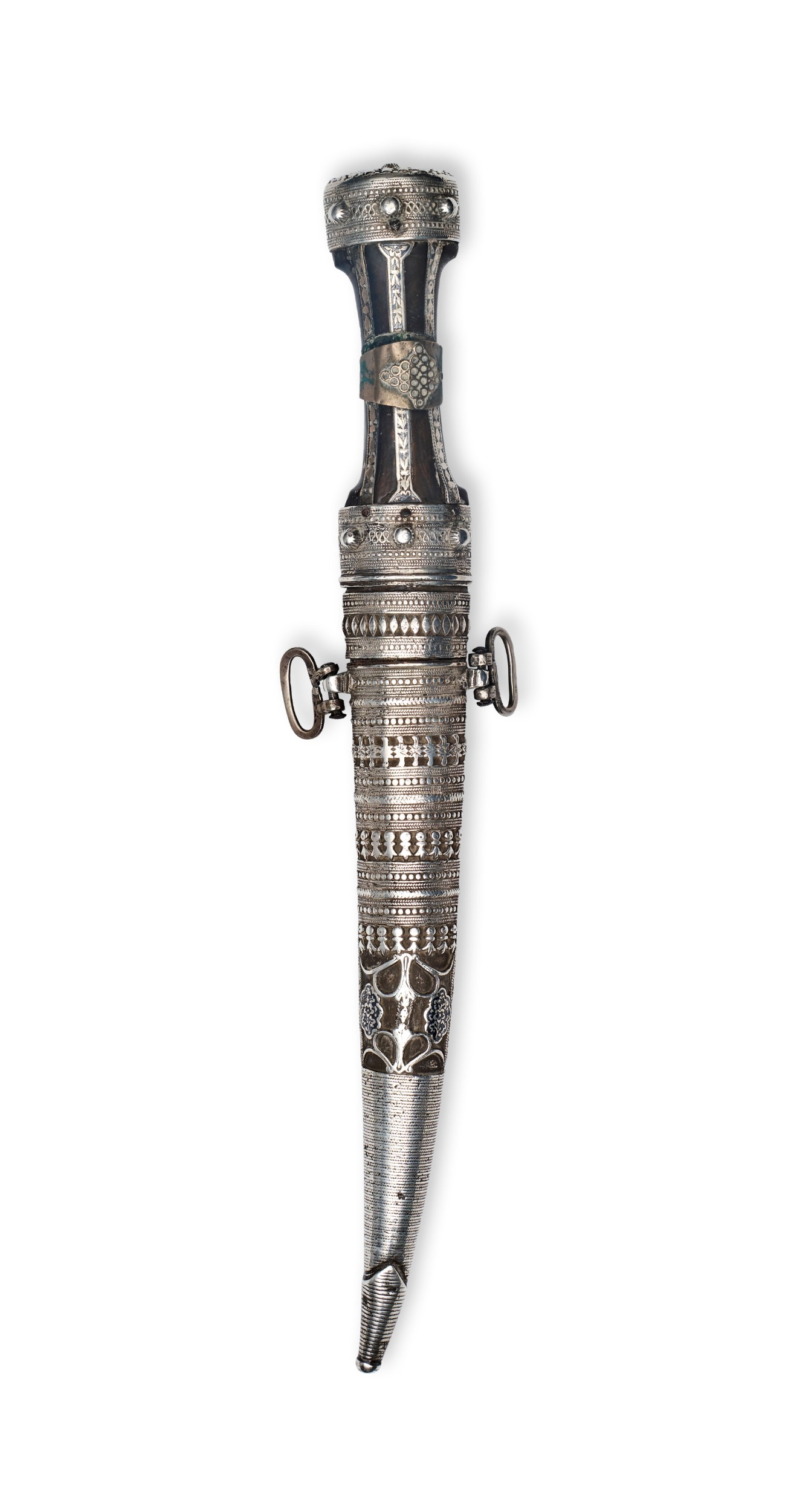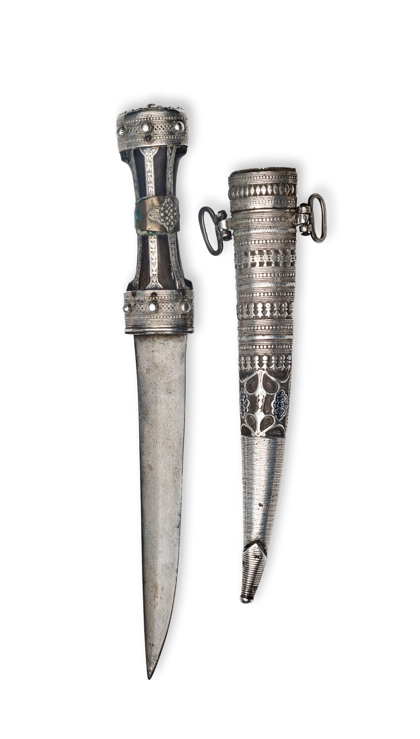 A SILVER AND NIELLO MOUNTED KINDJAL DAGGER WITH SCABBARD, OTTOMAN CAUCASIAN, 19TH CENTURY