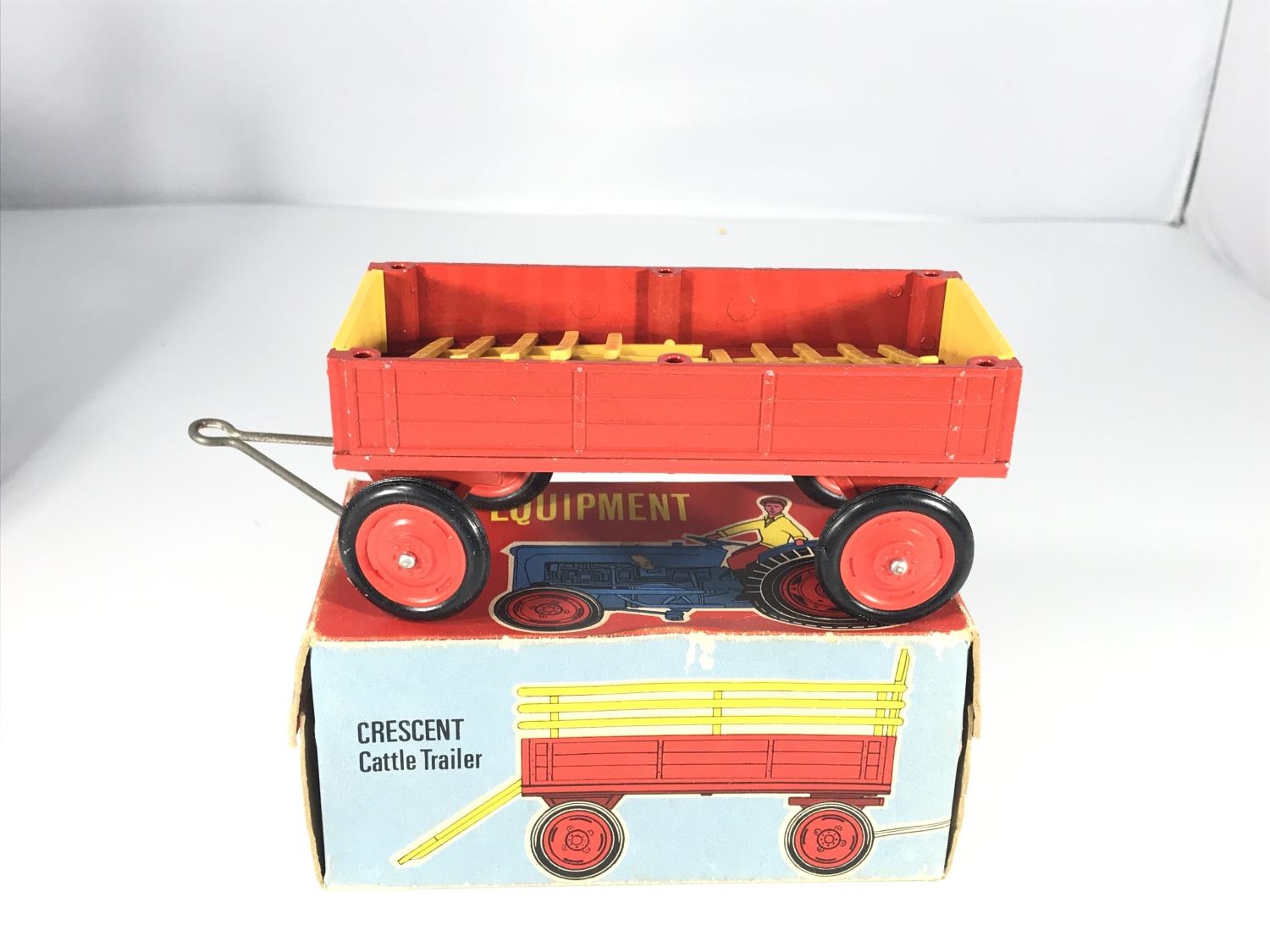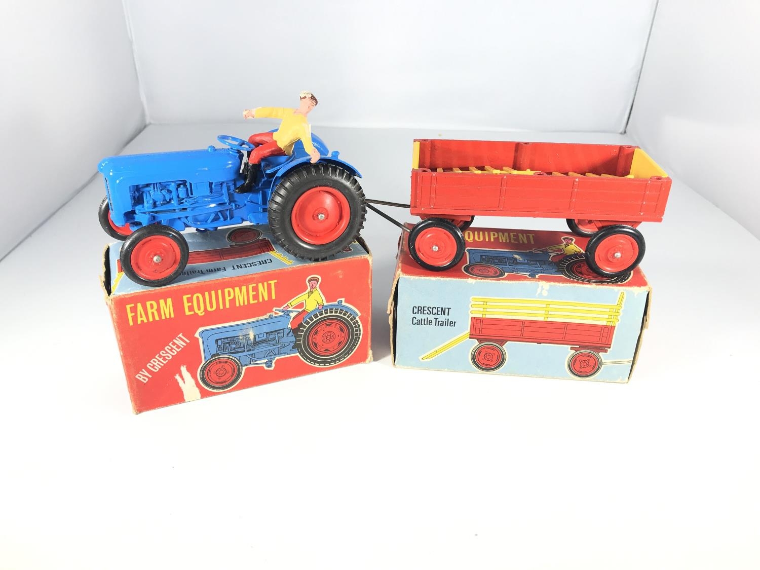 A Crescent toys farm tractor #1809 and a Crescent toys cattle trailer. Both boxed.