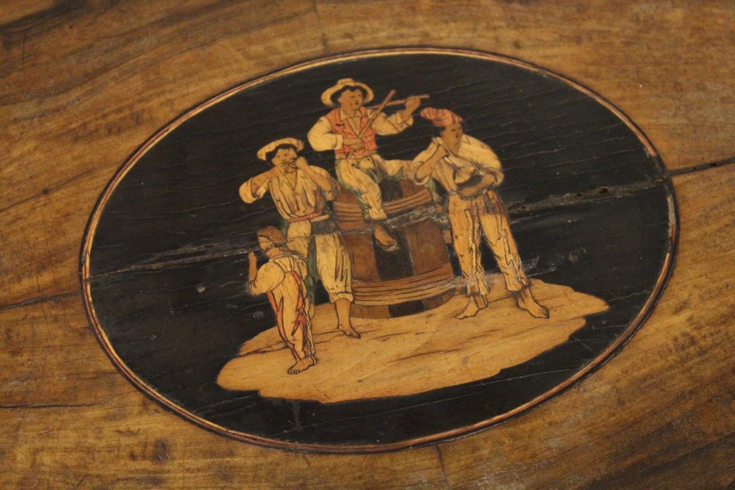 A SORRENTO INLAID TWO TIER TABLE on bamboo type legs.