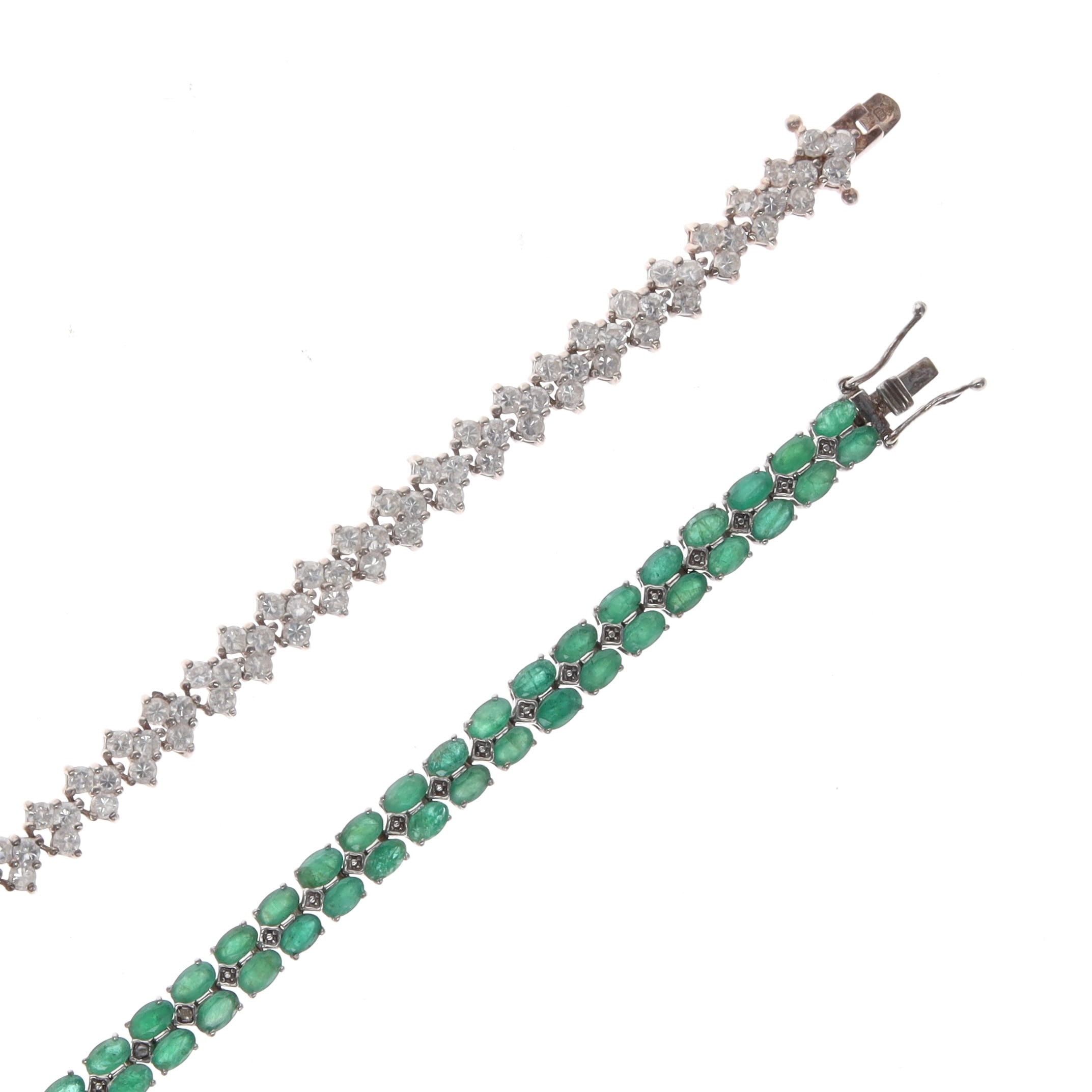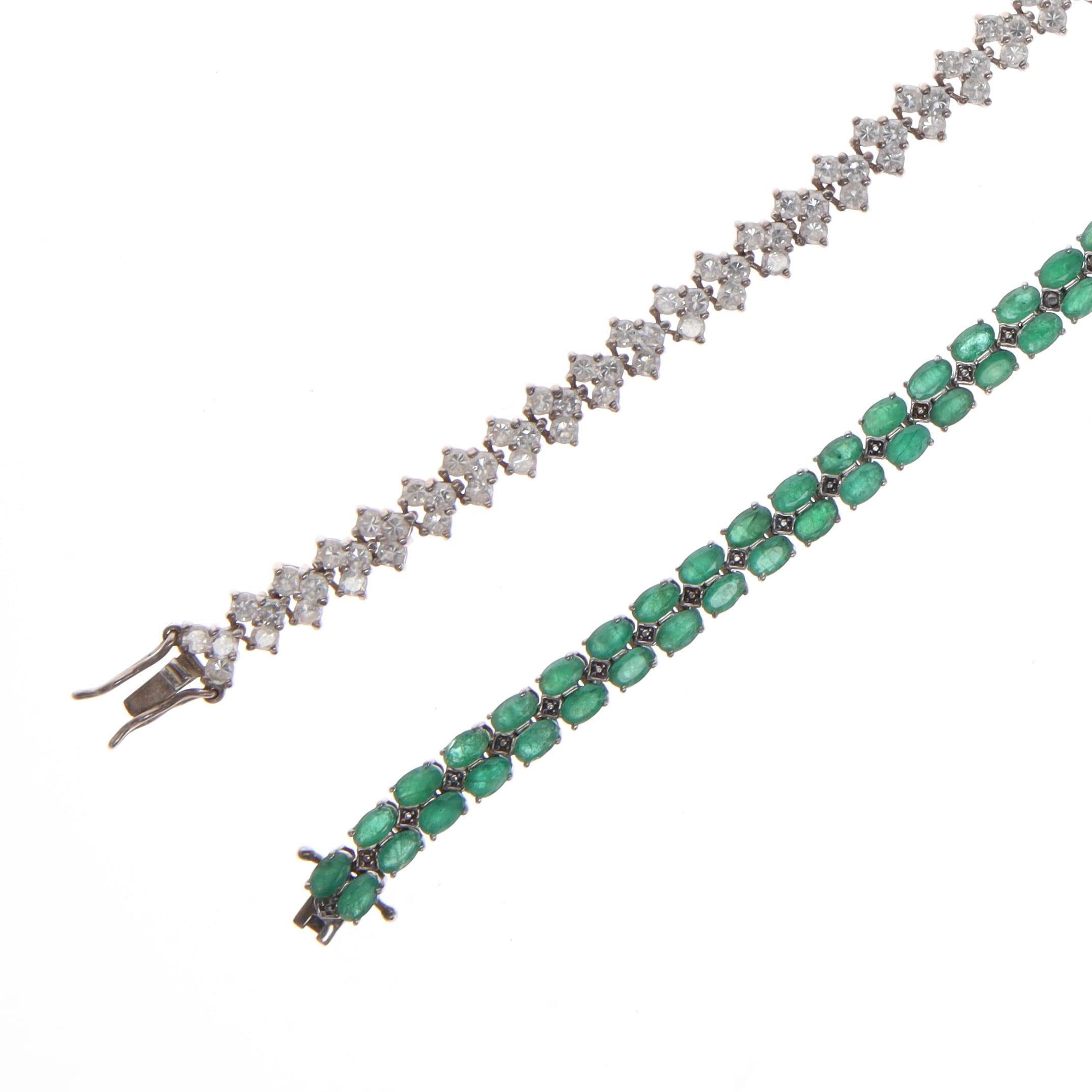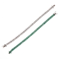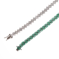 Sterling Silver Tennis Bracelet pair incl. Oval Emeralds, 37g