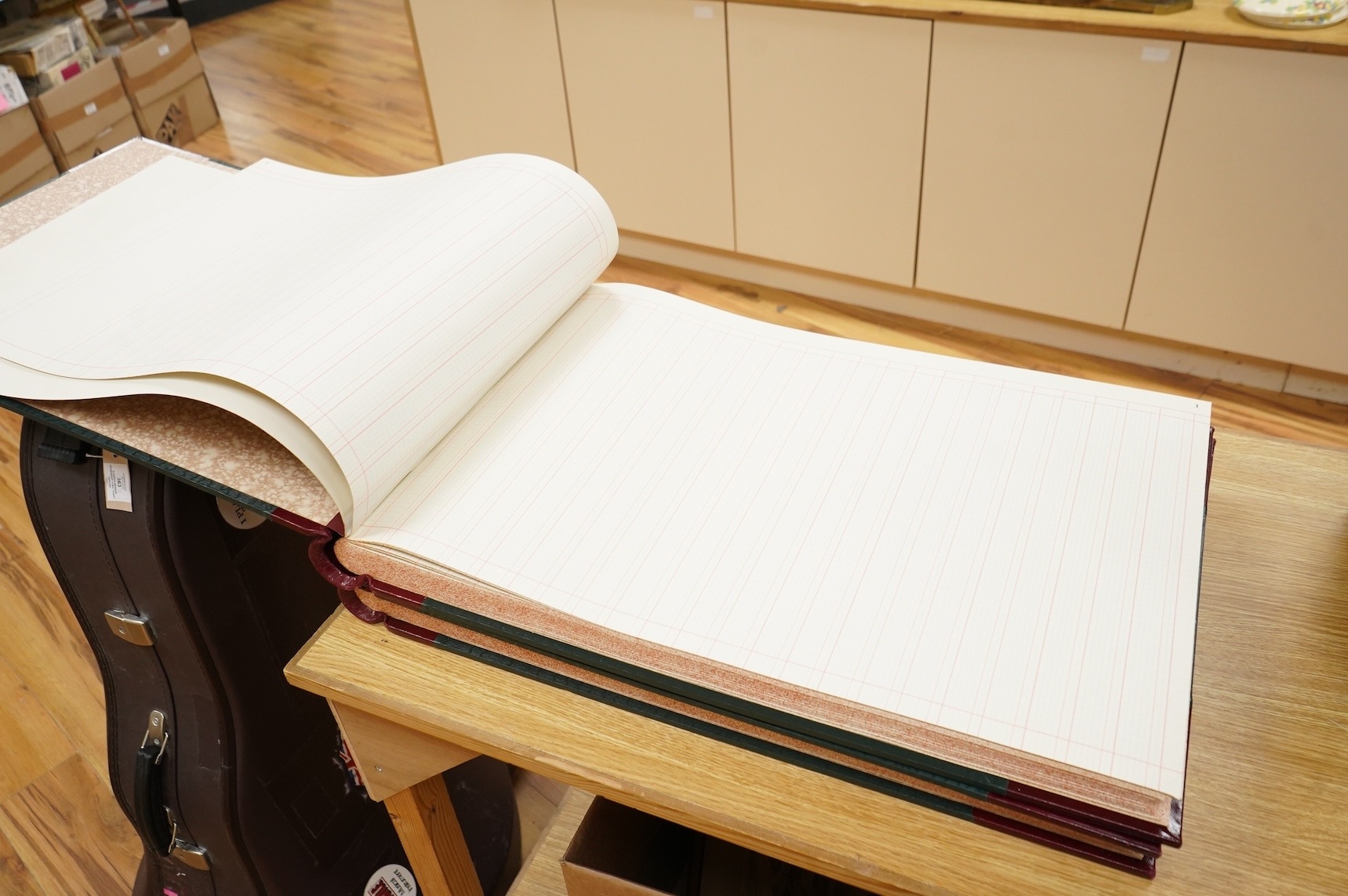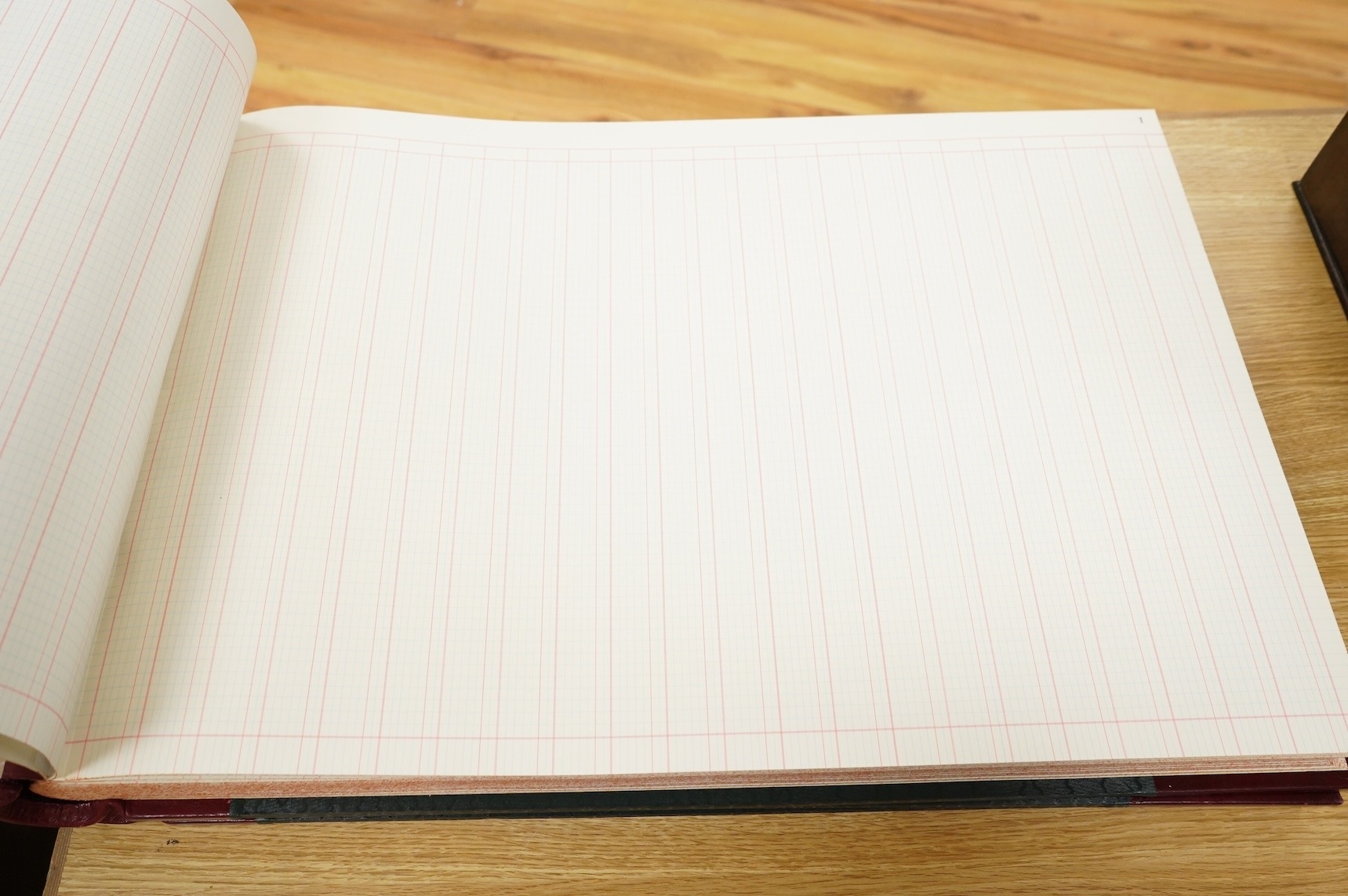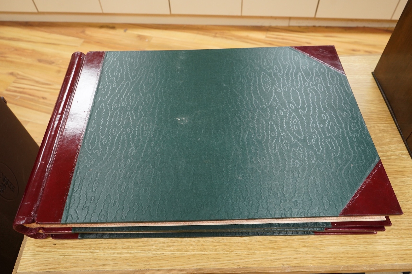 Two mid-20th century leather-bound folio ledgers, unused, 48 x 69cm