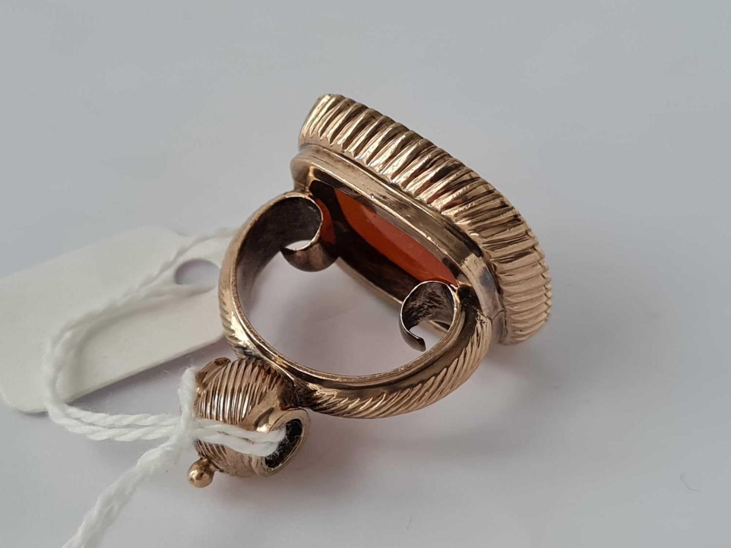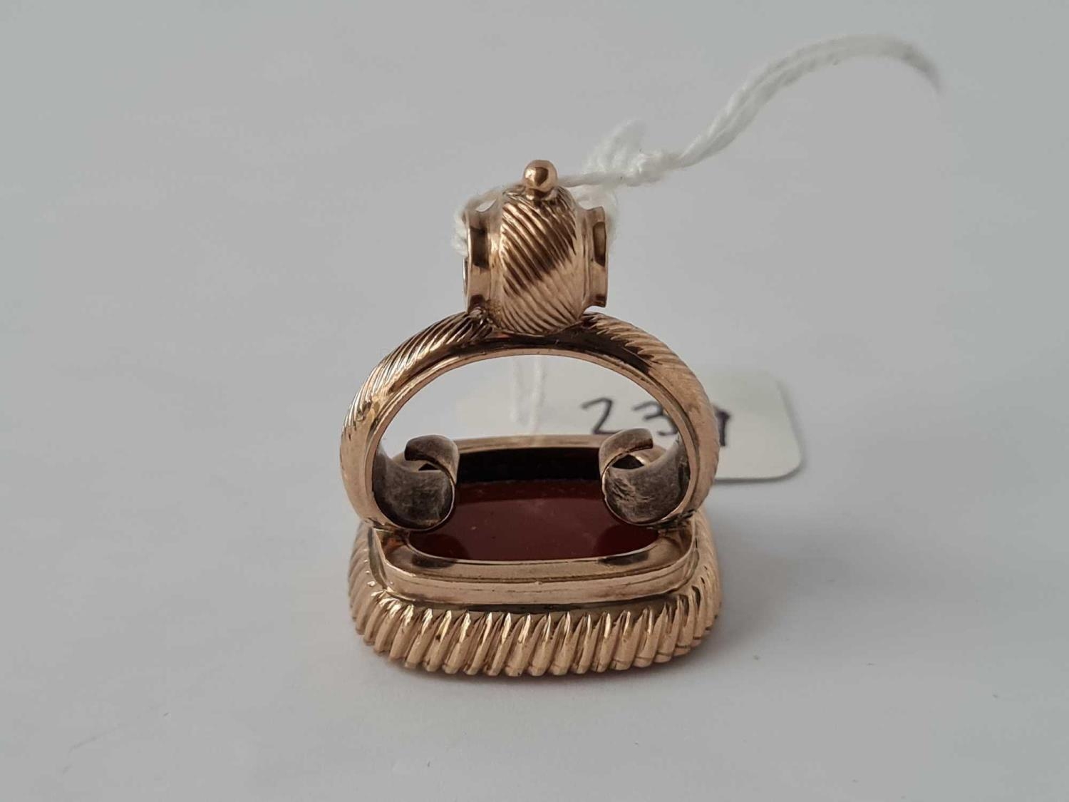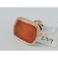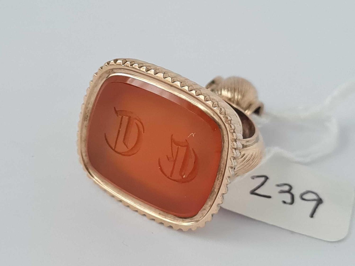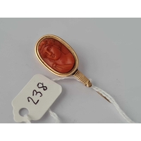 Antique early Victorian gold seal set with a carnelian carved with 2 gothic