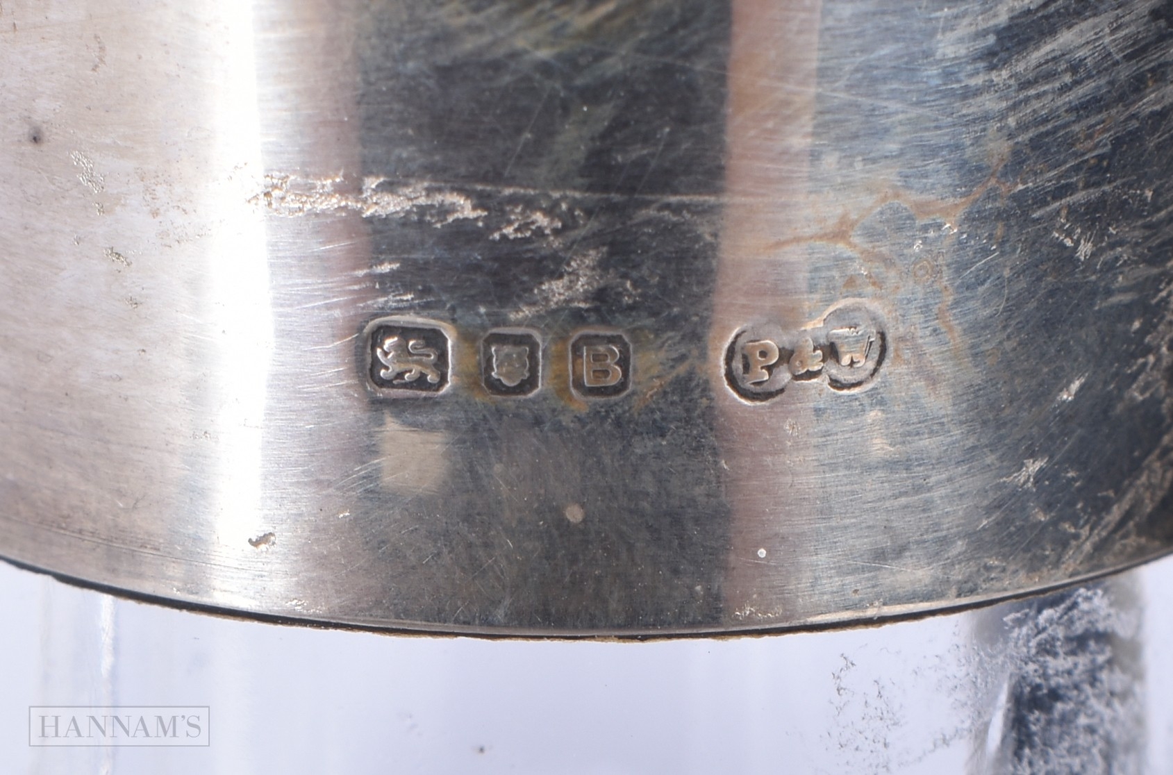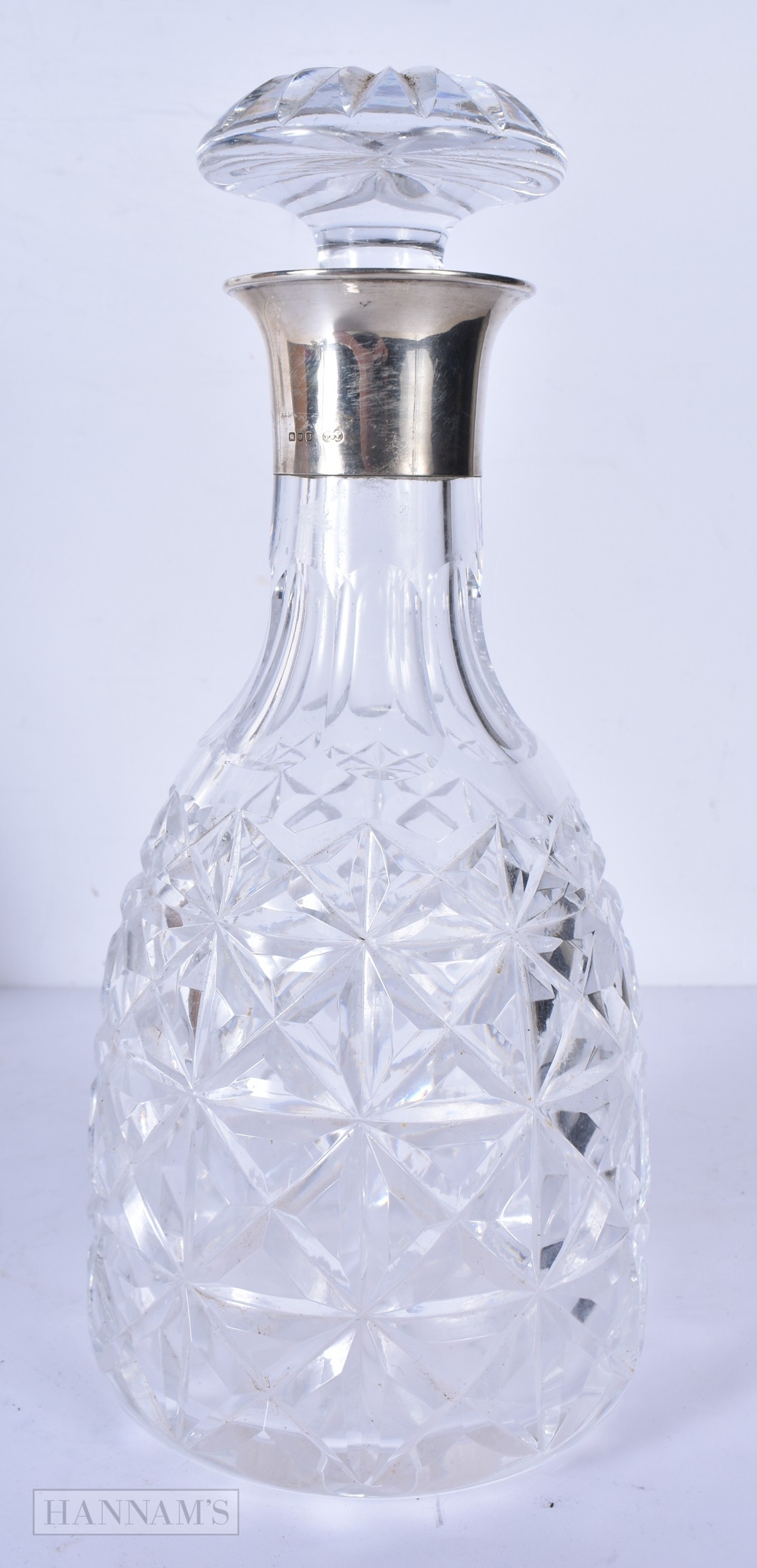 A pair of silver rimmed cut glass decanters 28cm (2)