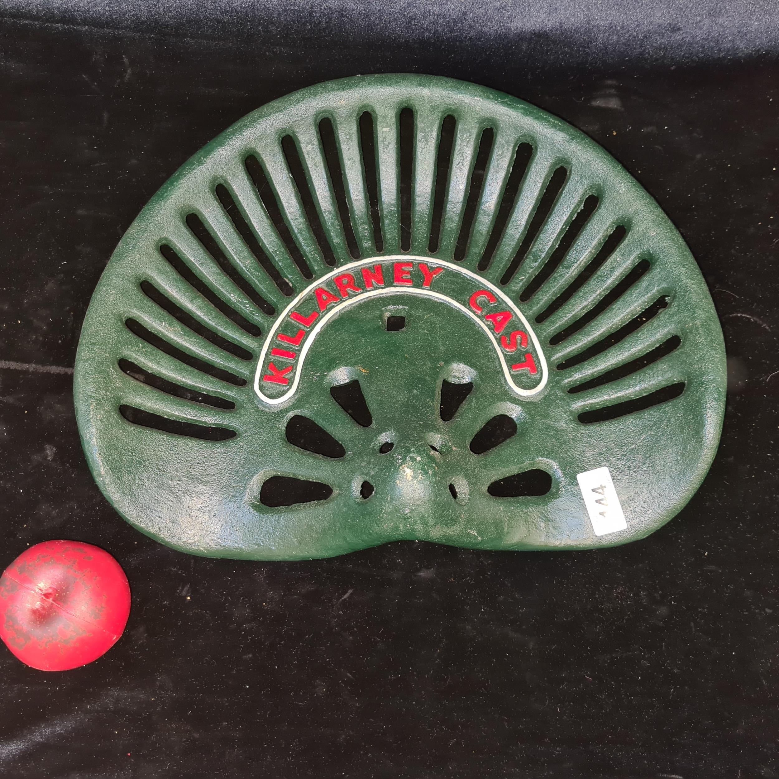 A heavy Killarney cast iron tractor seat, in vibrant green.