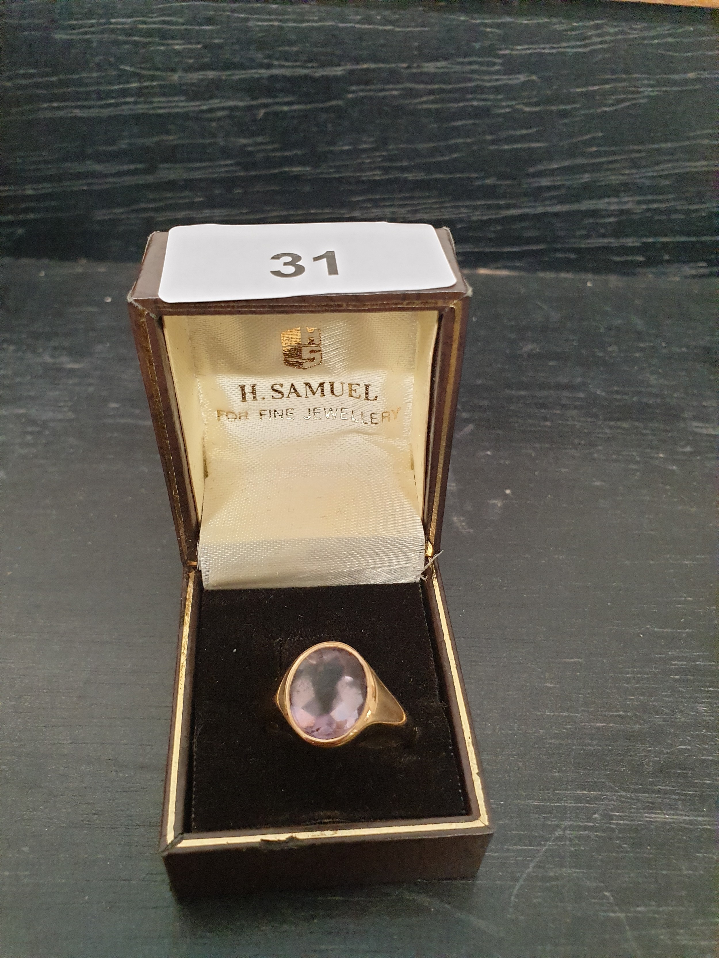 9ct Gents Ring With Beautiful Amethyst Stone Weight 8g