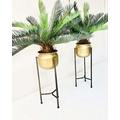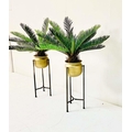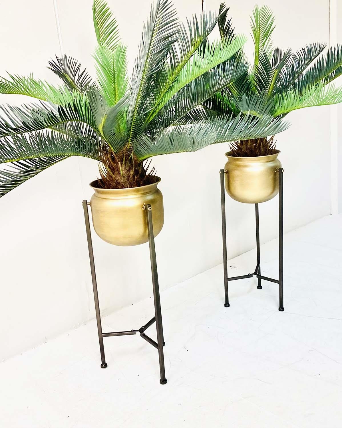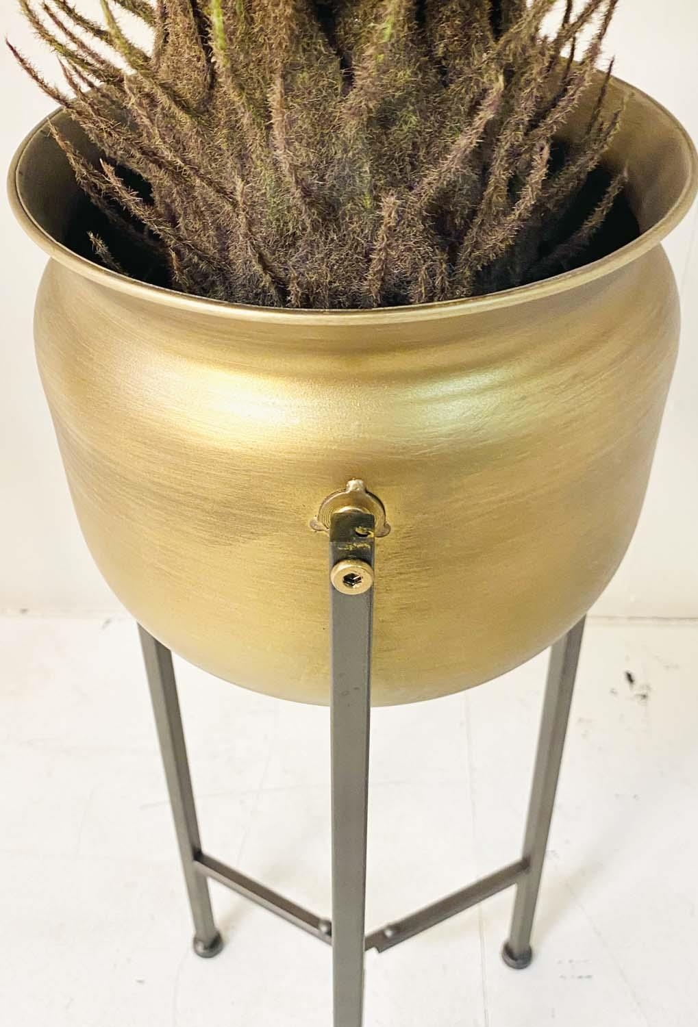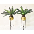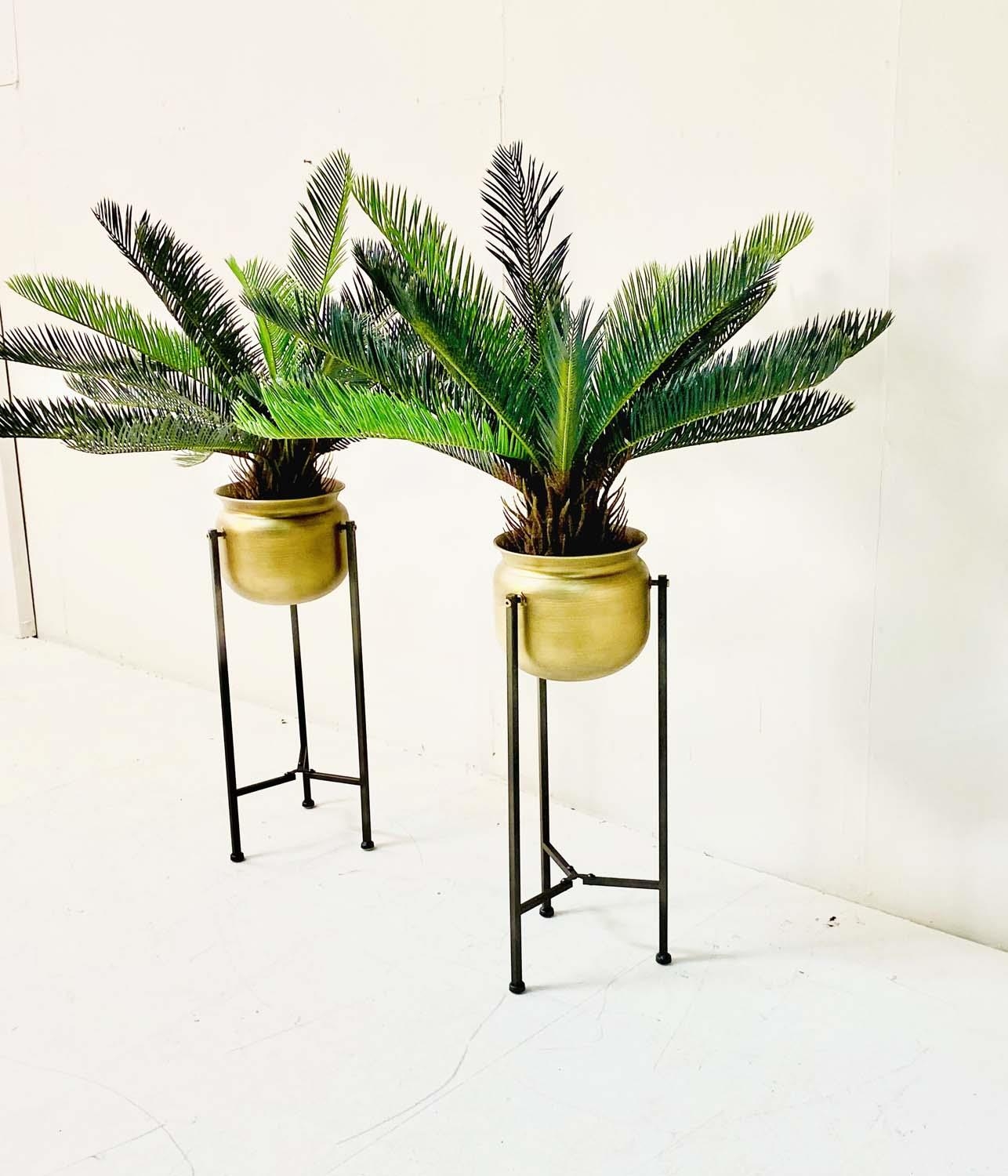 FAUX FERN TREES, in gilt metal planters, 115cm x 75cm x 75cm.