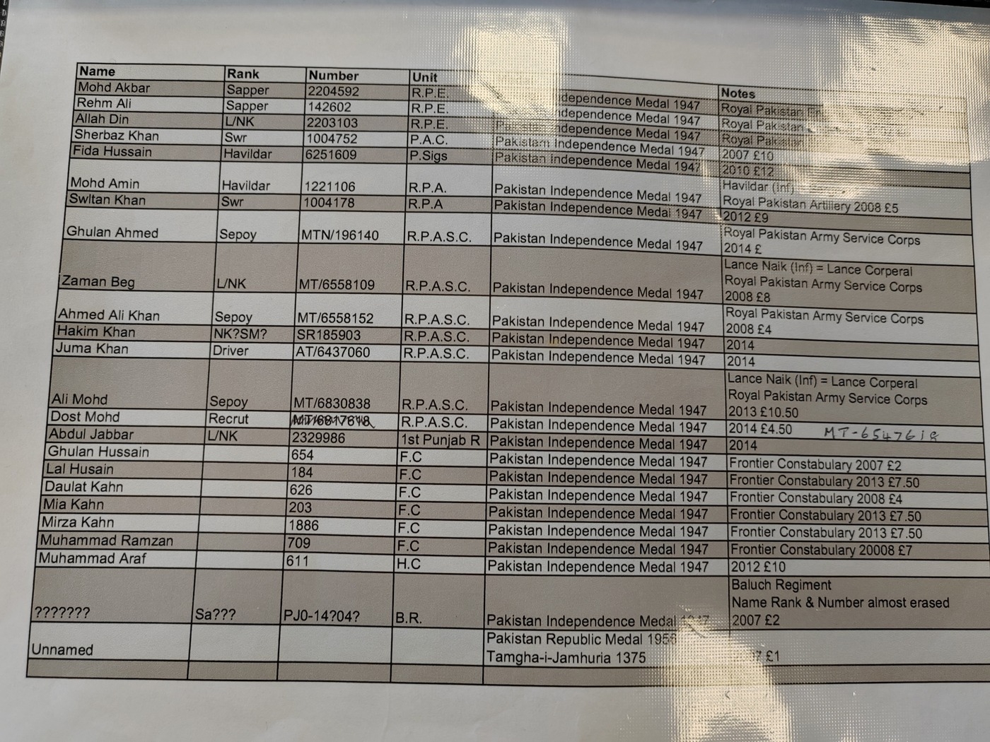 Pakistan Independence Medal (20) accumulation, ranks ranging from Sepoy to Havildar and various regiments including R.P.E, P.Sigs, R.P.A.S.C, F.C. etc. (R)