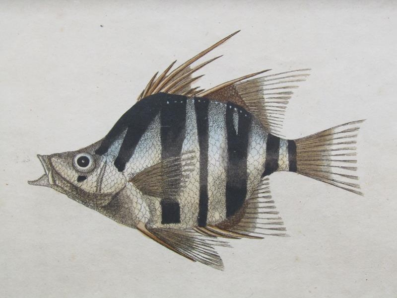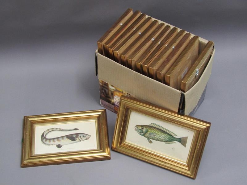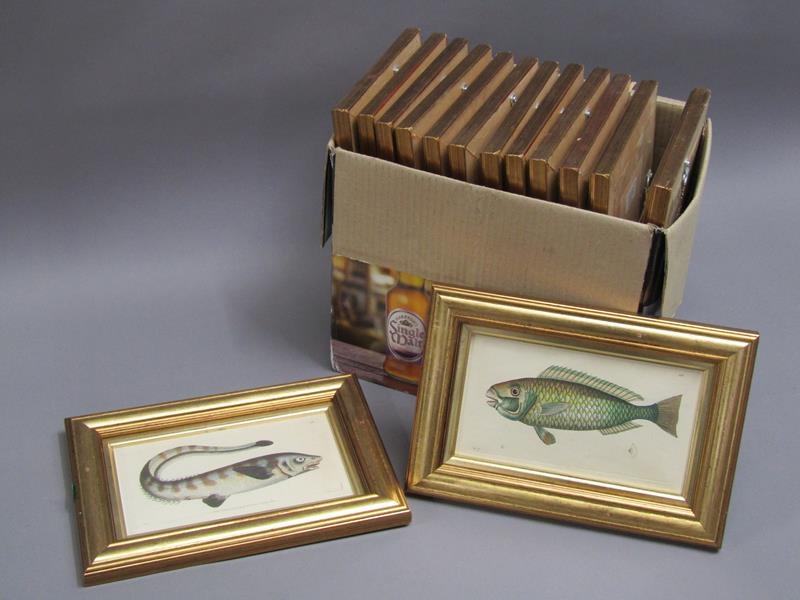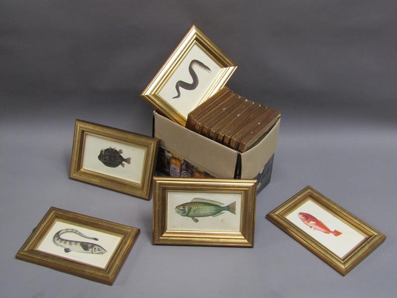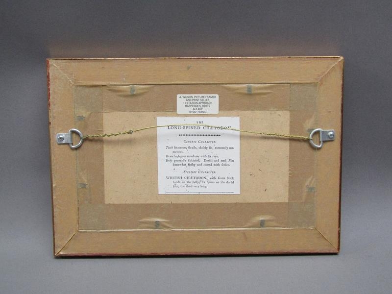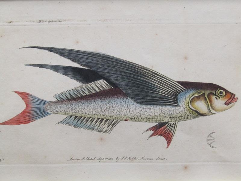A collection of fourteen late 18c/early 19c coloured prints of exotic fish, published by FP Nodder, Newman Street, all with descriptive printed panels to reverse, each framed and glazed, 11cm x 20cm .