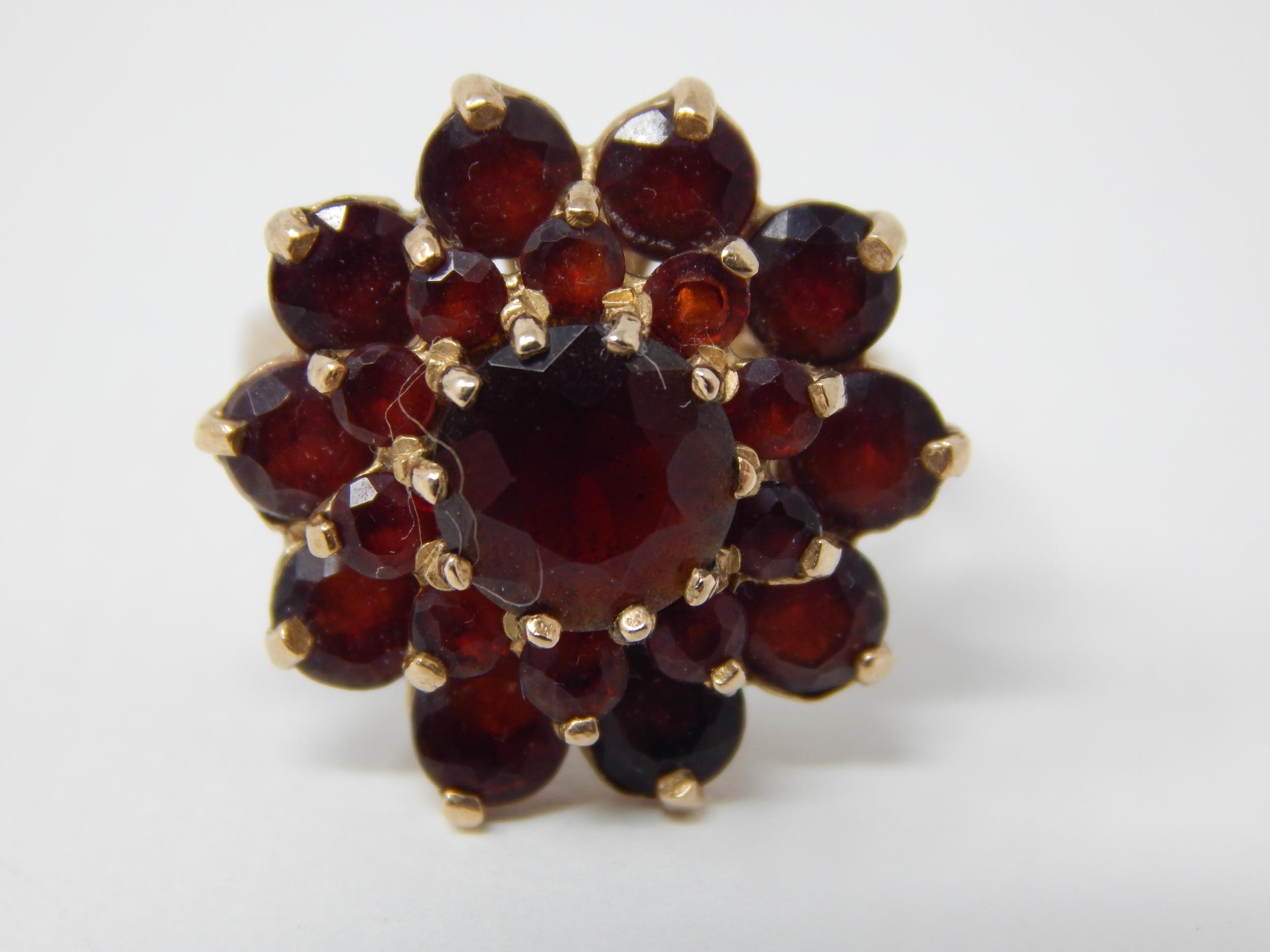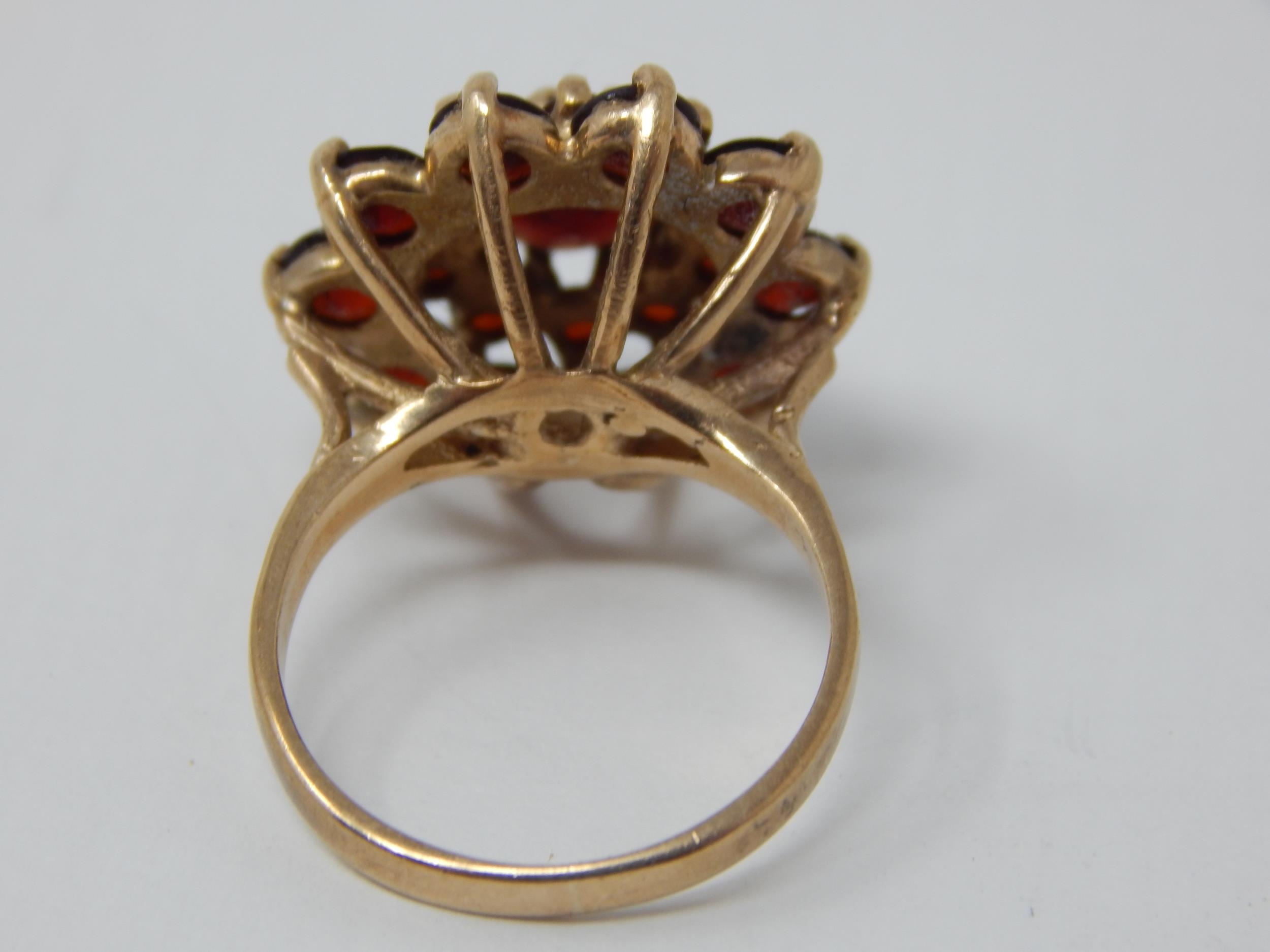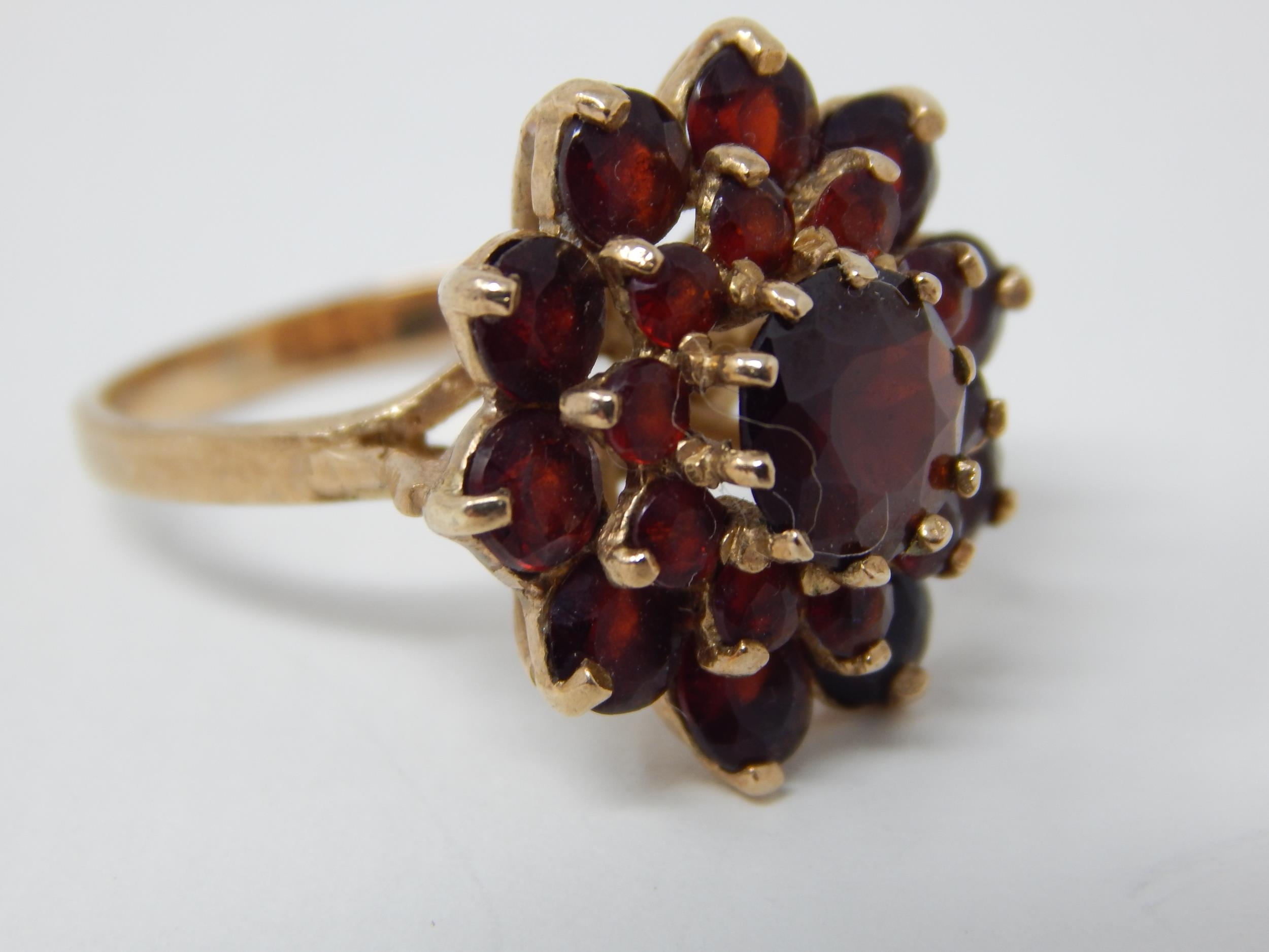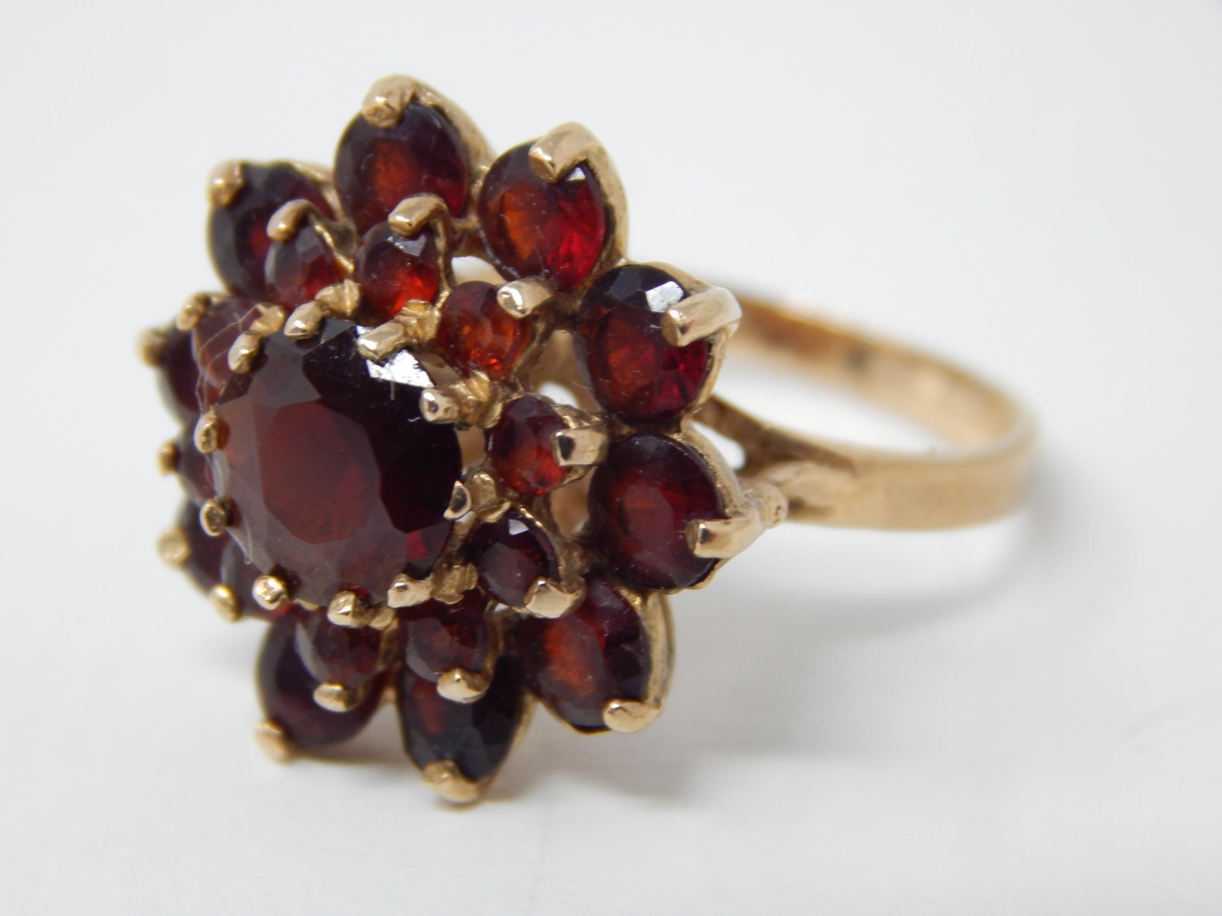Edwardian 9ct Gold Ring Inset with Bands of Garnets: Ring Size L