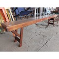 A wooden folding garden bench, measuring 181cm long, 25cm wide and 44cm high.