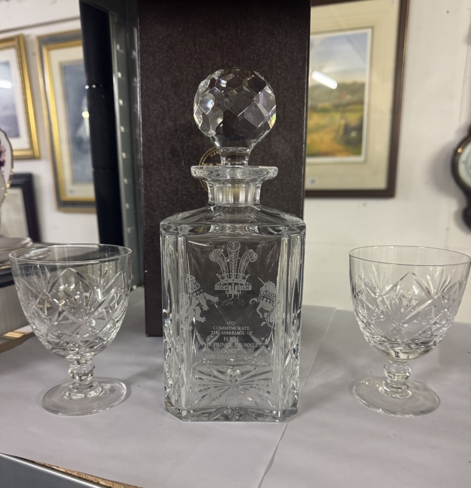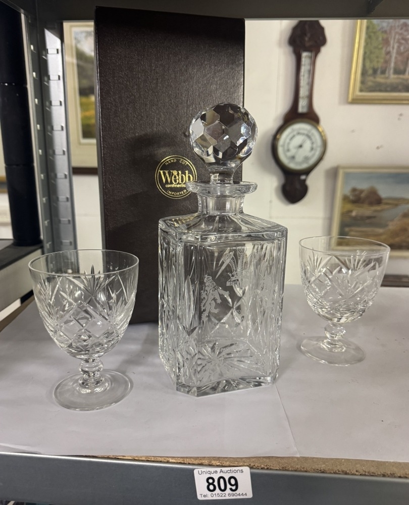 A boxed Webb crystal decanter & 2 glasses