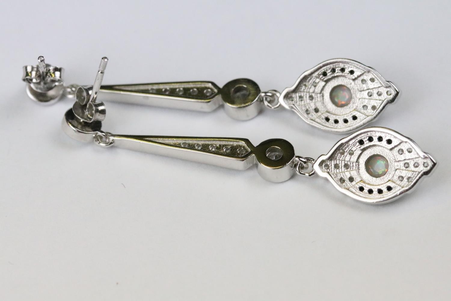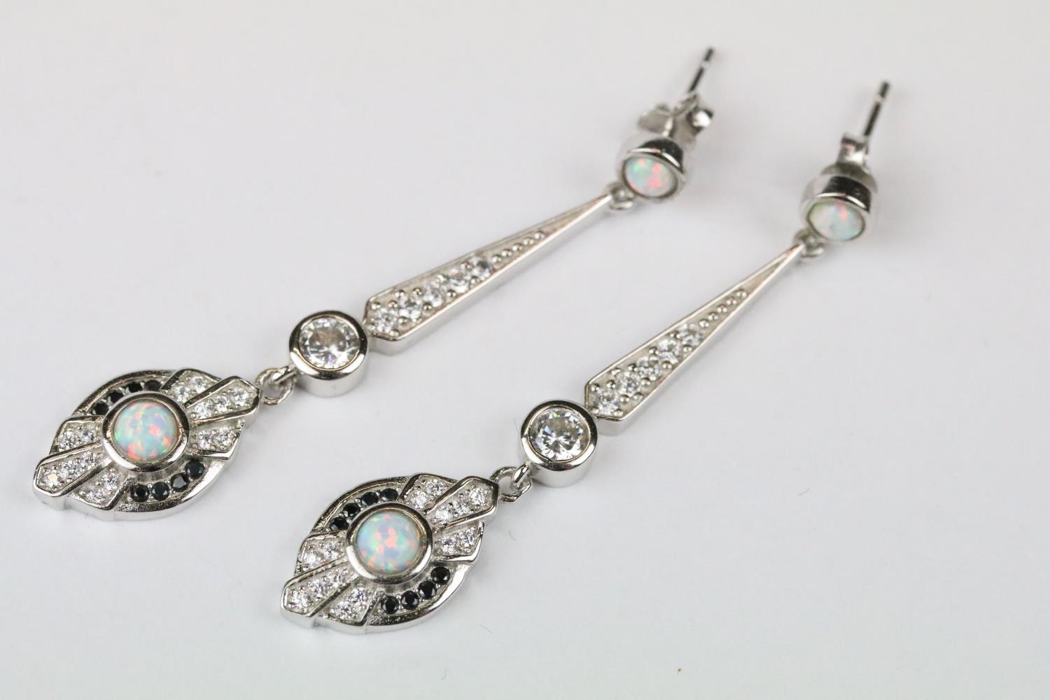 Pair of silver CZ and sapphire drop earrings
