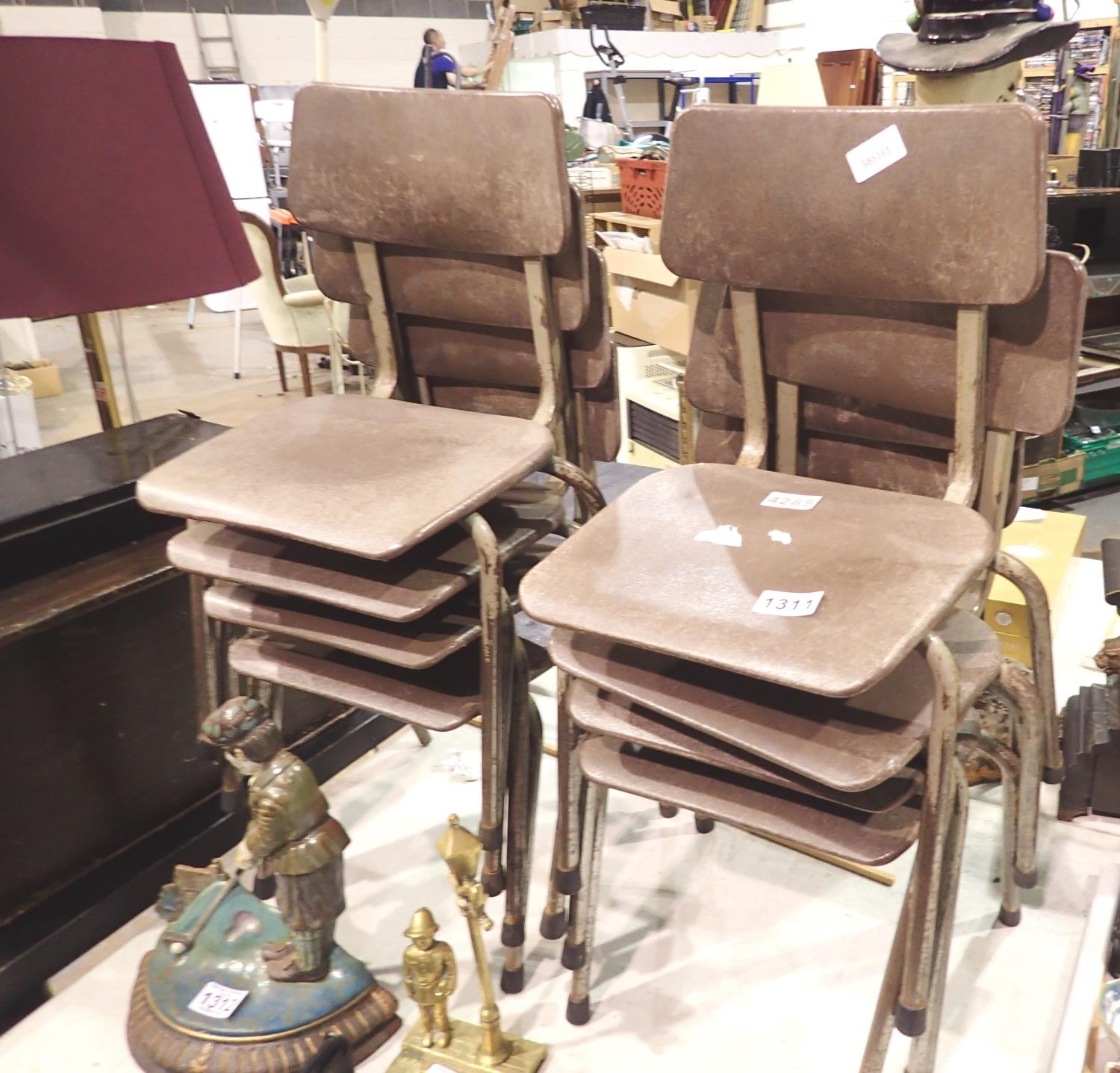 Eight metal framed small stacking school chairs. Not available for in-house P&P