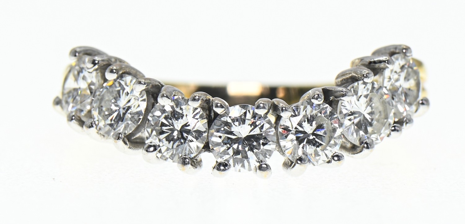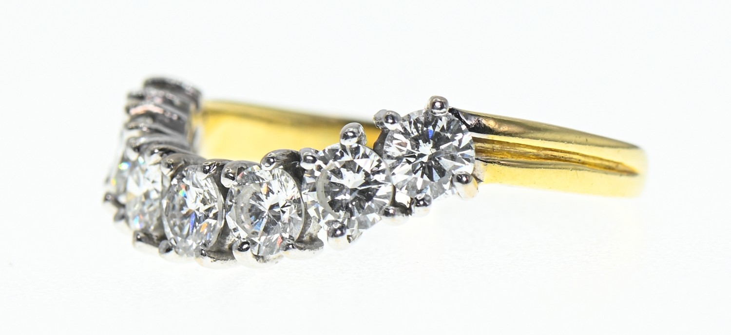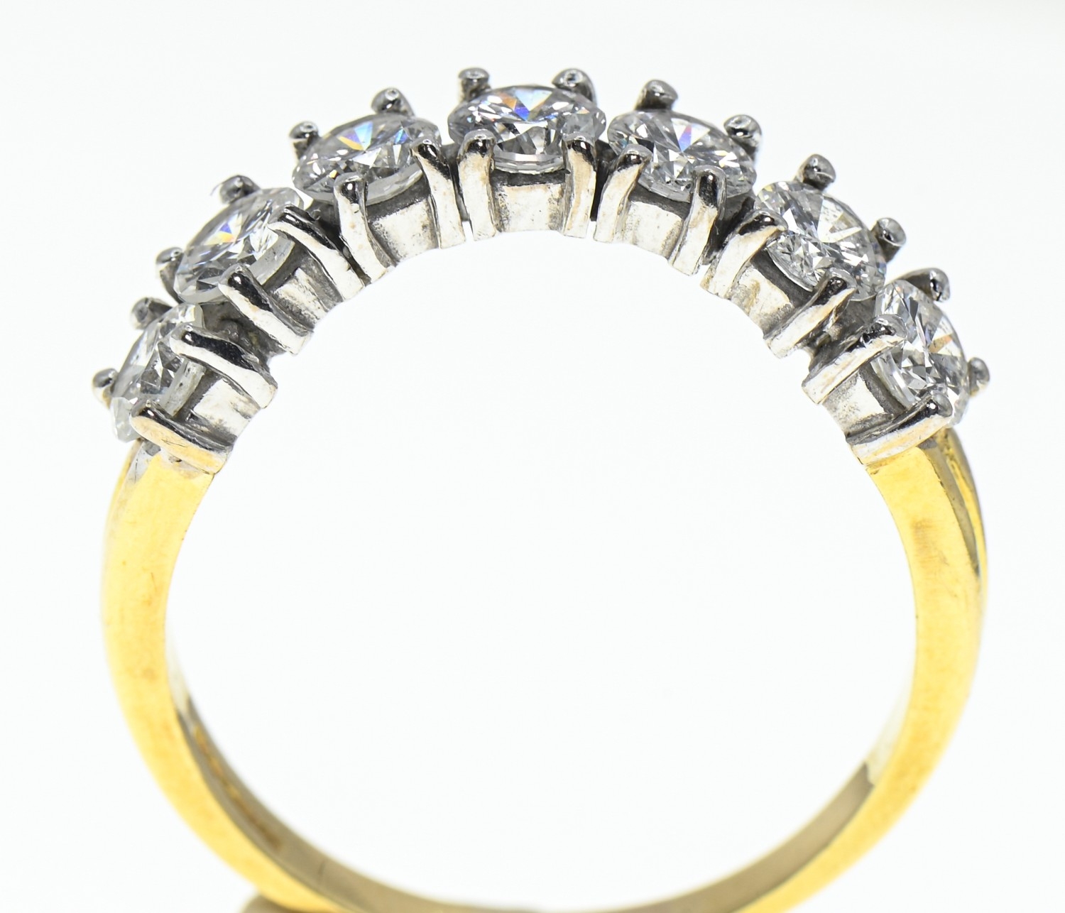18ct gold and seven diamond ring, hallmarked, the diamonds together estimated to weigh 1.68 carats, size Q, gross weight 4 grams