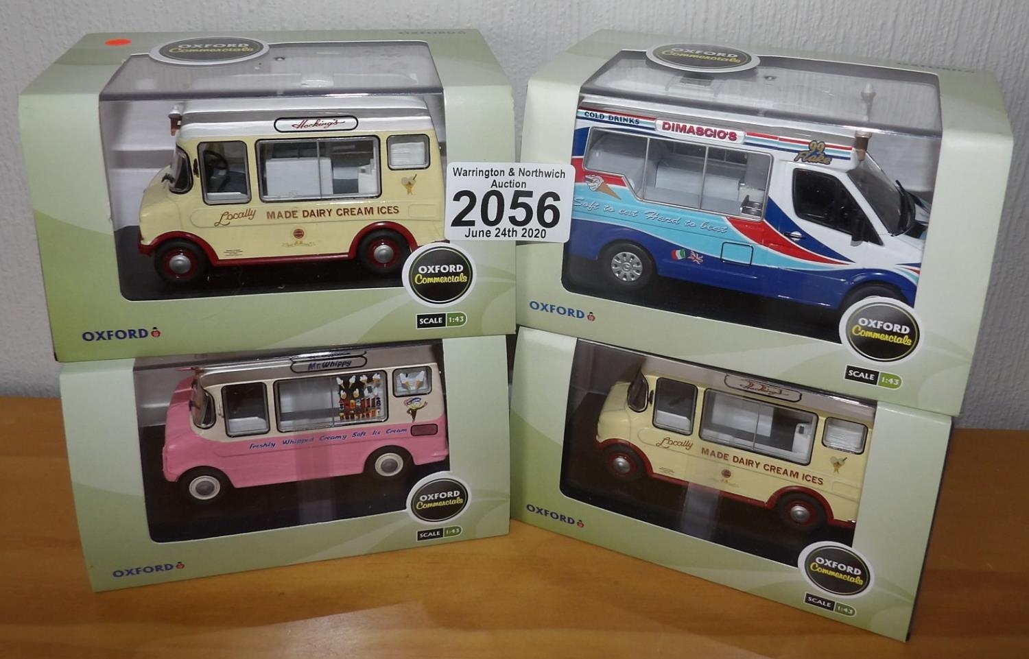 Oxford 1.43 Scale x 4 Mixed Ice Cream Vans. P&P Group 2 (£18+VAT for the first lot and £2+VAT for subsequent lots)