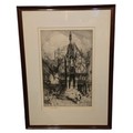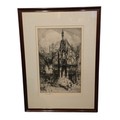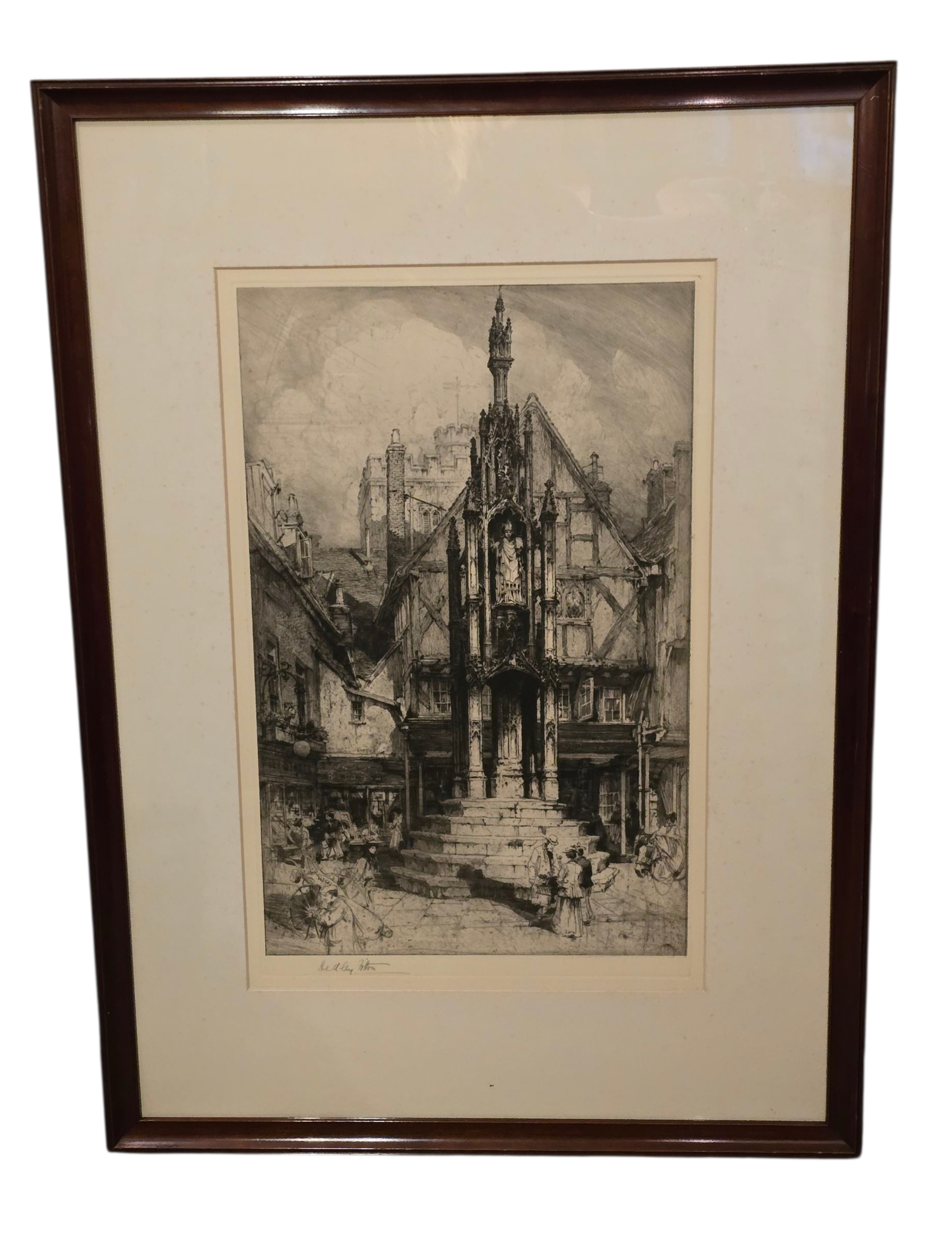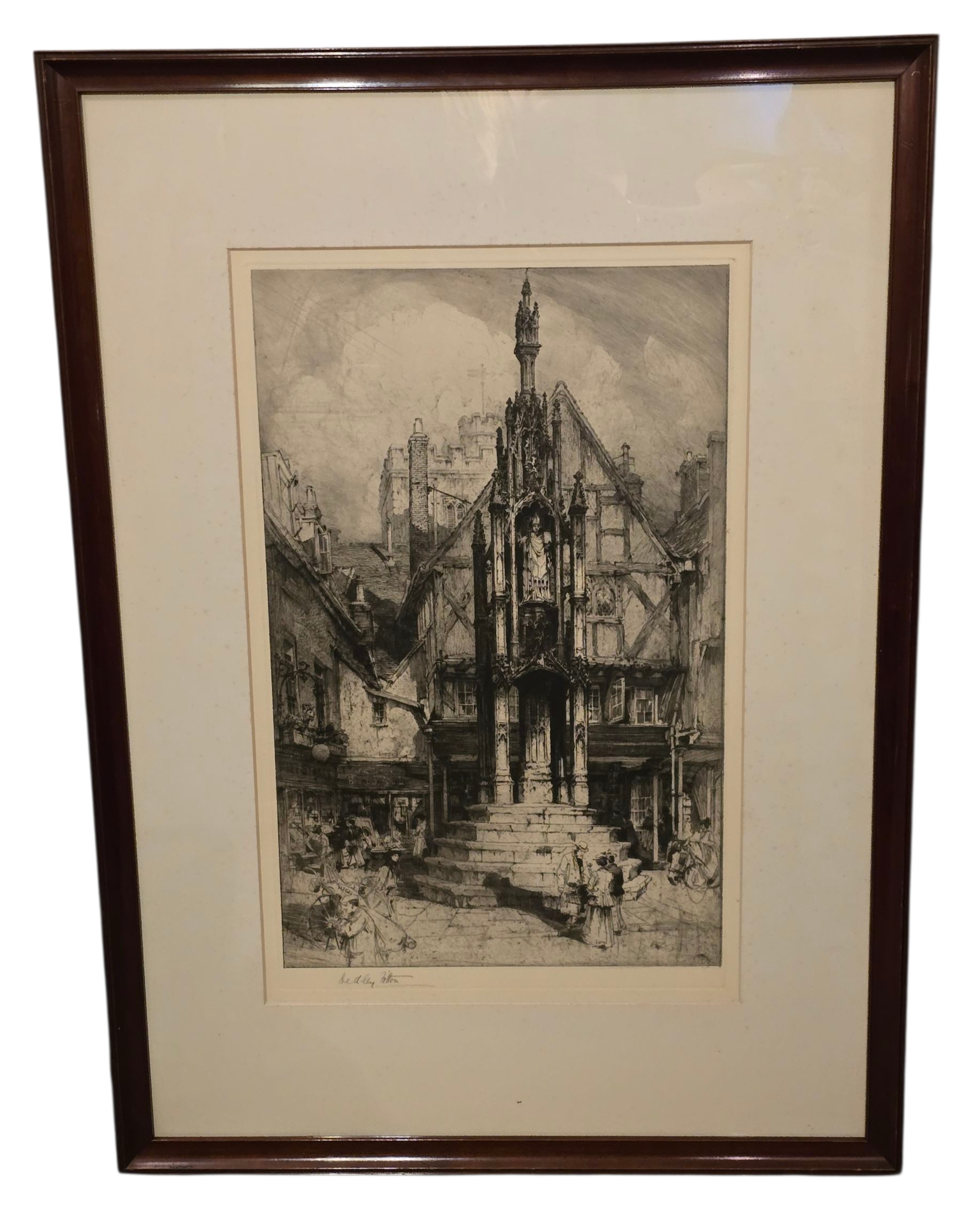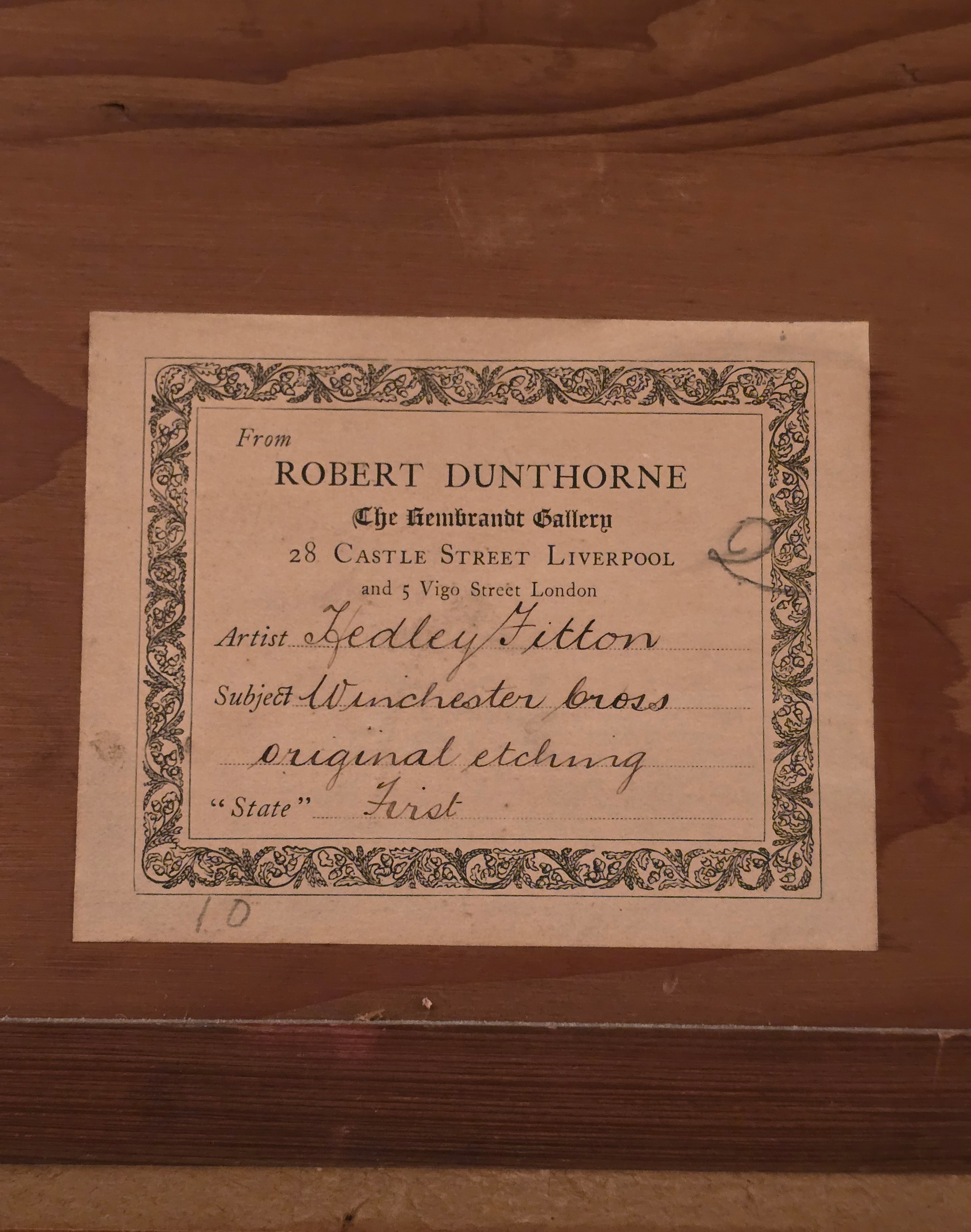 Hedley Fitton (1859–1929), Winchester Cross — Original Pencil-Signed Etching, First State, with Robert Dunthorne “Rembrandt Gallery” Label.