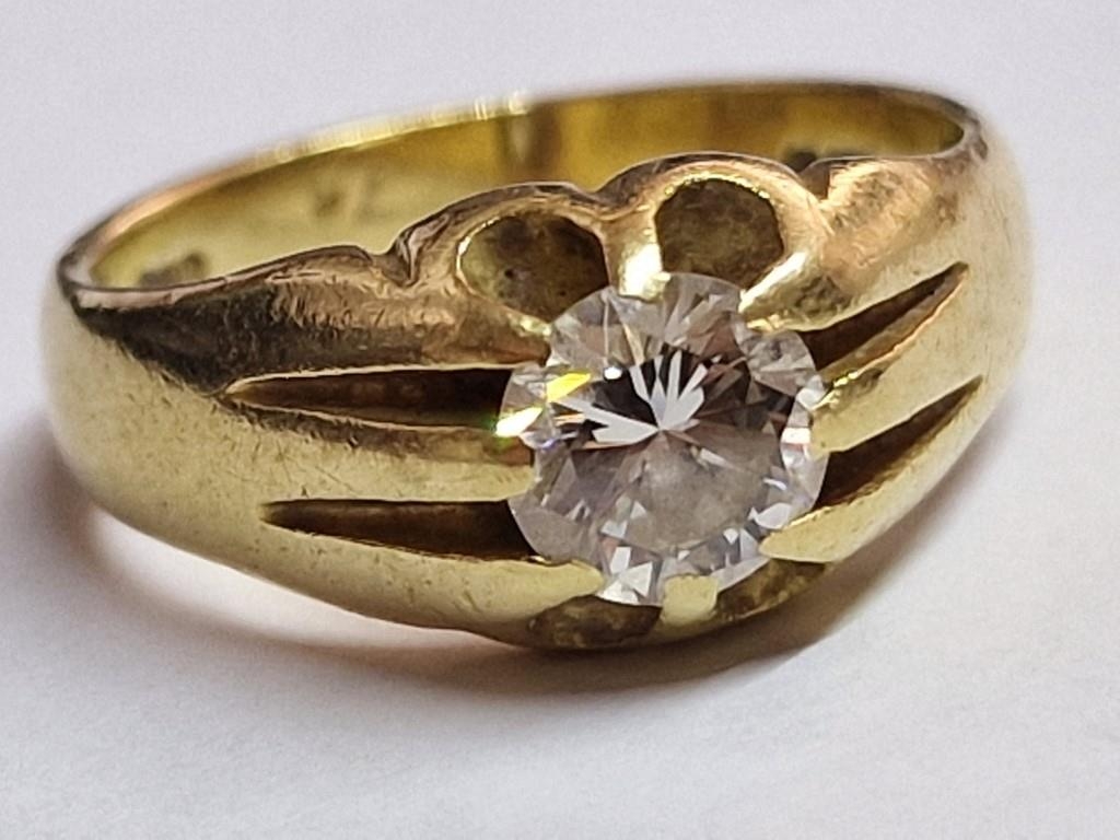 Heavy 18ct Gold Diamond Solitaire Ring, Set with Round Brilliant Cut Approx. 1.0ct Diamond (Approx. Size: R/S, 9.3g, Diamond Ø: 6.5mm)
