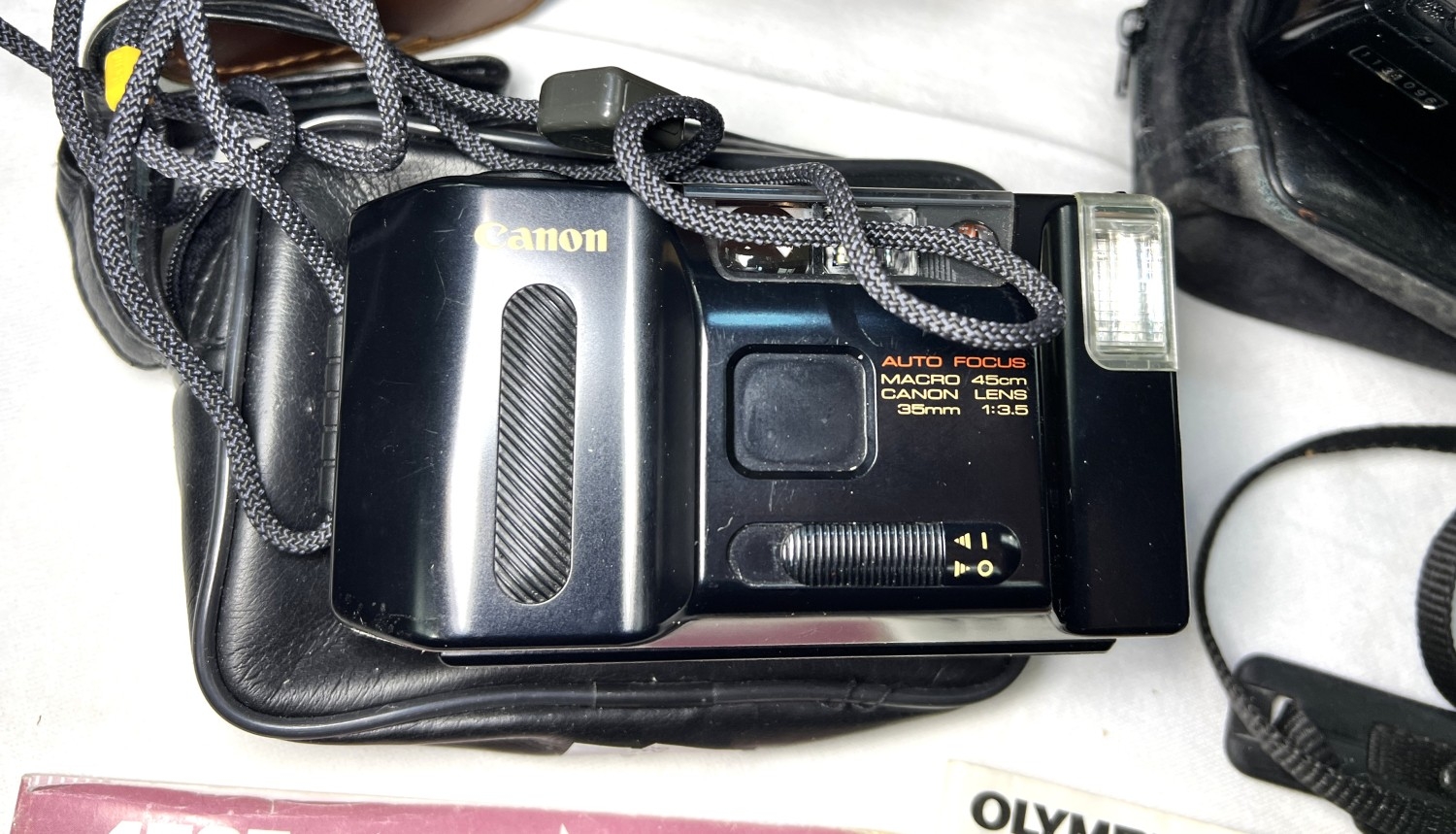 A selection of cameras including "Franca", "Olympus", "Jessops" etc. and other photographic accessories.