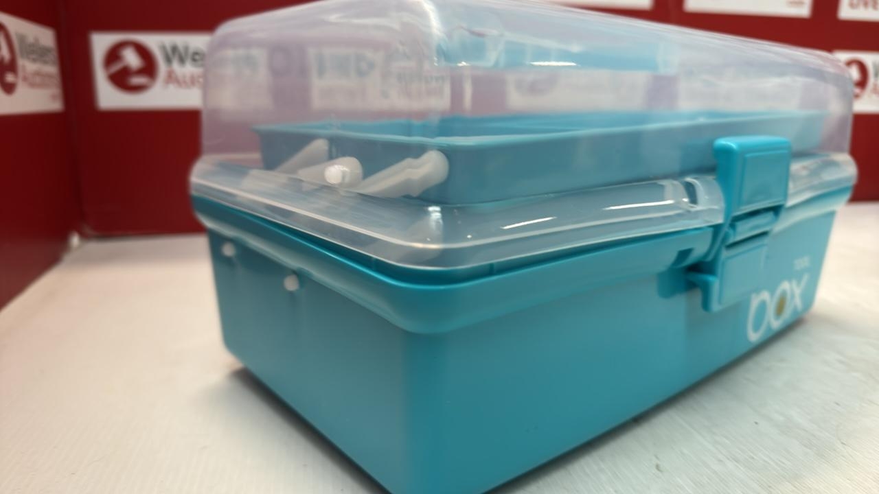 ASELECTED 3 LAYER CRAFT STORAGE BOX 3 LAYERS PLASTIC CANTILEVER CRAFT BOX MEDICINE ORGANIZER TOOLS COSMETIC PENS SEWING BOX WITH 2 TRAYS FOR MEDICINE, TOOLS, ART MATERIALS,TOY,COSMETIC (BLUE) [48]