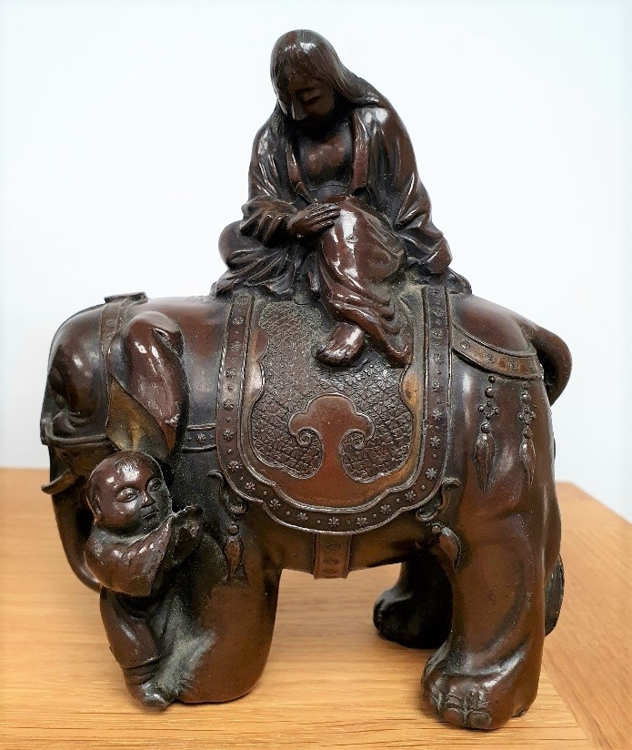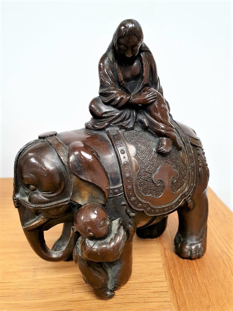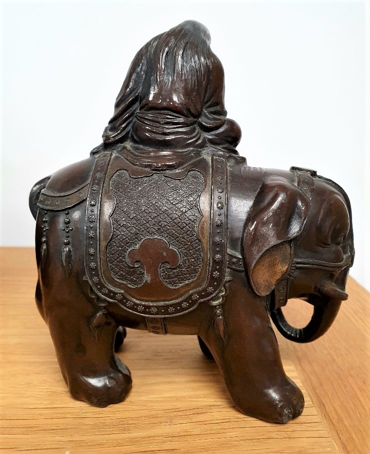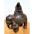 Japanese Meji Period Bronze of Elephant with Scholar and Chi...