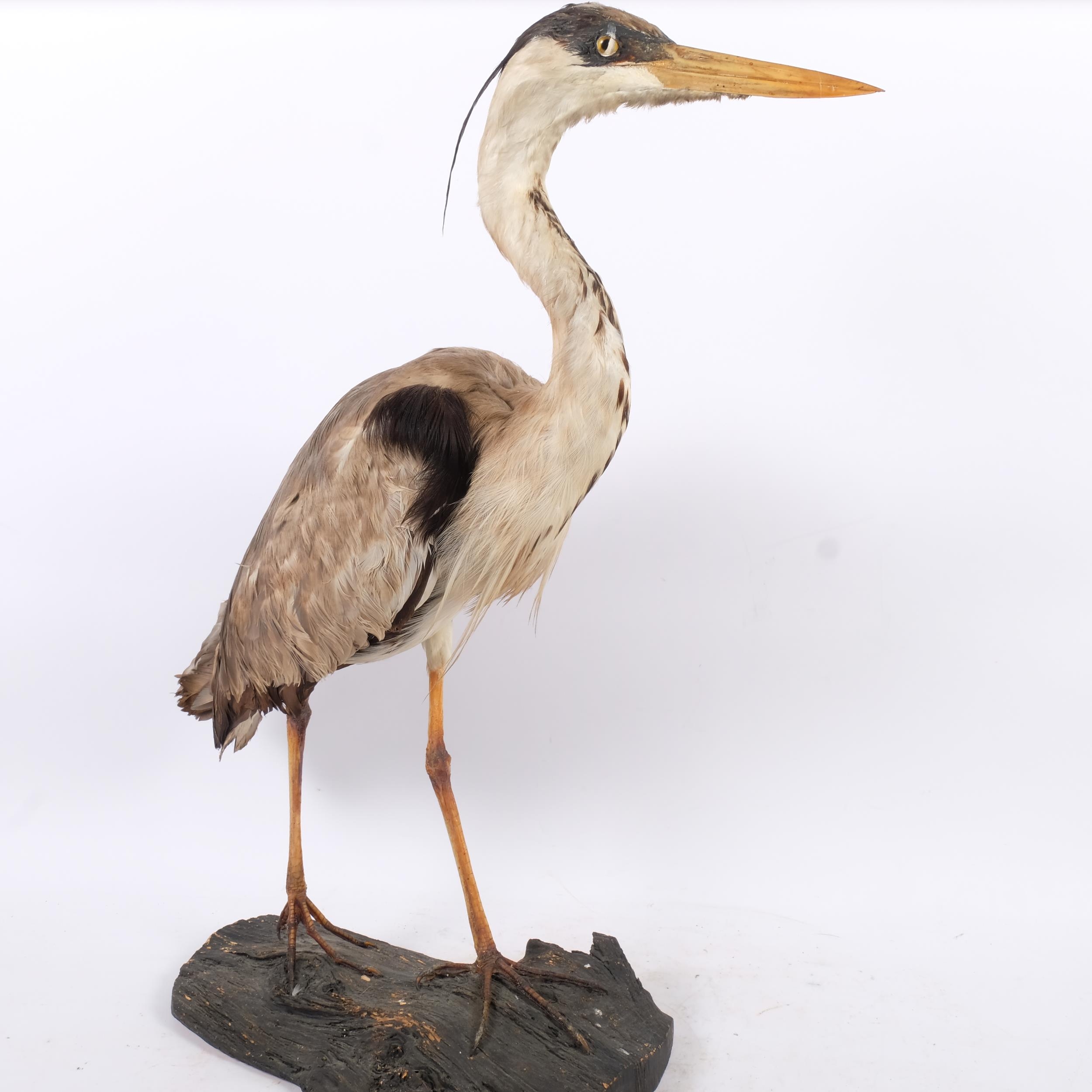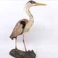 Taxidermy - A Taxidermy study of a Grey Heron ( Ardea Cinerea) on naturalistic stand, H 74cm