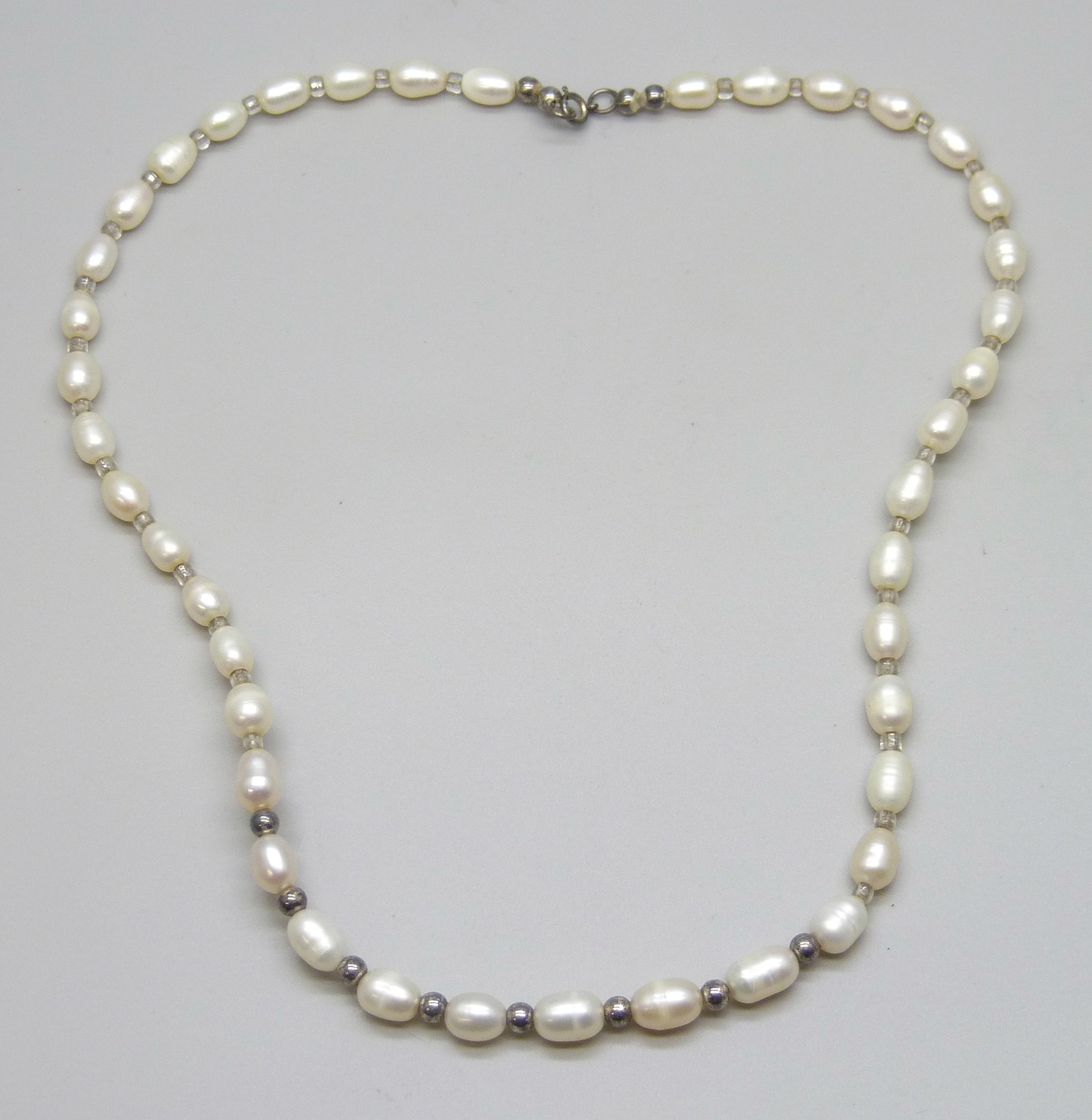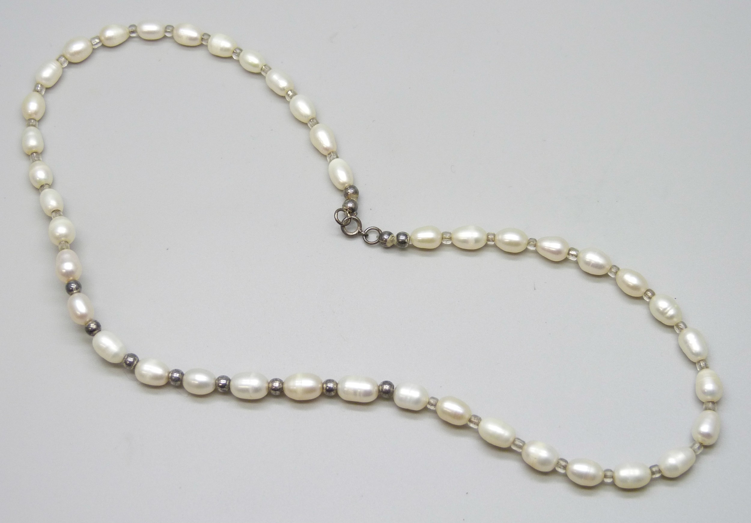 A pearl necklace with a silver clasp, 22g, 47.5cm