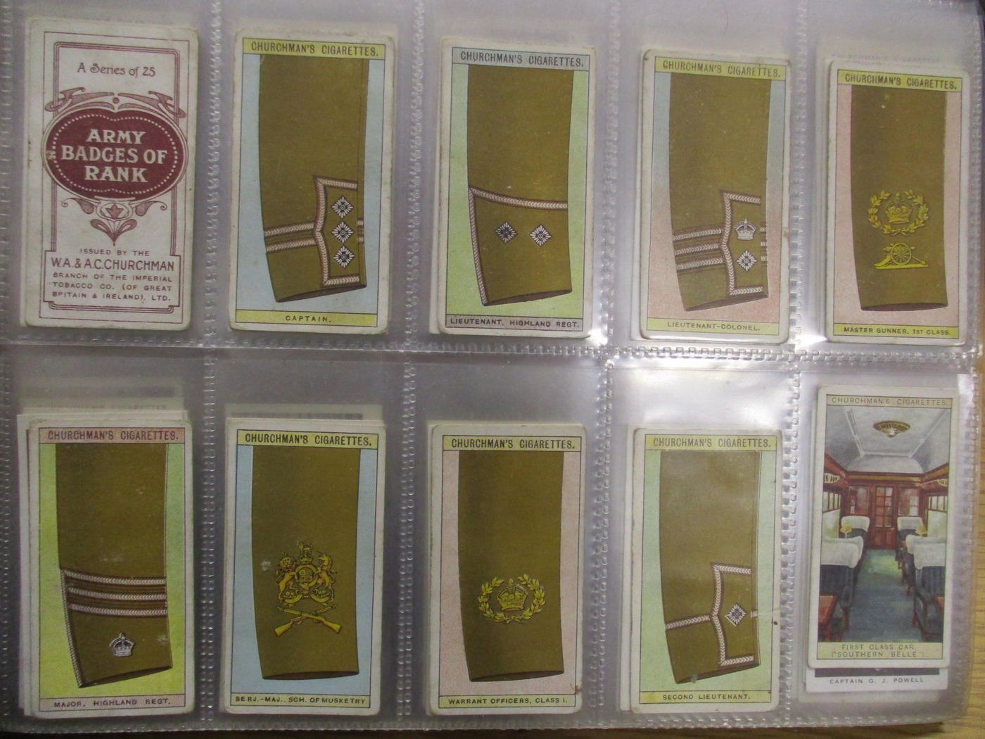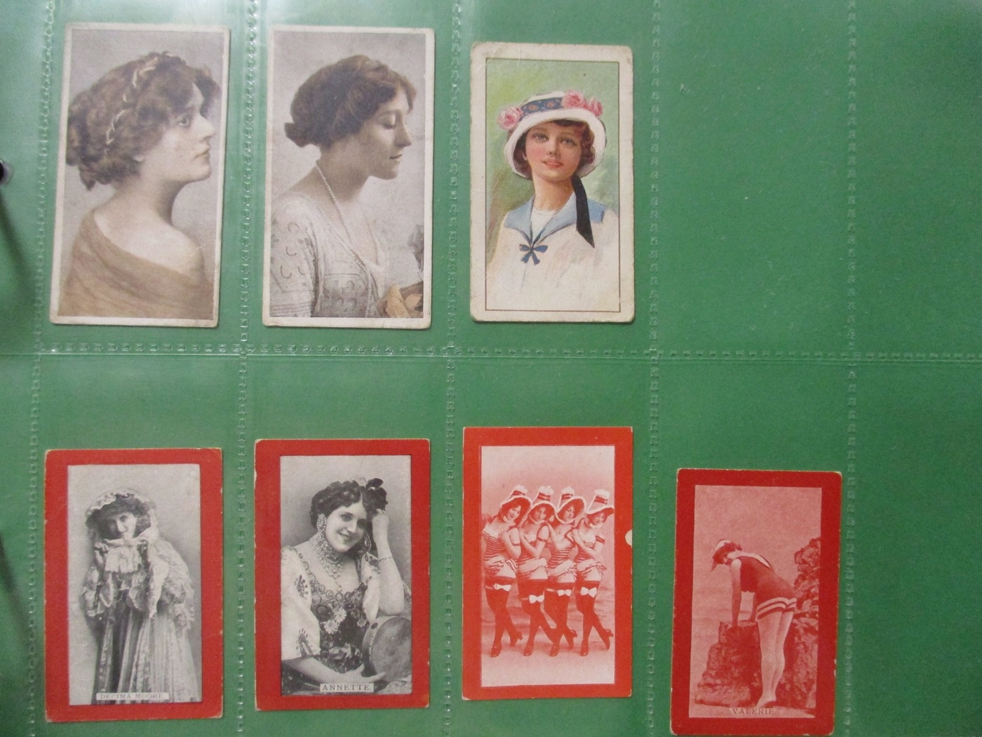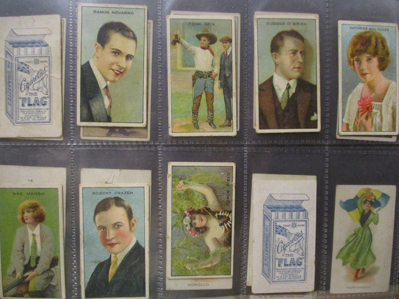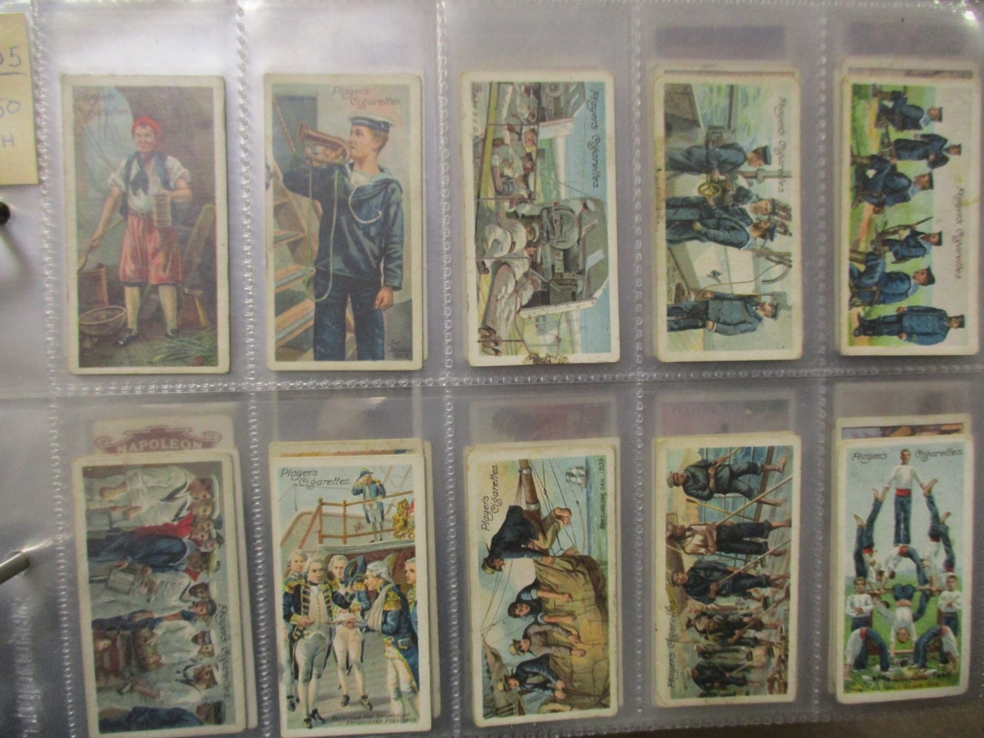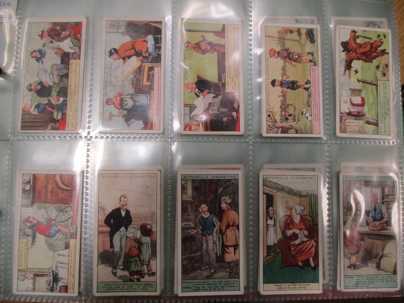 Collection in 13 albums with part sets including ranges from Mitchell Humorous Drawings (45), Ogdens Birds Eggs, Players Life on Board a Man of War (12), United Tobacco Company Cinema Stars (9), Wills Flag Girls of All Nations (mixed (5)), Girls of All Nations (mixed 4)), Warships (10), etc, plus ranges from Arcadia, Ardath, Carreras, Churchman, Gallaher, Faulkner, Phillips, etc, generally good. Qty 4,500 approx. (2B)