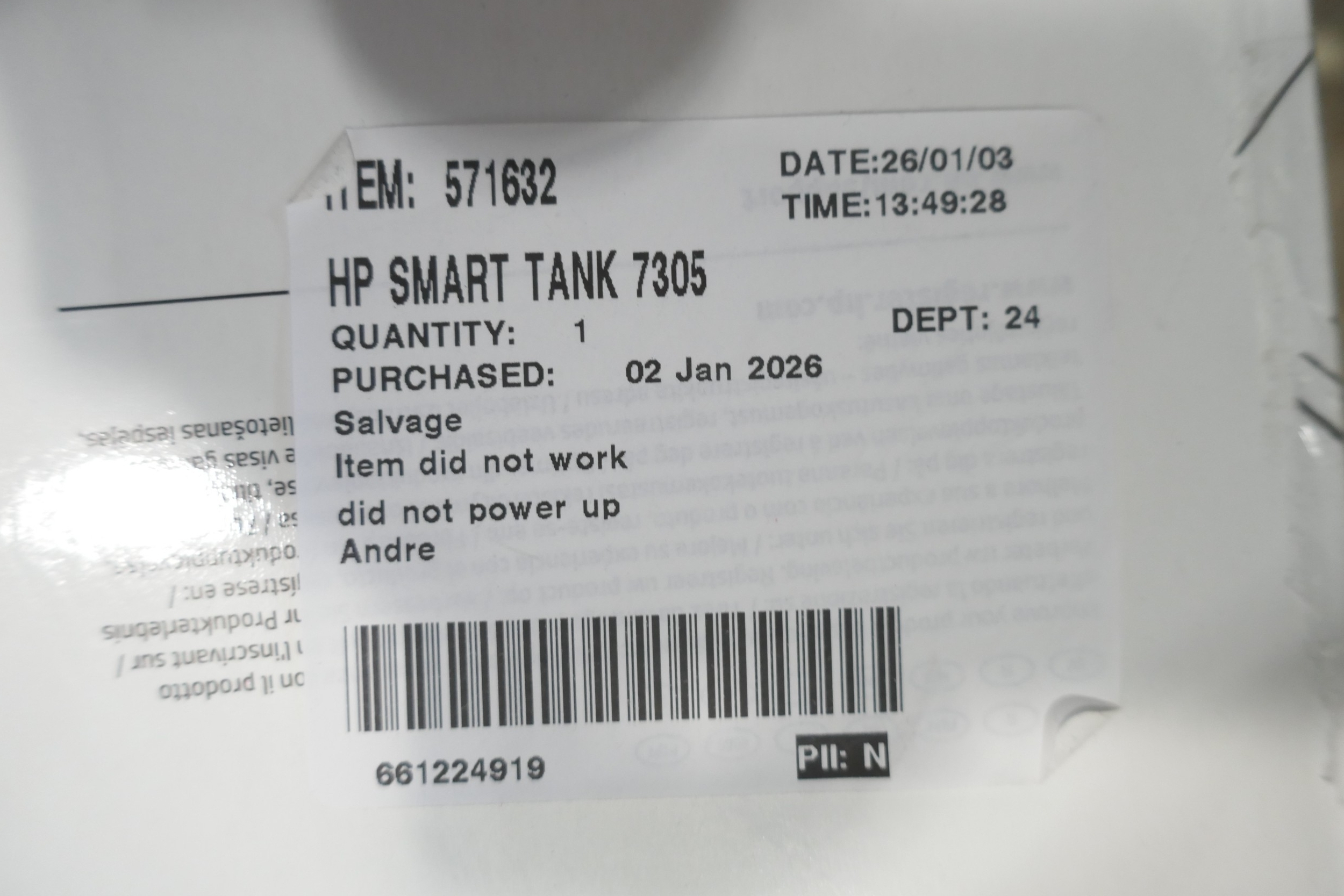 A HP Smart Tank all in one printer 7305, original RRP £239.99 + VAT (377-487) *This lot is subject to VAT
