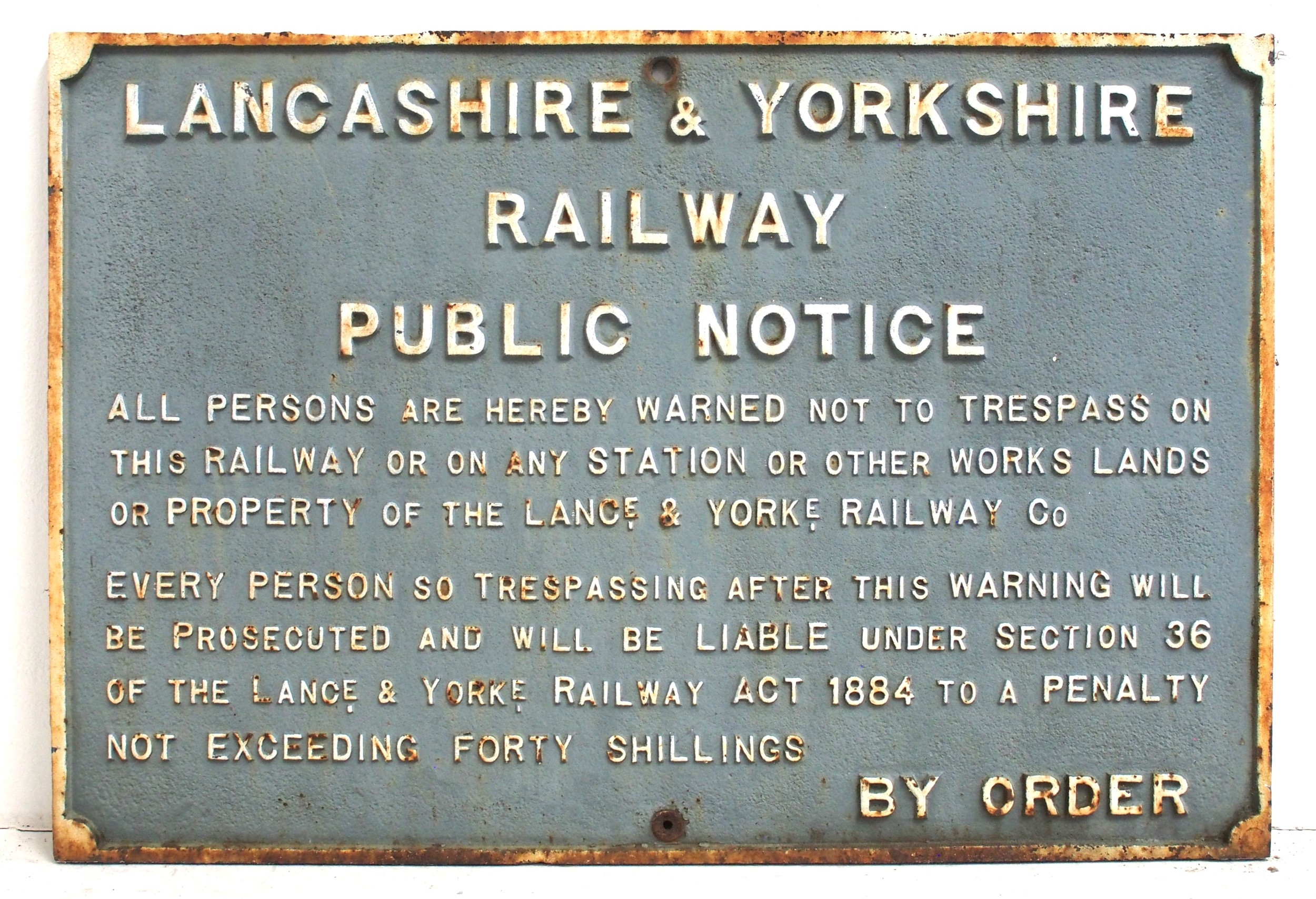 Lancs & Yorks Rly C/I trespass notice (TPLY301) 30¾"x 20", original back. (PDESK) (Dispatch by Mailboxes/Collect from Banbury Depot)