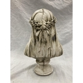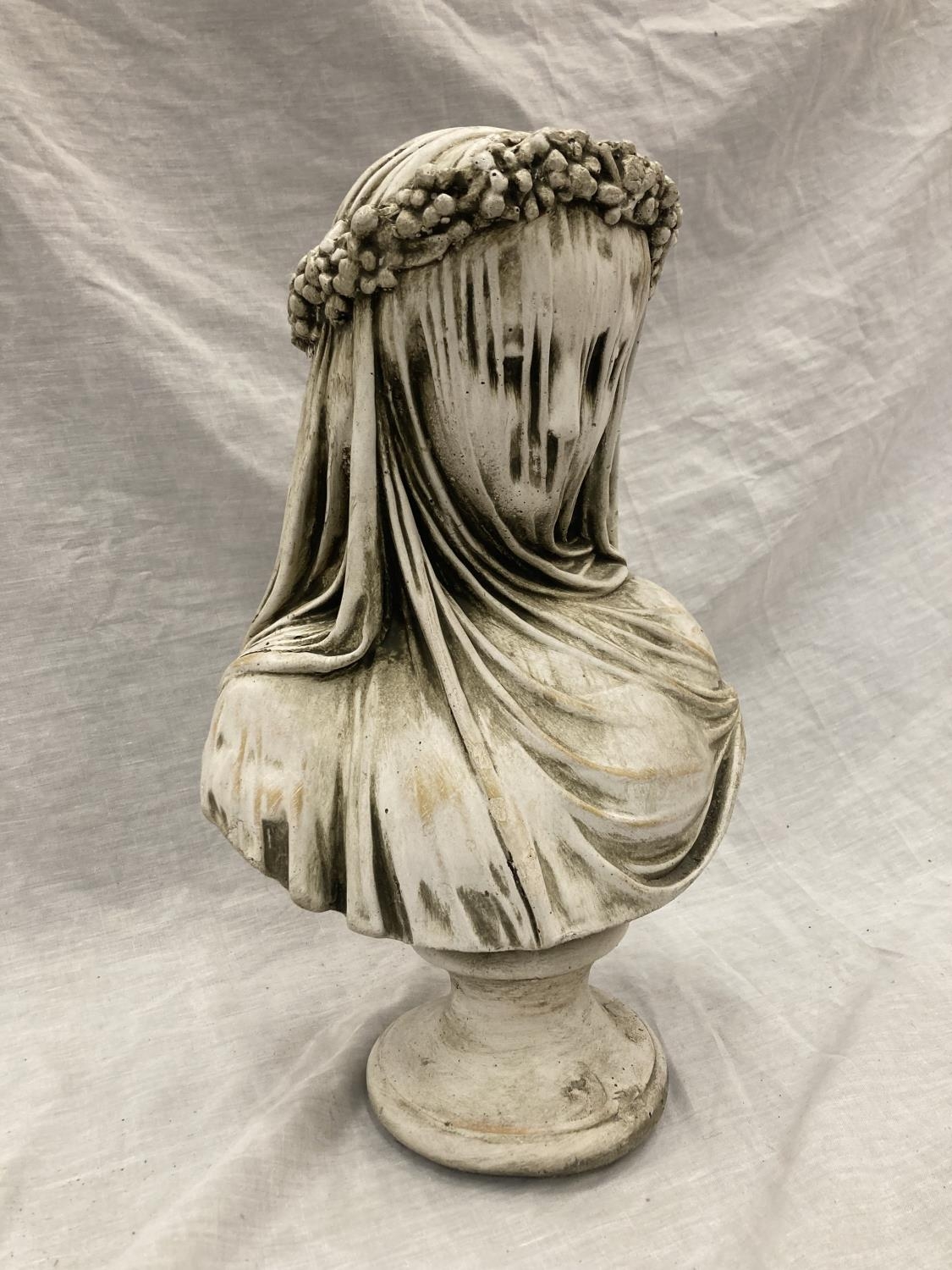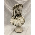 A CONCRETE SCULPTURAL BUST OF THE VEILED MAIDEN - HEIGHT 37CM